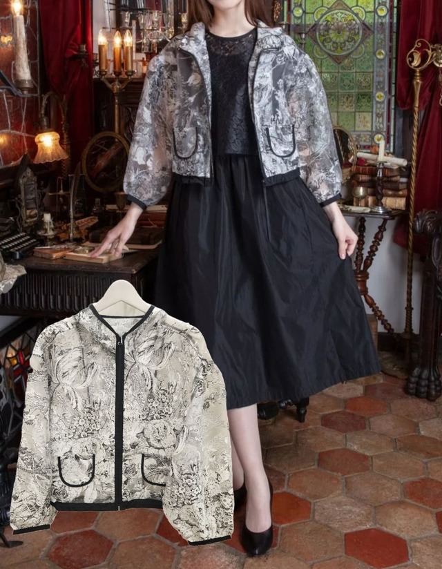 【Super Beauty / スーパービューティー★小さなフードが可愛いオーパル加工オーガンジーのジャケット】