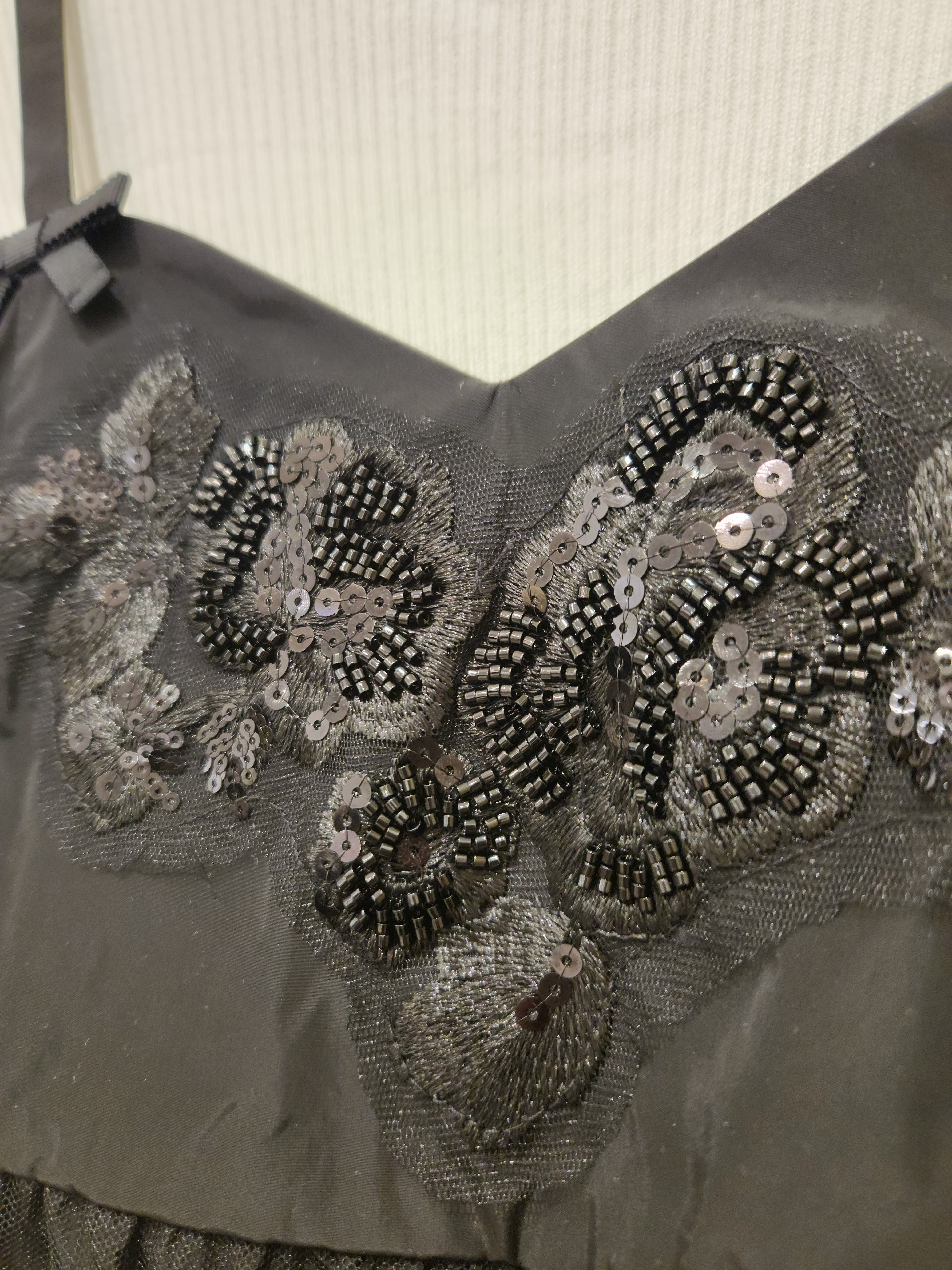 【Super Beauty★セール】胸元のビーズ使い刺繍が高級感あるタフタ&チュール素材キャミソール