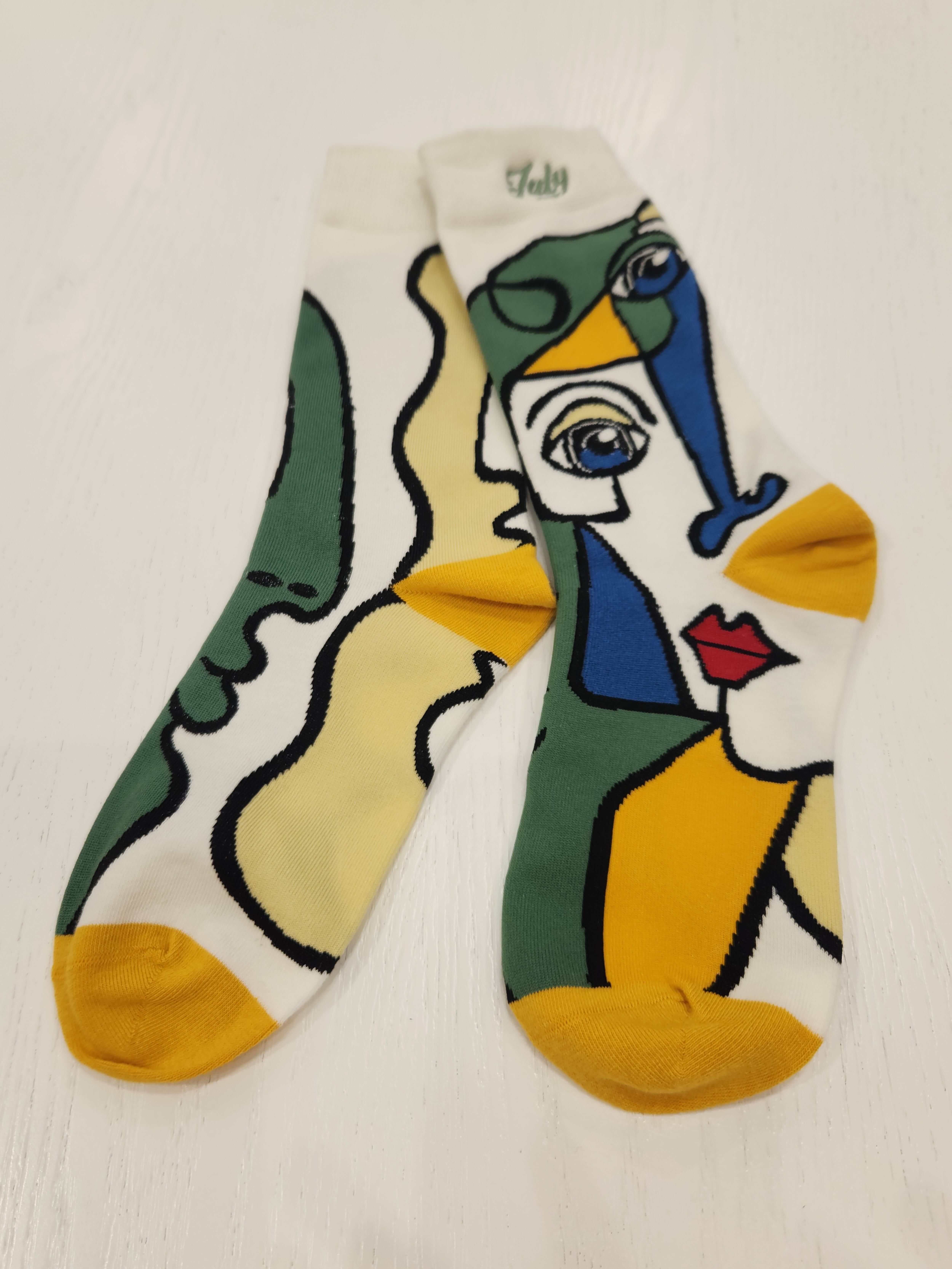 カラフルアート柄ソックス⭐Julyは、個性的でスタイリッシュなデザインが魅力のアイテムです。7色のカラーが楽しめるため、シンプルなコーディネートに遊び心をプラスします。また、柔らかく伸縮性のある素材を使用しているため、快適な履き心地とフィット感を実現しました。カジュアルからファッションアイテムまで、様々なスタイルに合わせやすく、デイリーユースにぴったりです。
