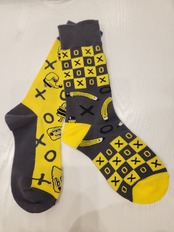 アシンメトリーソックス⭐イエロー×ブラウンおもしろXO柄