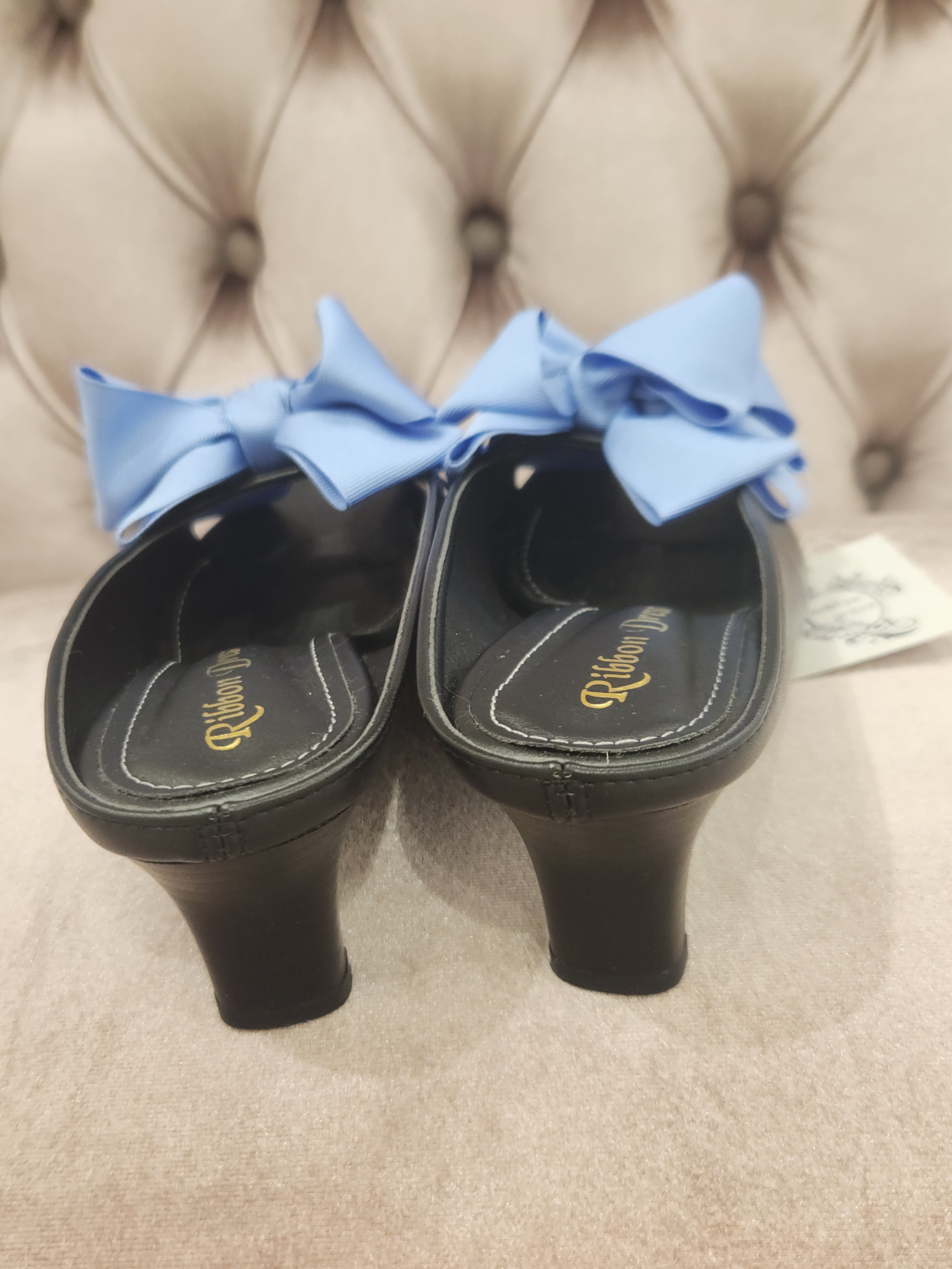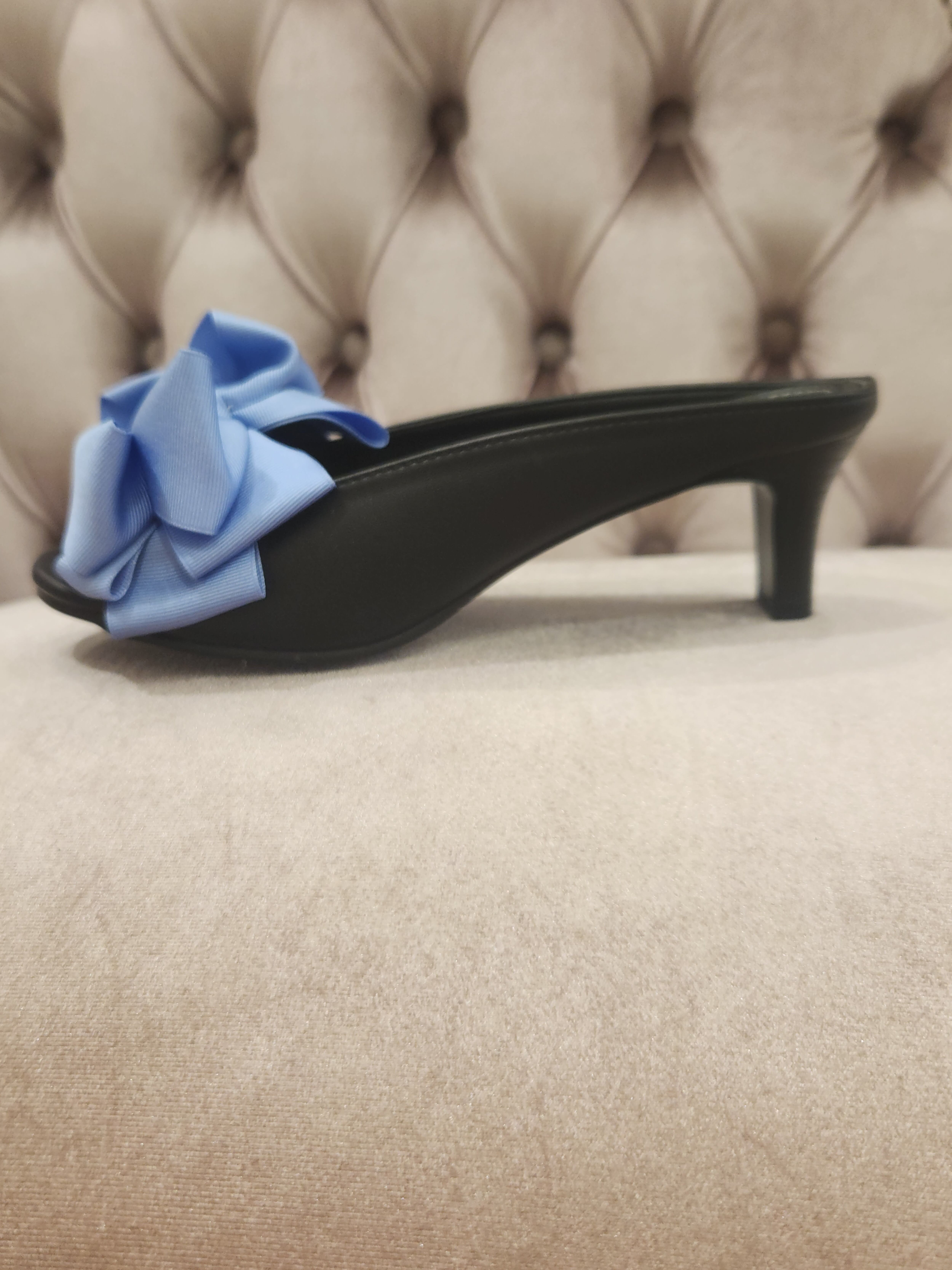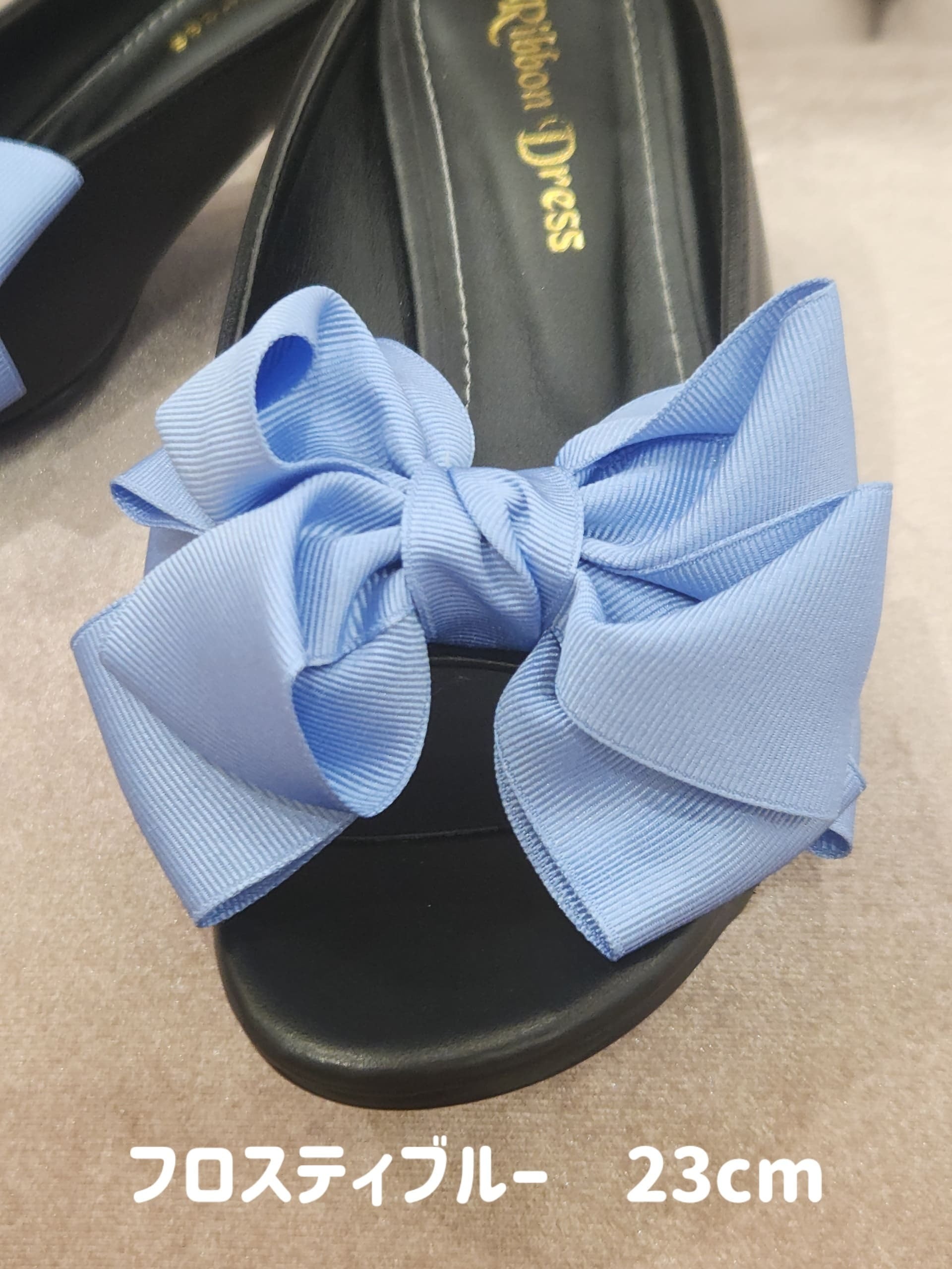 立体的なリボンがゴージャスで、まさしく「大人可愛い」ミュールです。