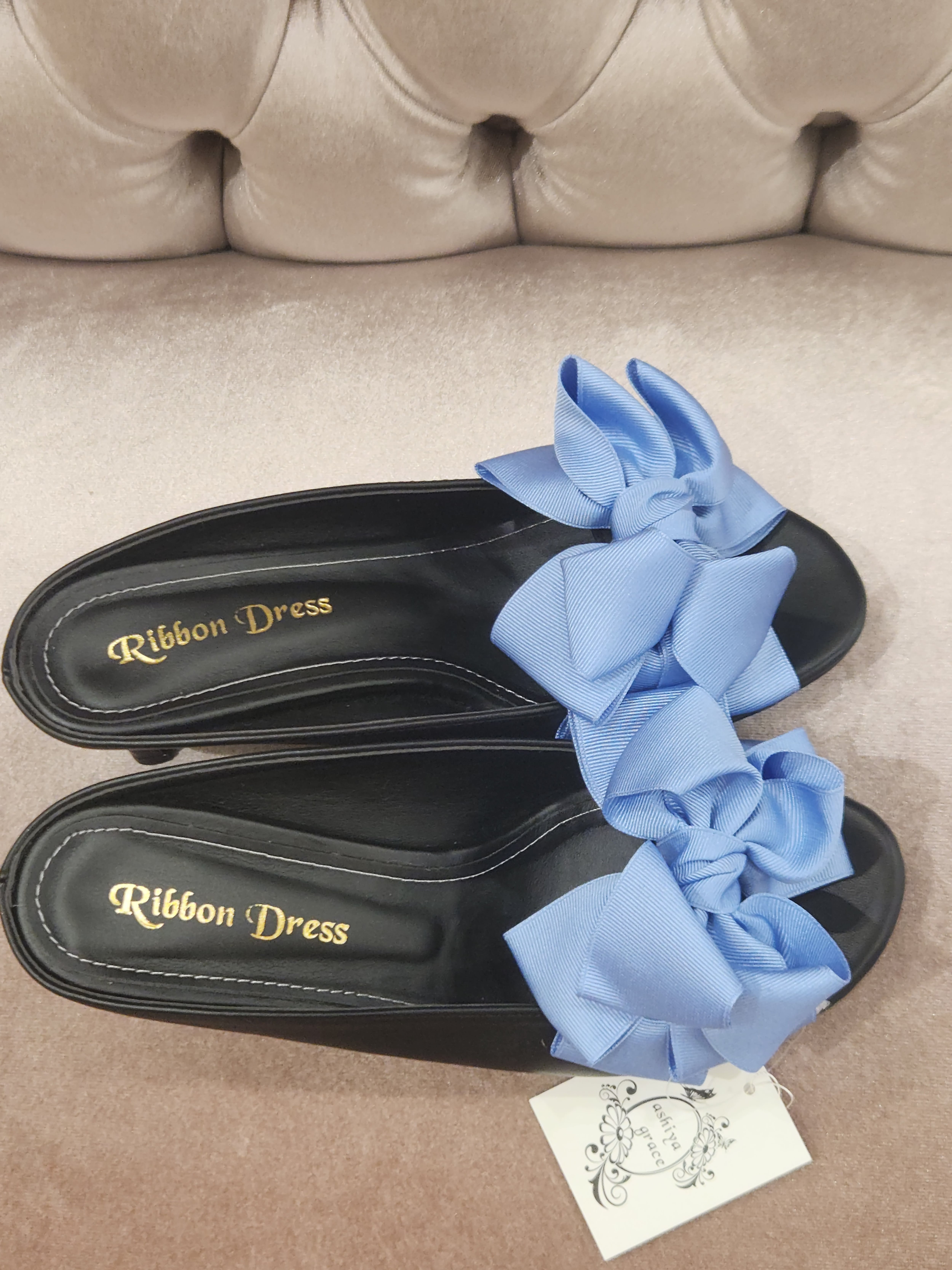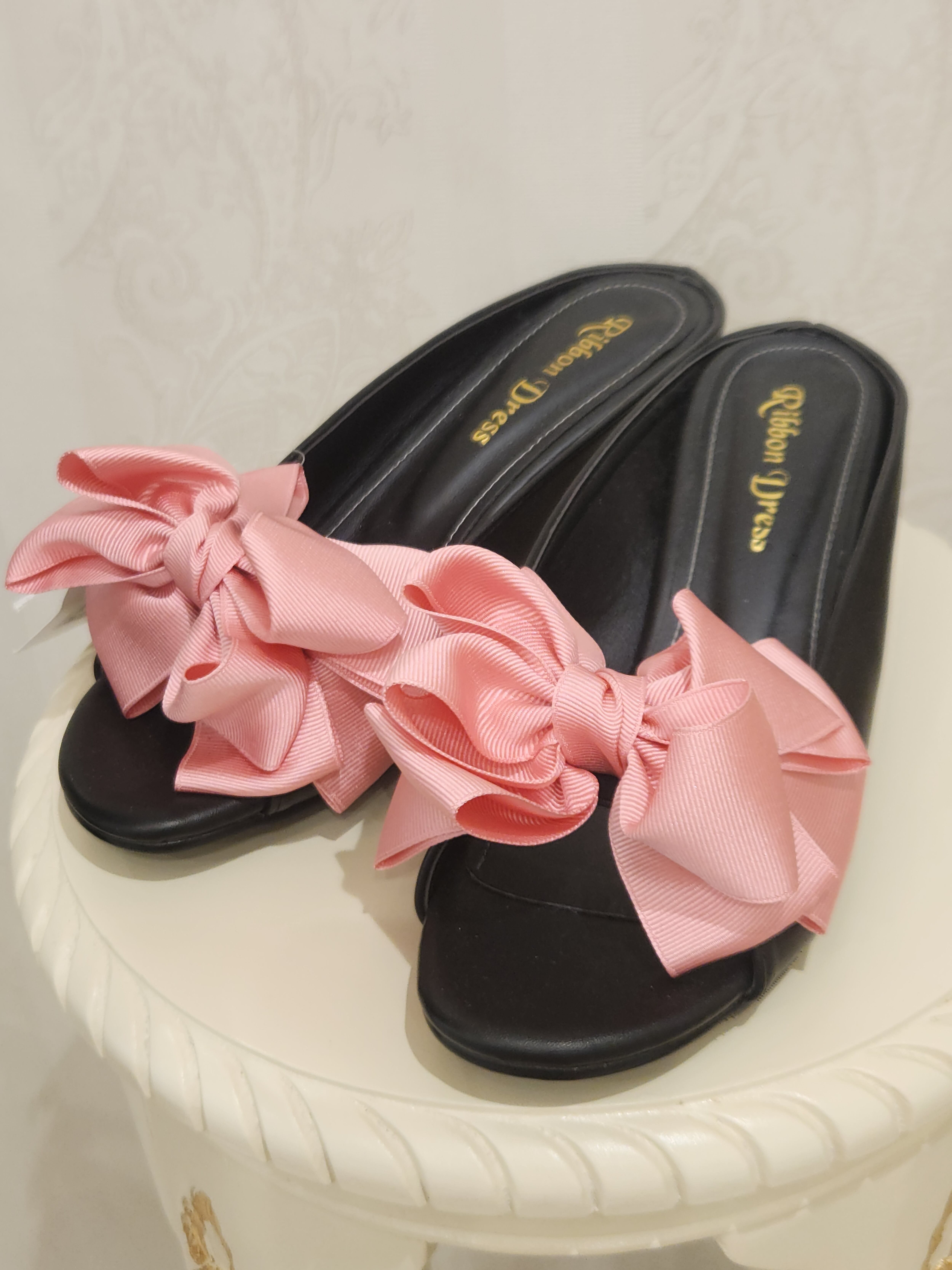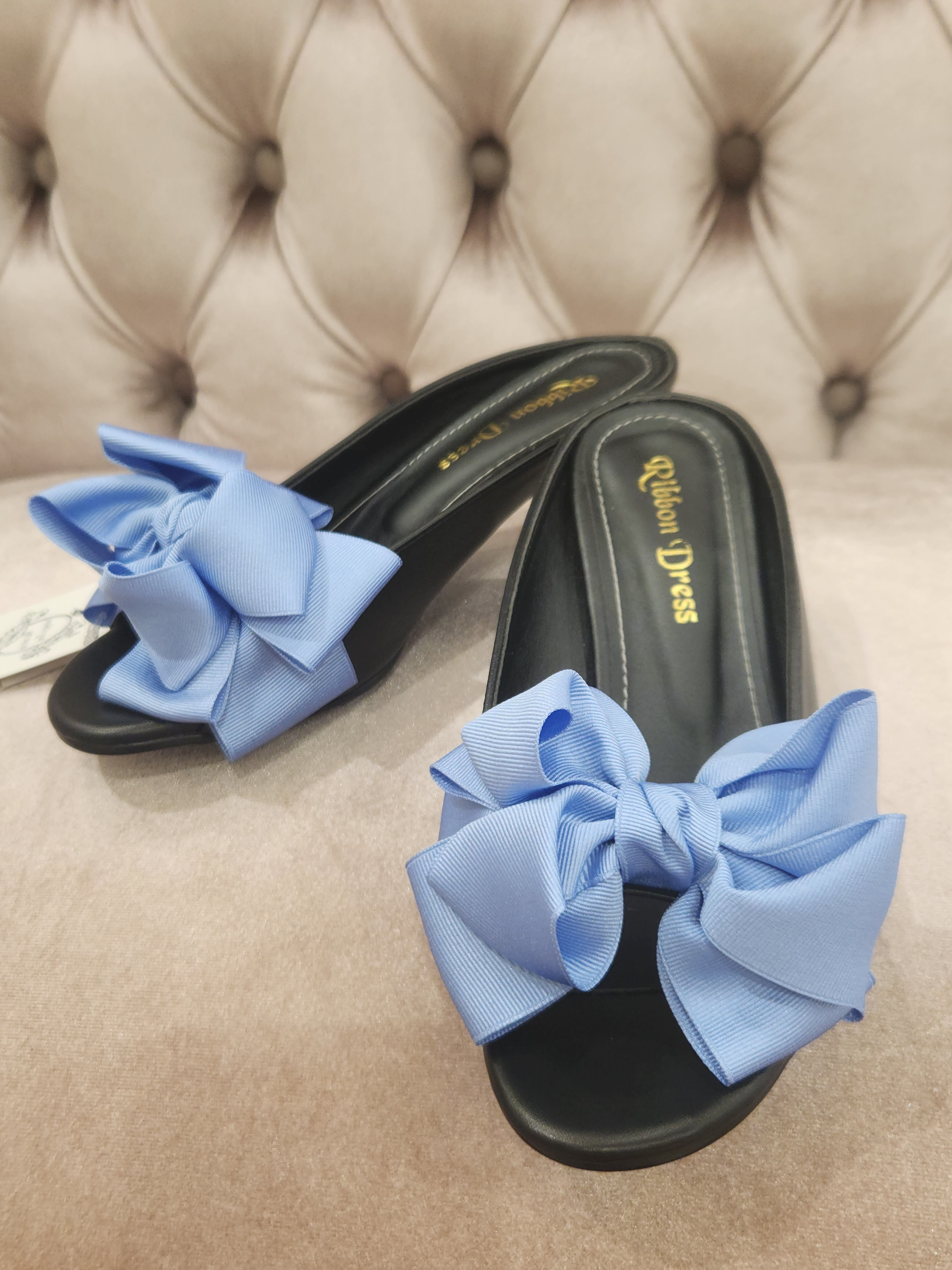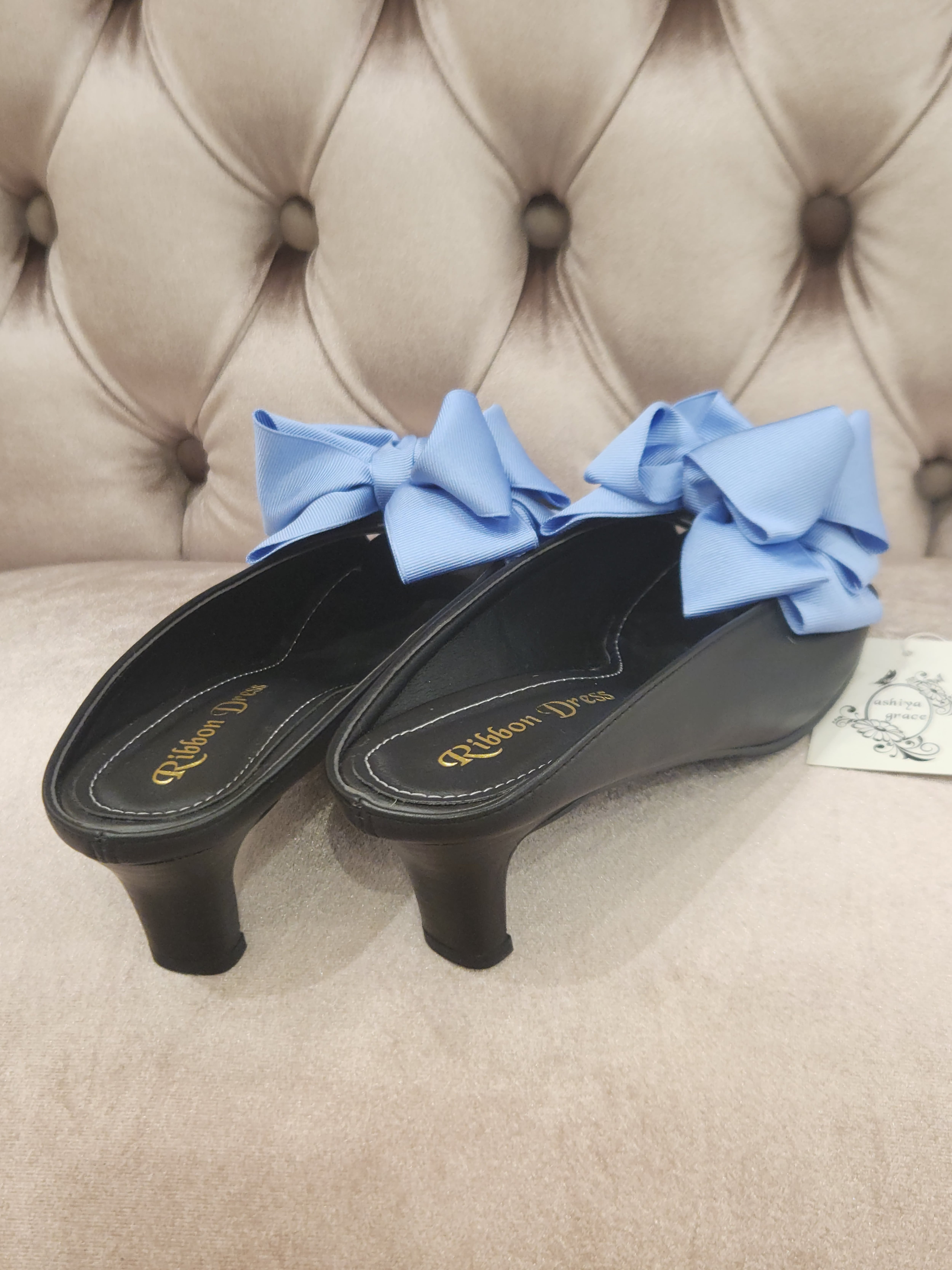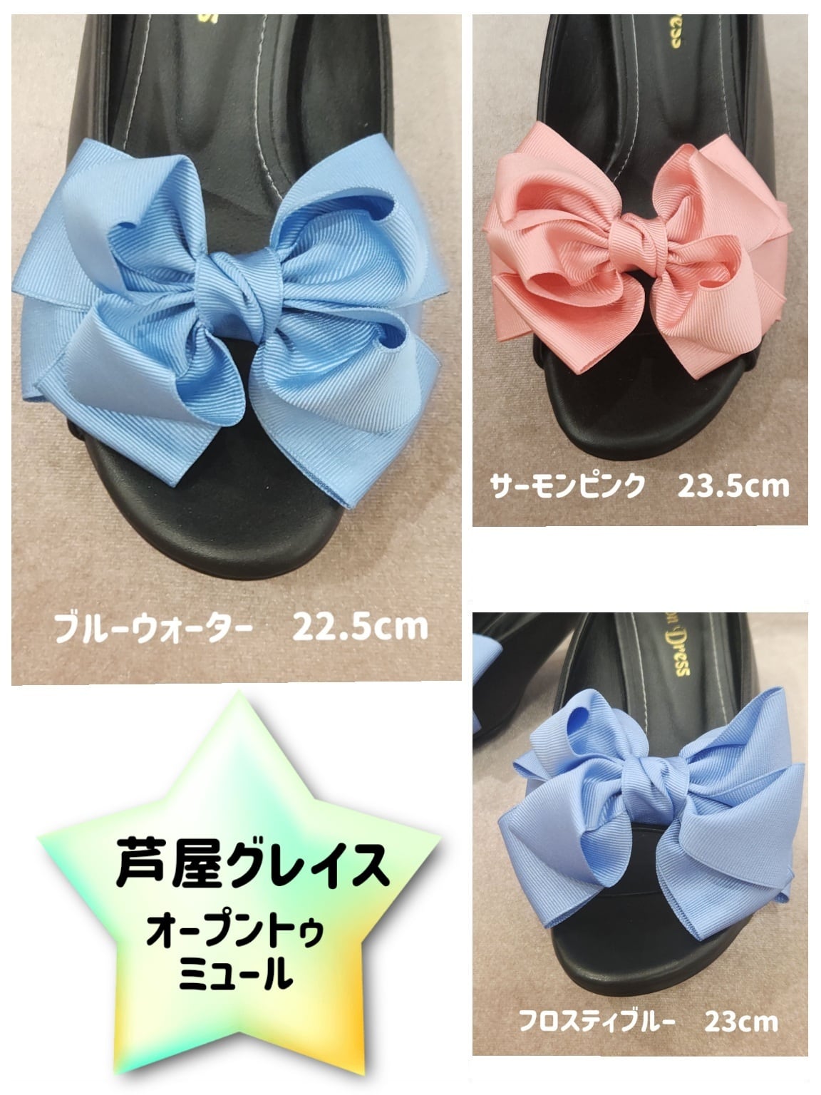 【芦屋グレイス★合皮オープントゥ、ボリュームリボンミュール】
