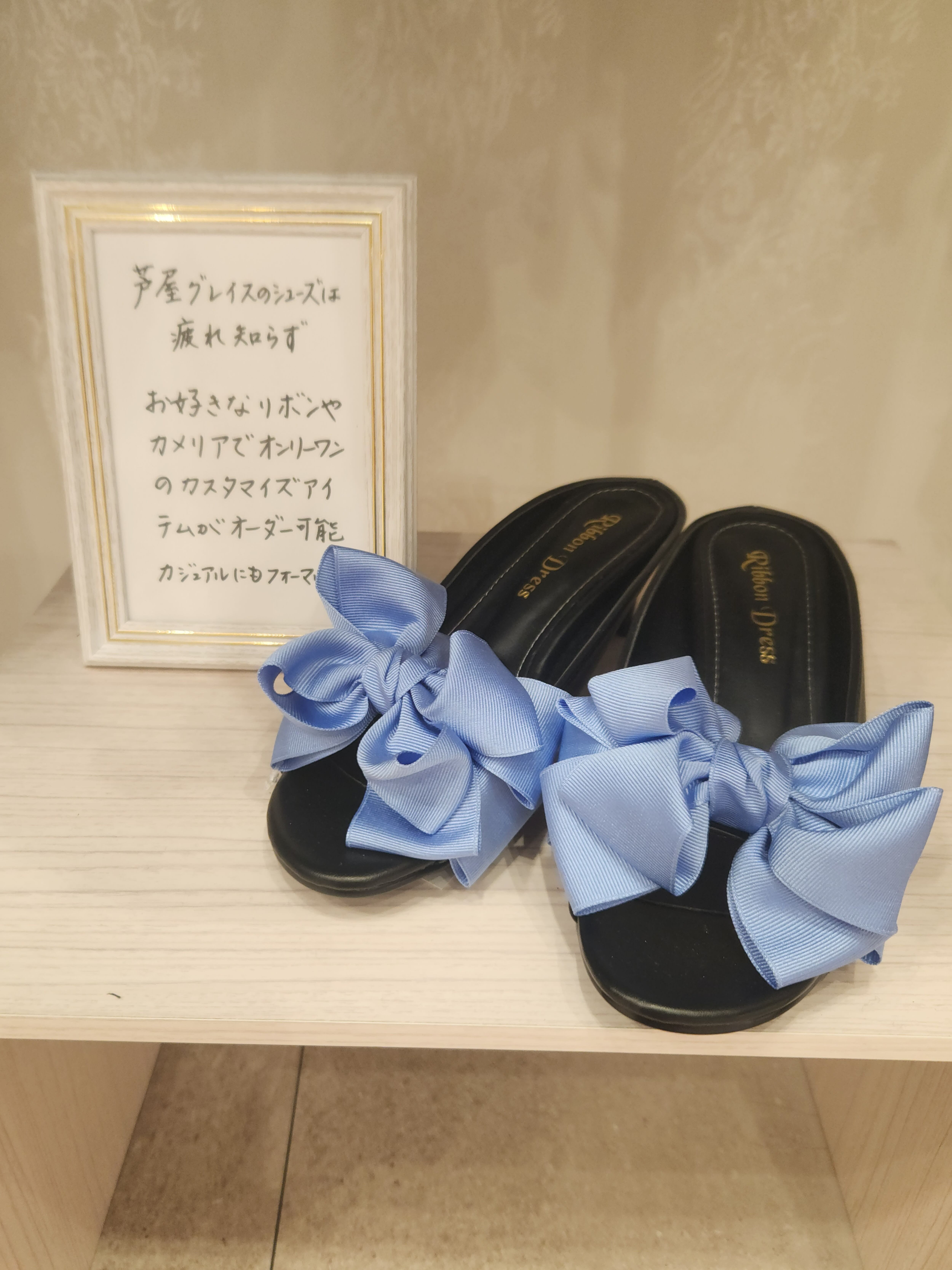 足裏が包み込まれるような作りになっており、芦屋グレイスならではの履き心地とデザインの豊かさをこの一足で実現したミュールです。