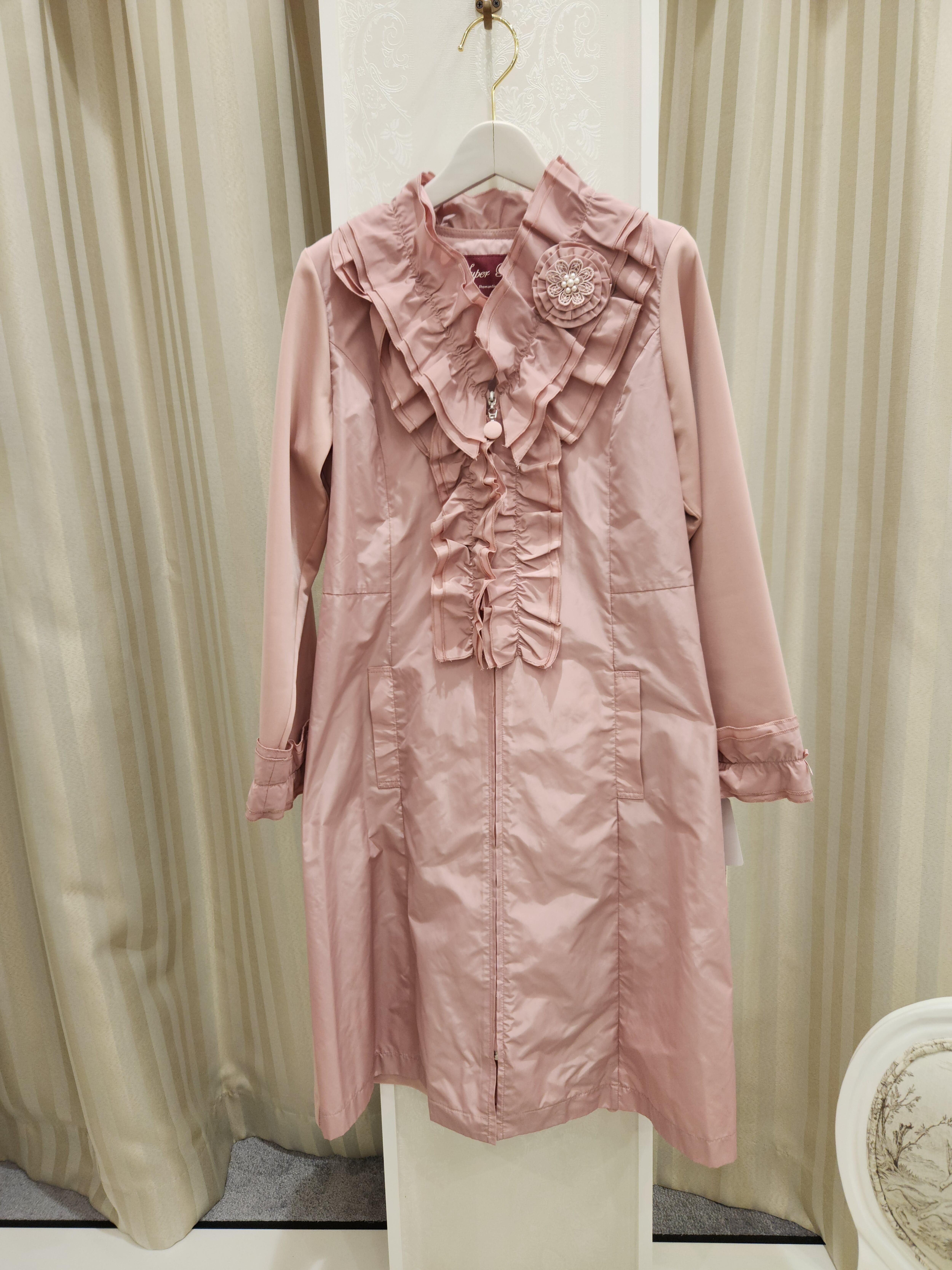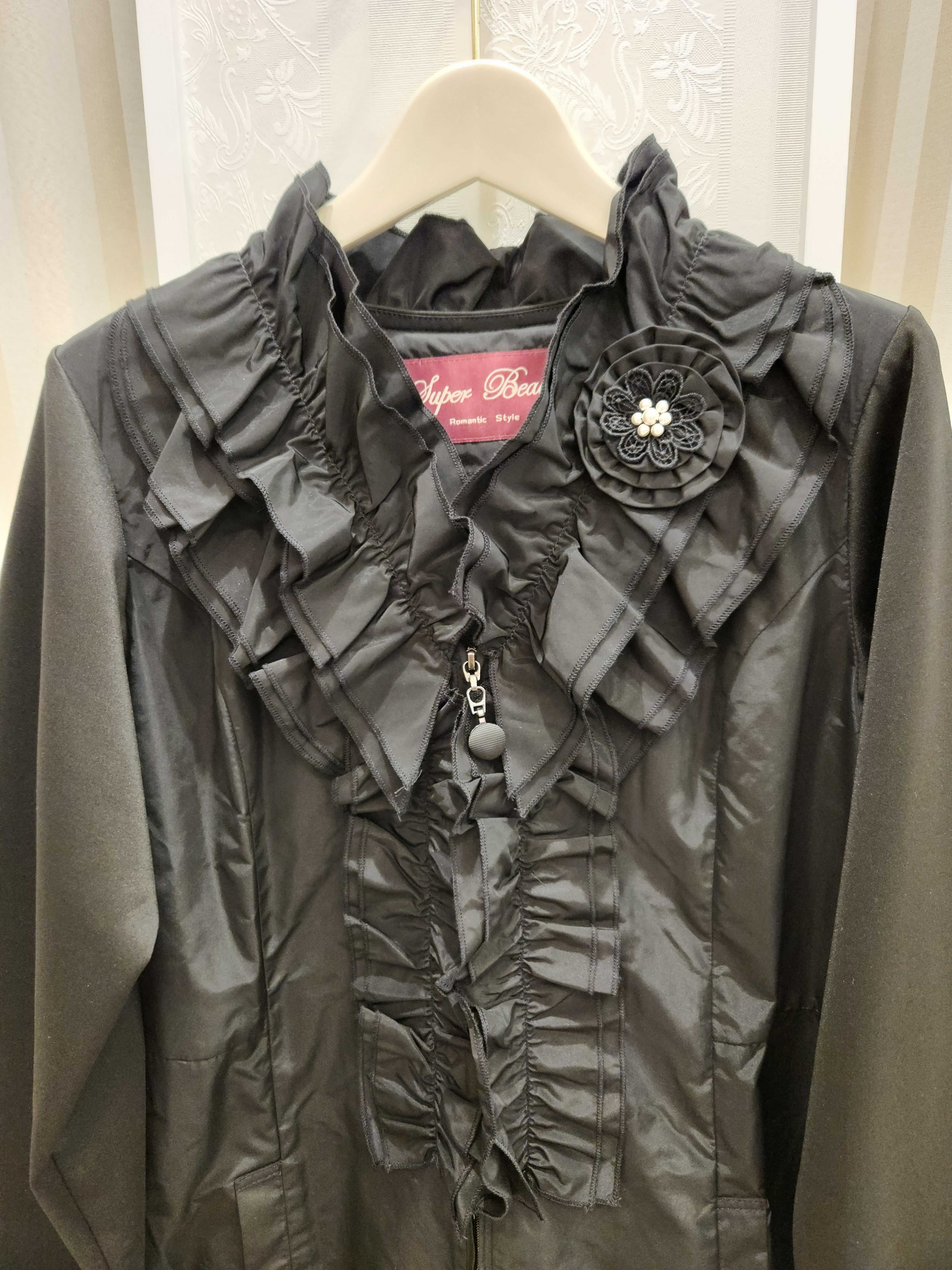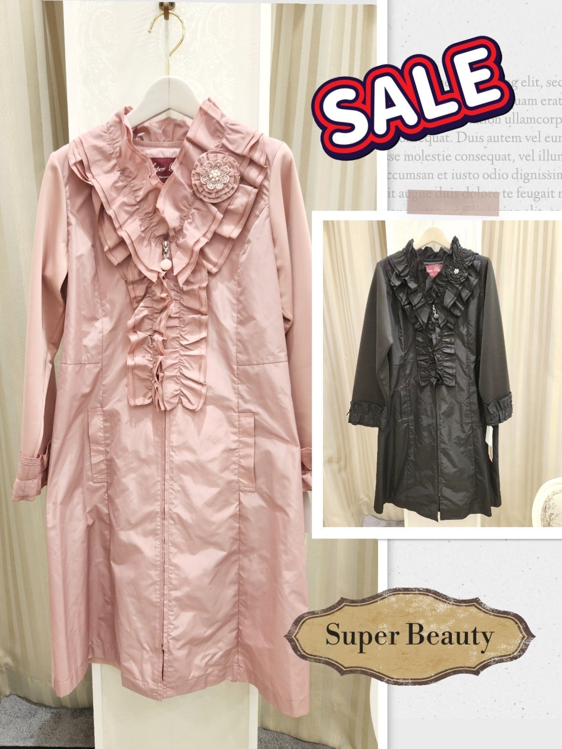 【Super Beauty ★セールお顔回りから胸元にかけてのフリルが華やかなスプリングコート(コサージュ付き)
