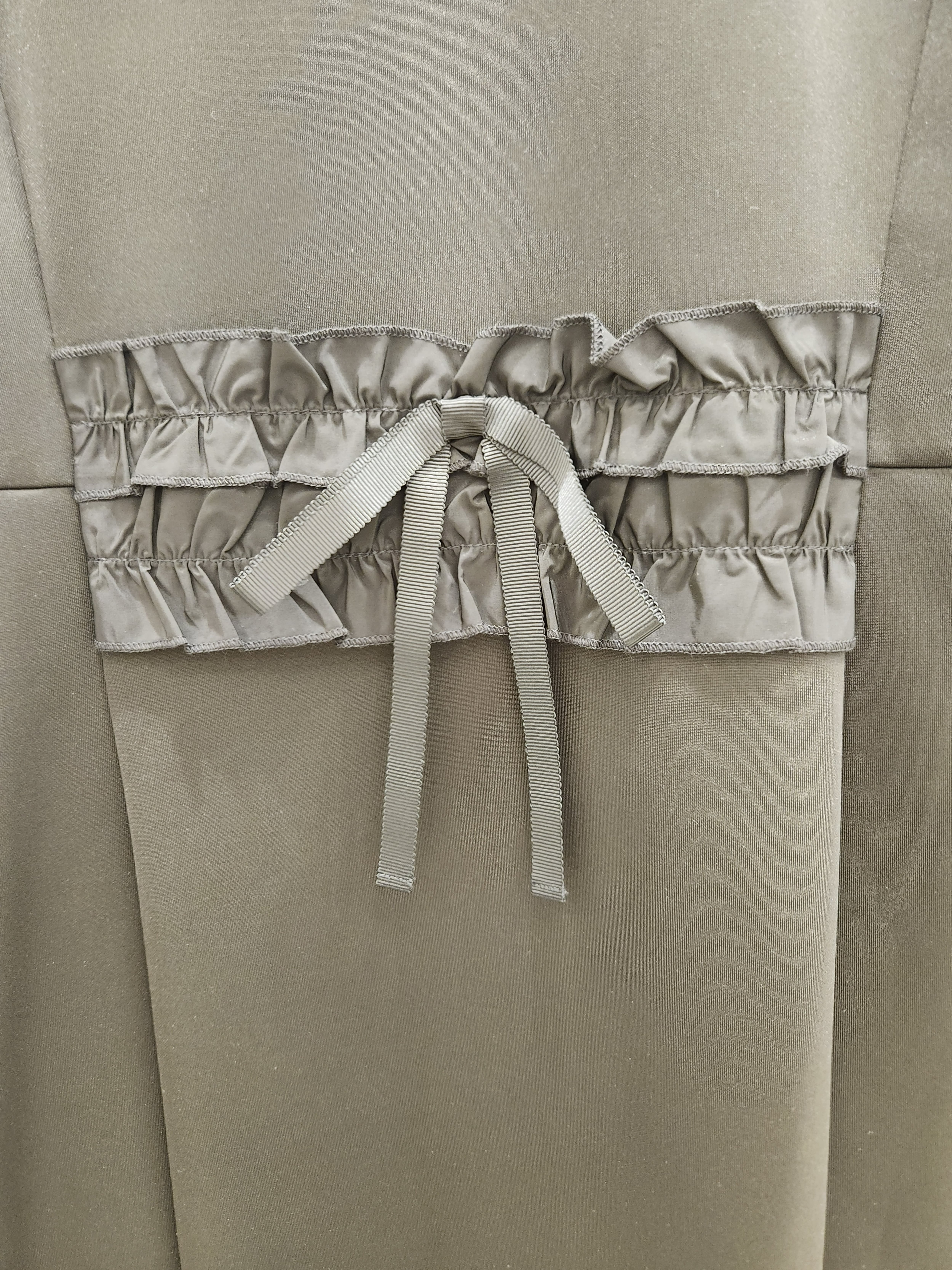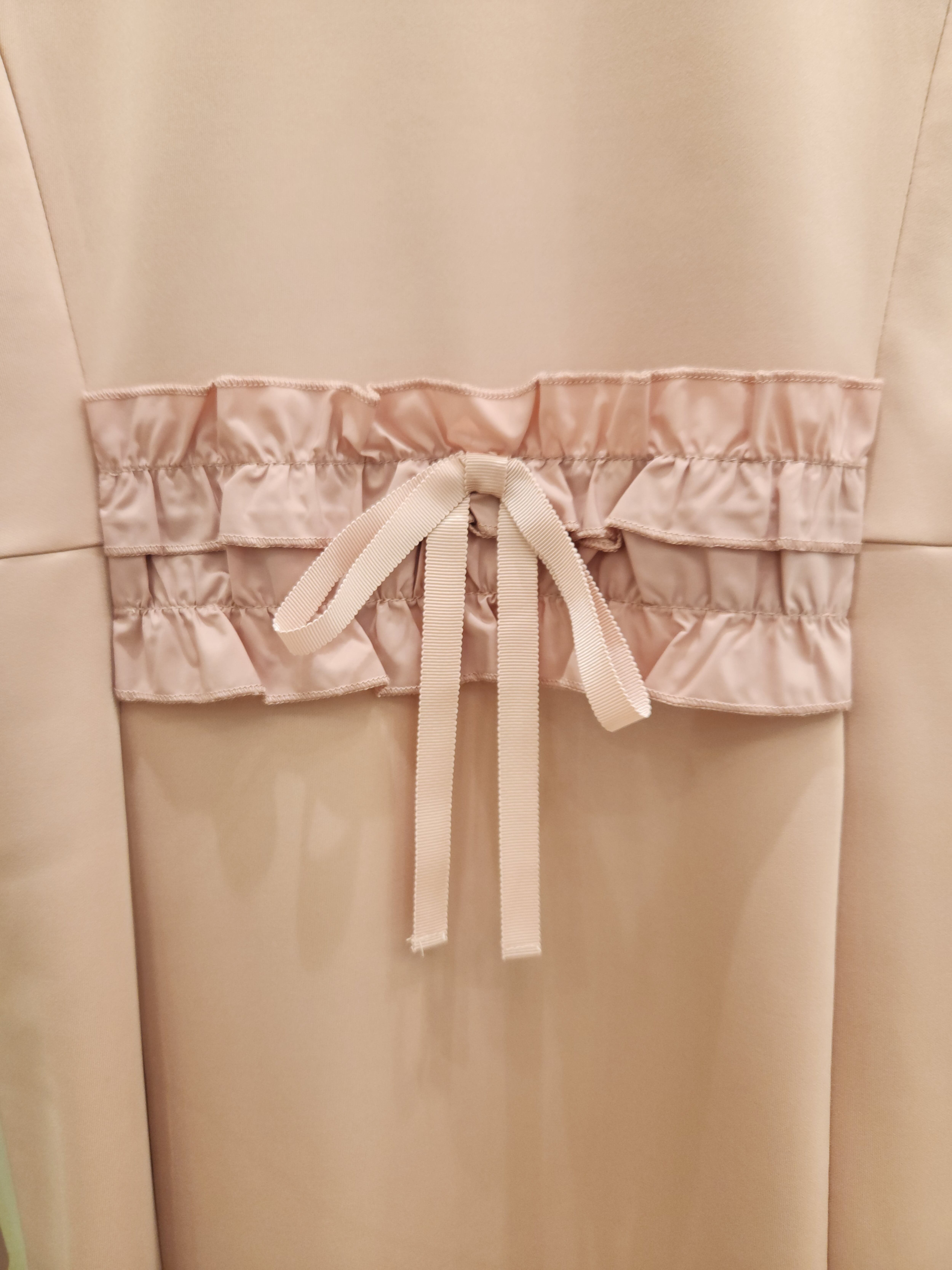 バックスタイルは、ウエスト辺りが愛らしいリボン等で装飾され、どこから見ても「大人可愛い」一着です。