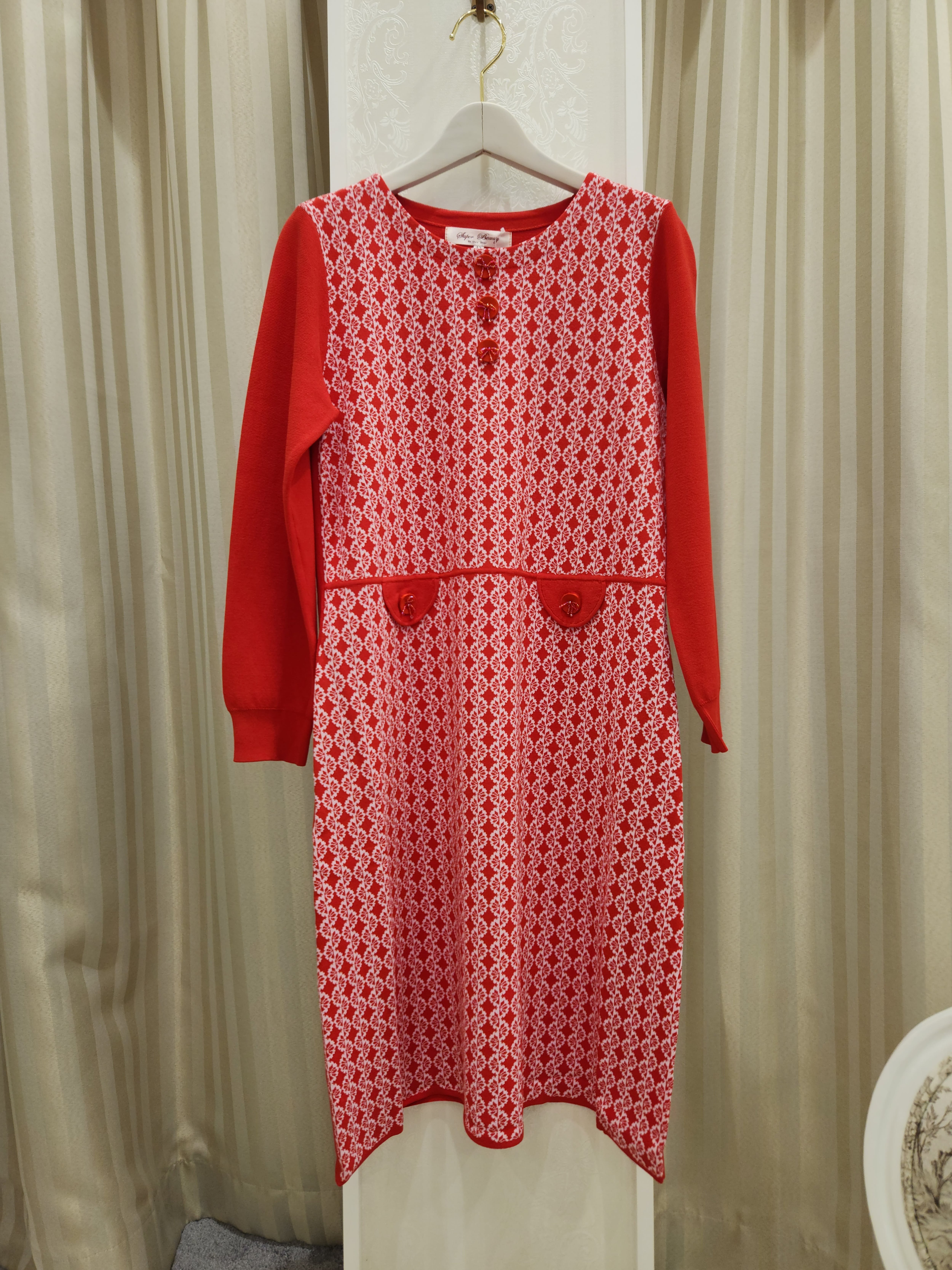 ■上品なレトロな柄が魅力のニットワンピースで、あなたのスタイルを華やかに演出します!