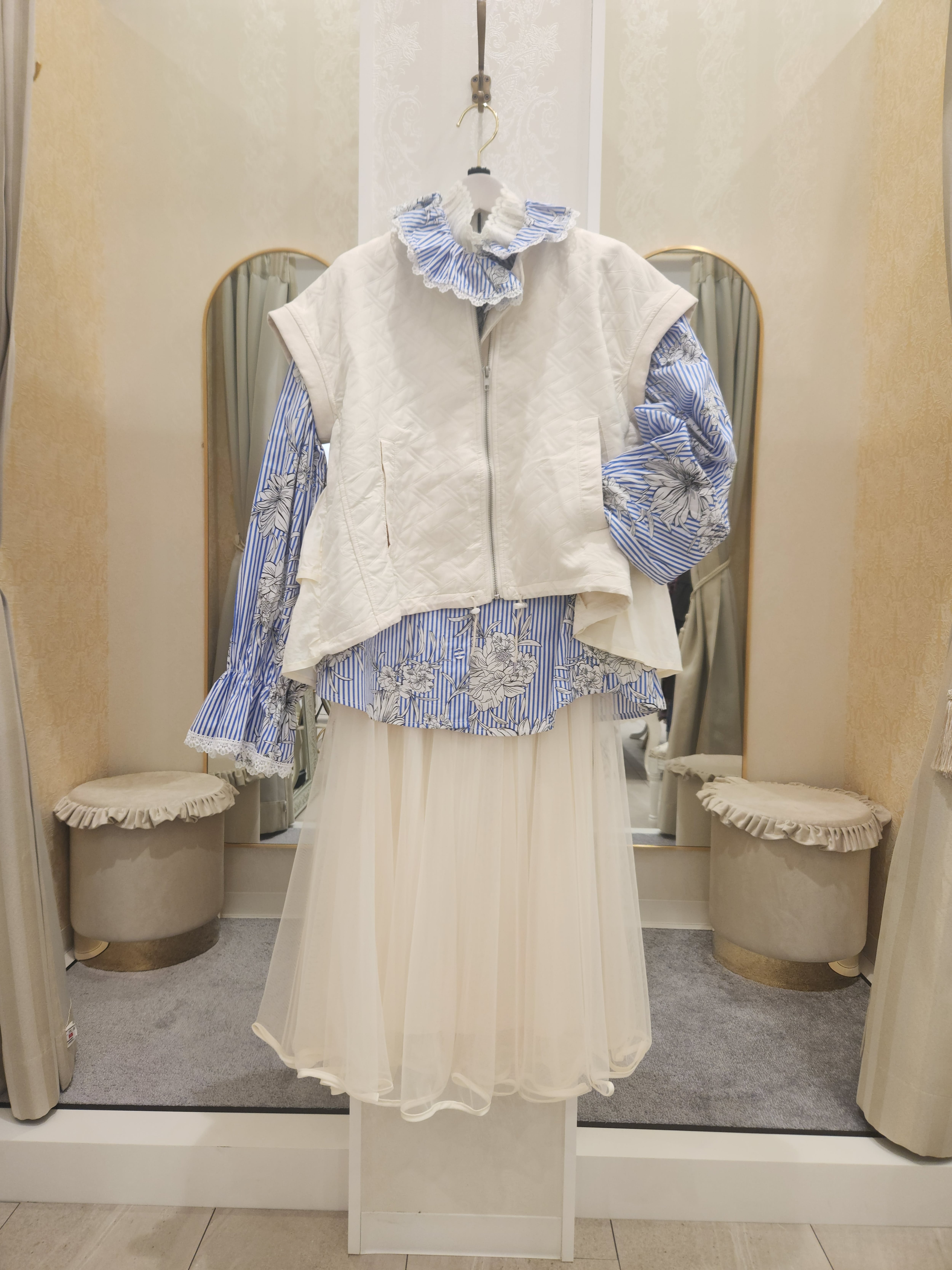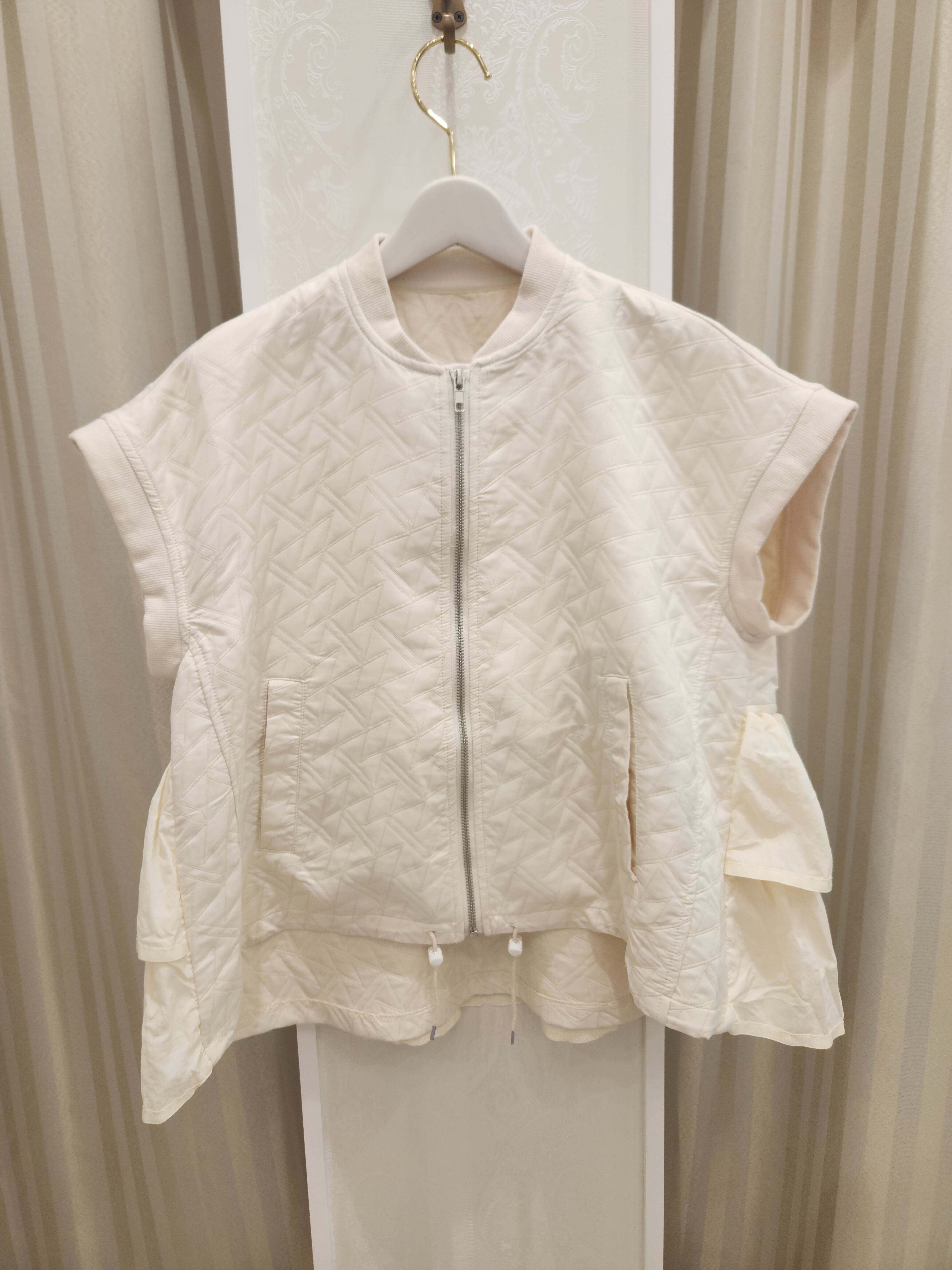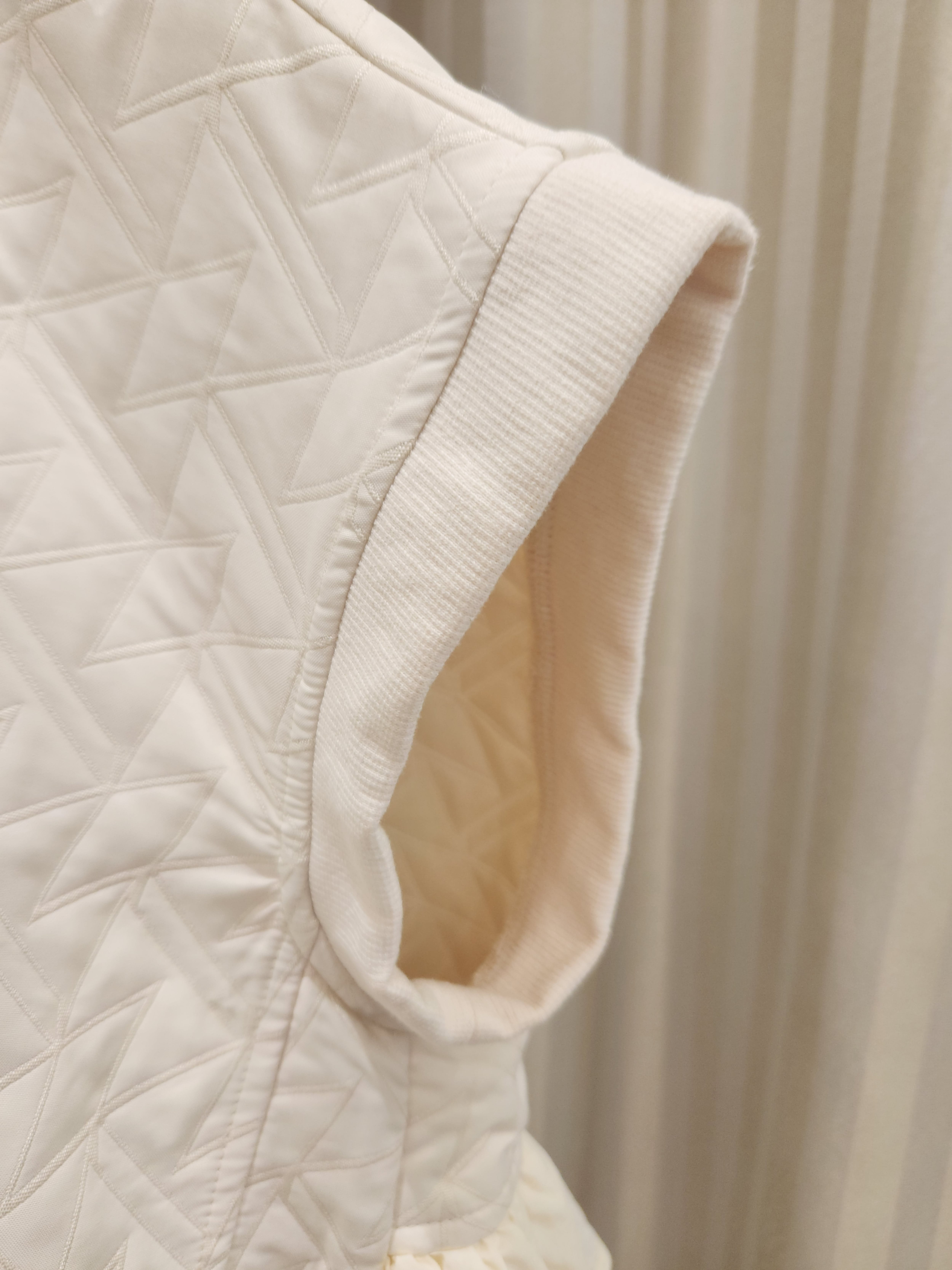 ■エレガントなオフホワイトの色合いが魅力のこのモードなベストは、軽やかなキルティング生地で作られており、楽に着こなせるスタイルを叶えます!