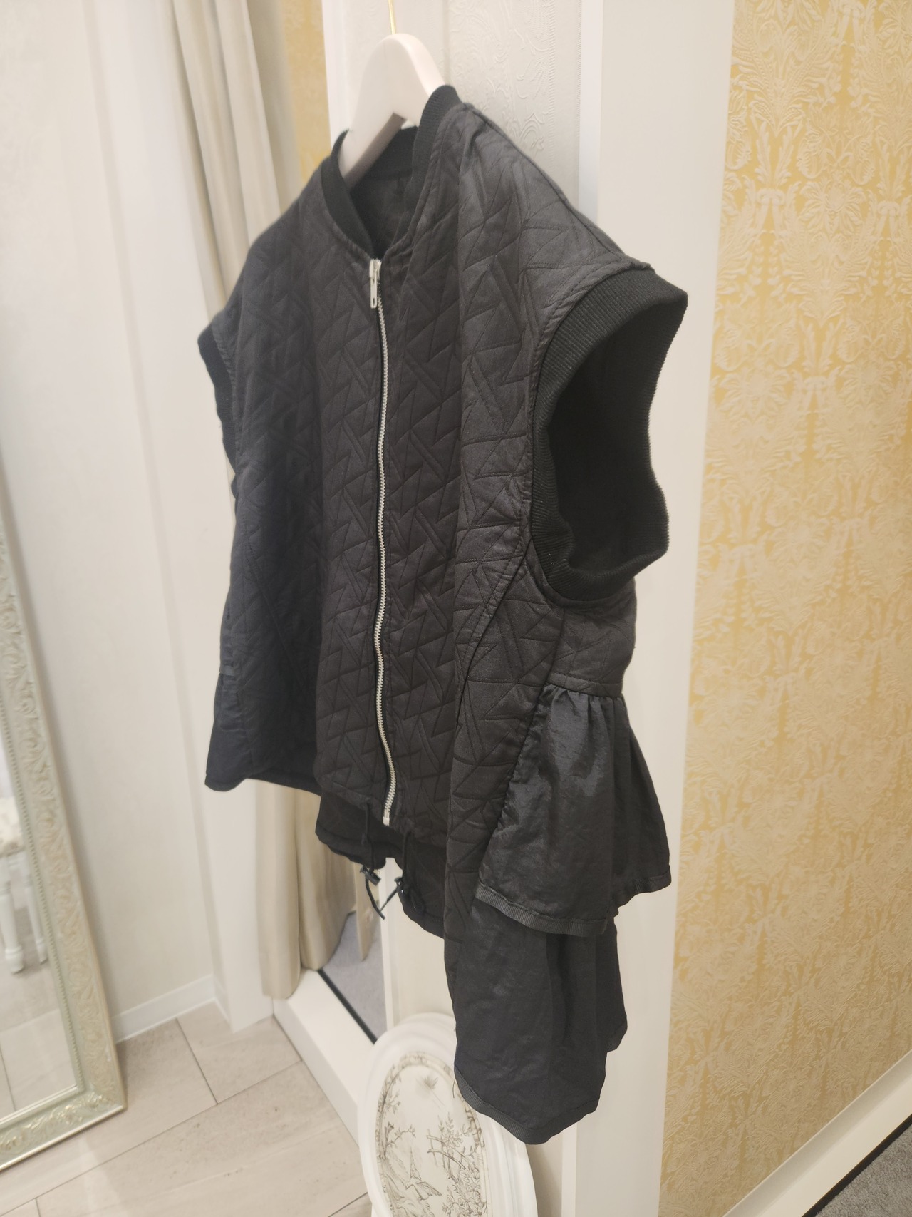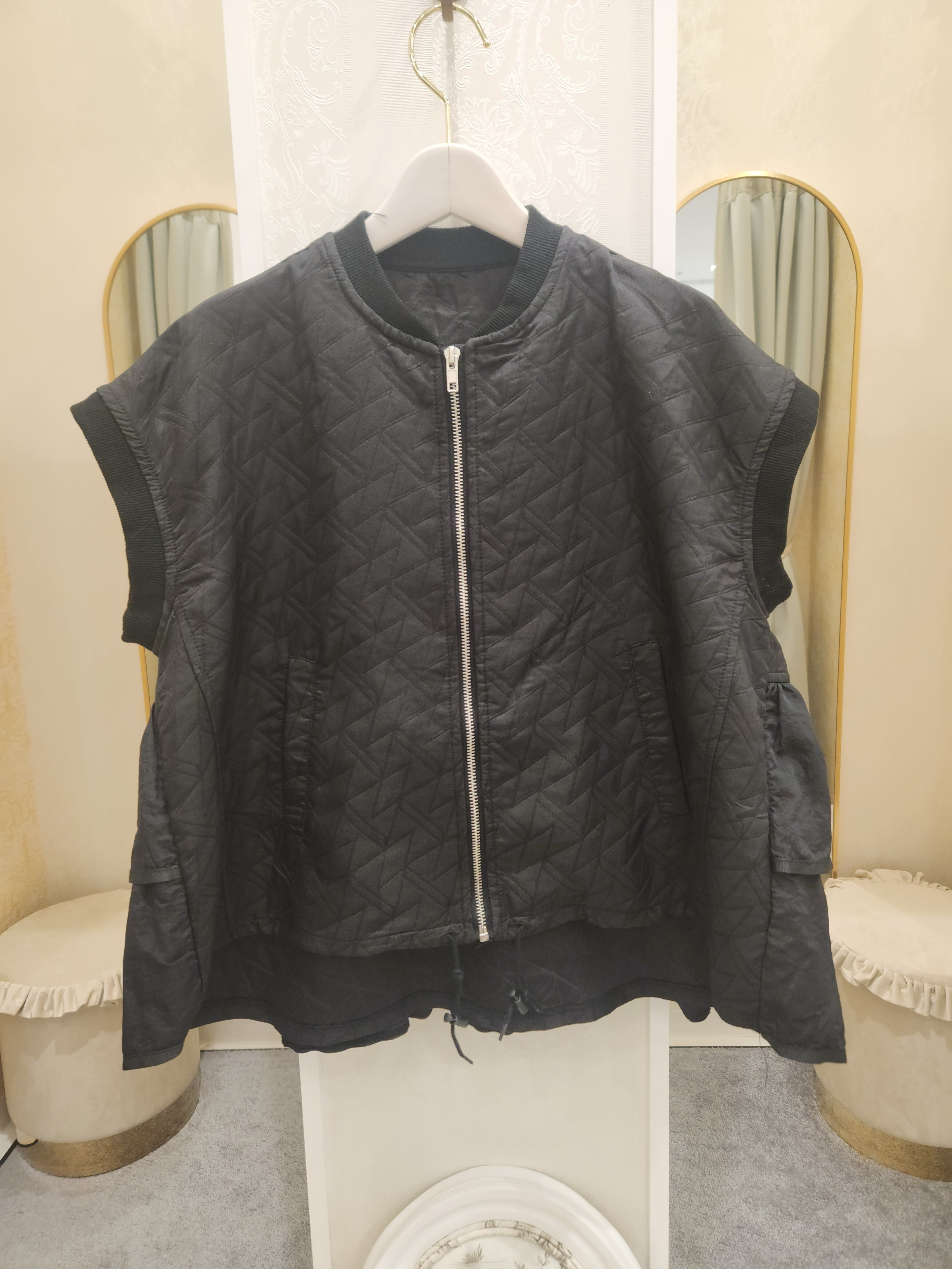 ■シックなブラックの色合いが魅力のこのモードなベストは、軽やかなキルティング生地で作られており、存在感あるスタイルを実現します!