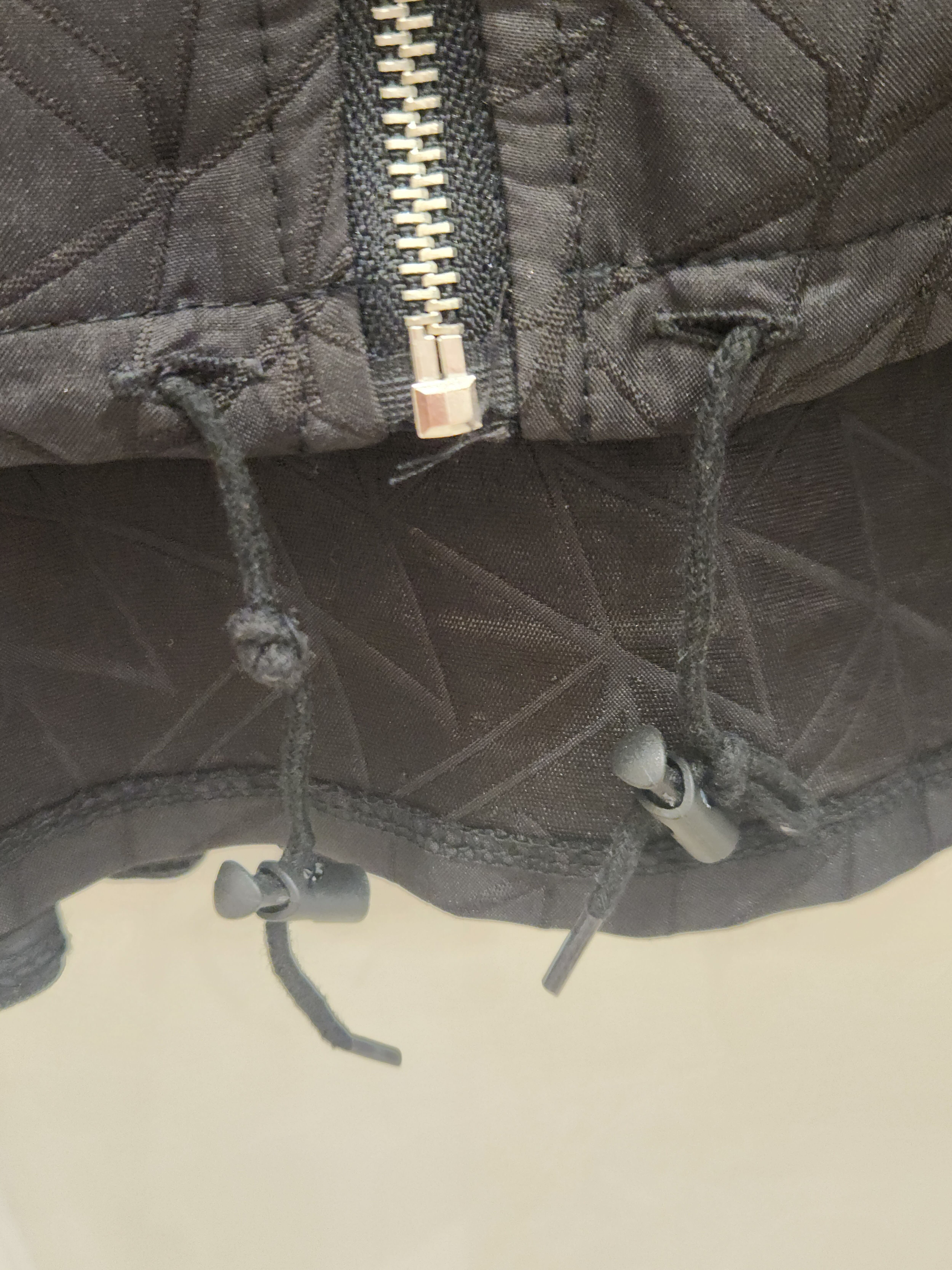 薄いお洒落なキルティング生地のたっぶり着られるモードなベスト(ブラック)