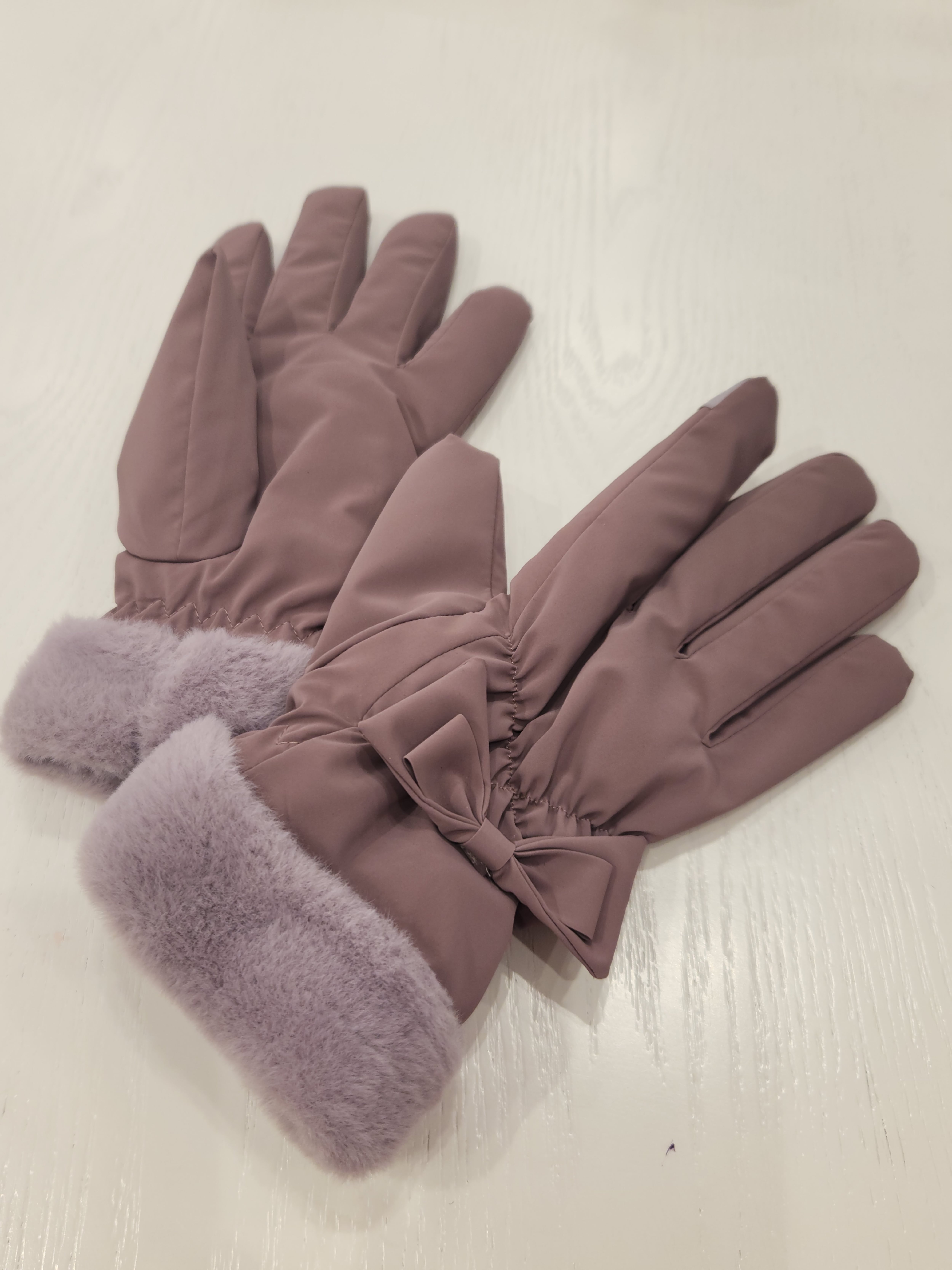半額セール⭐着けたままスマホが使える着け心地抜群の柔らか温かリボン手袋(パープル系)