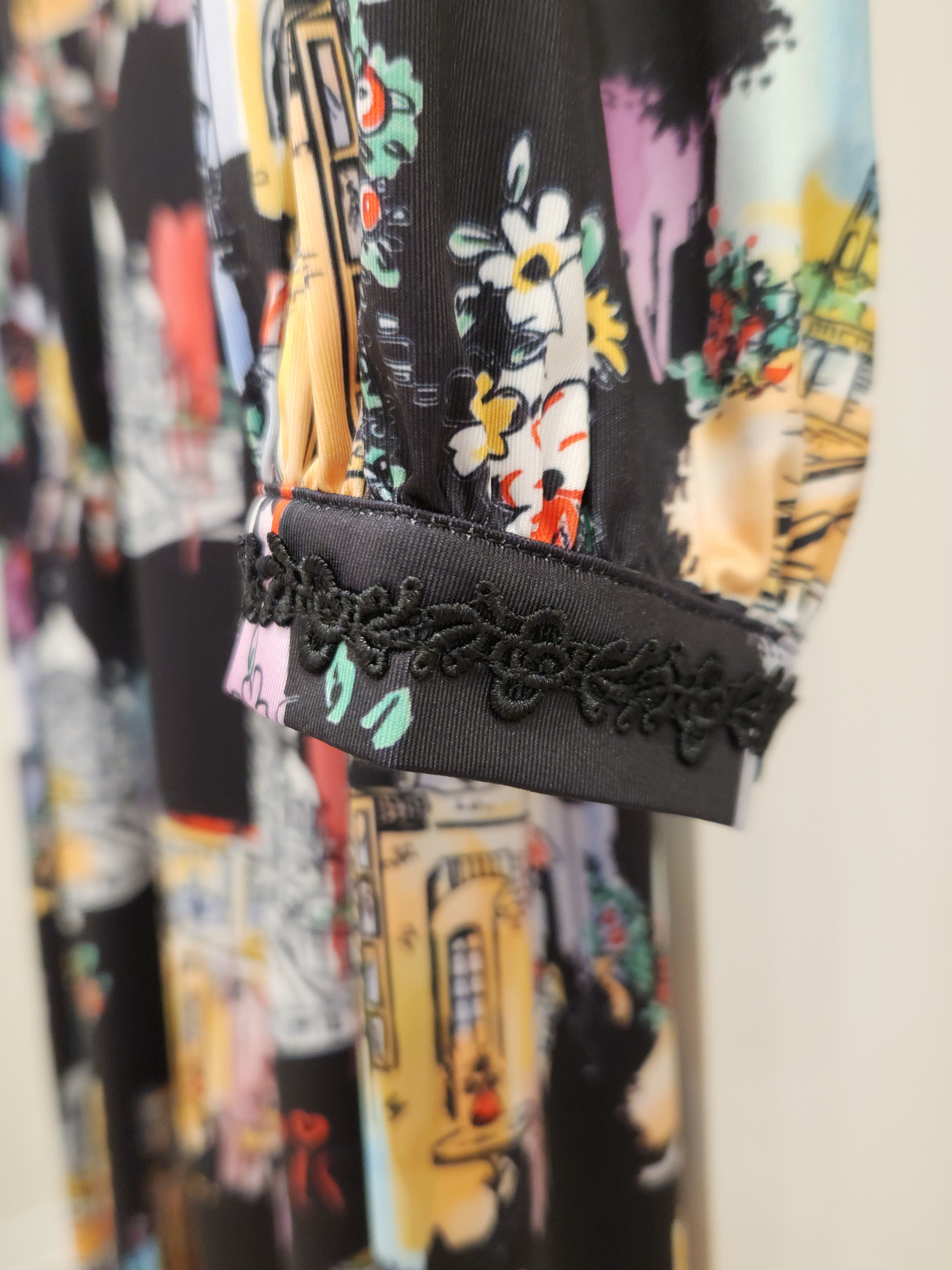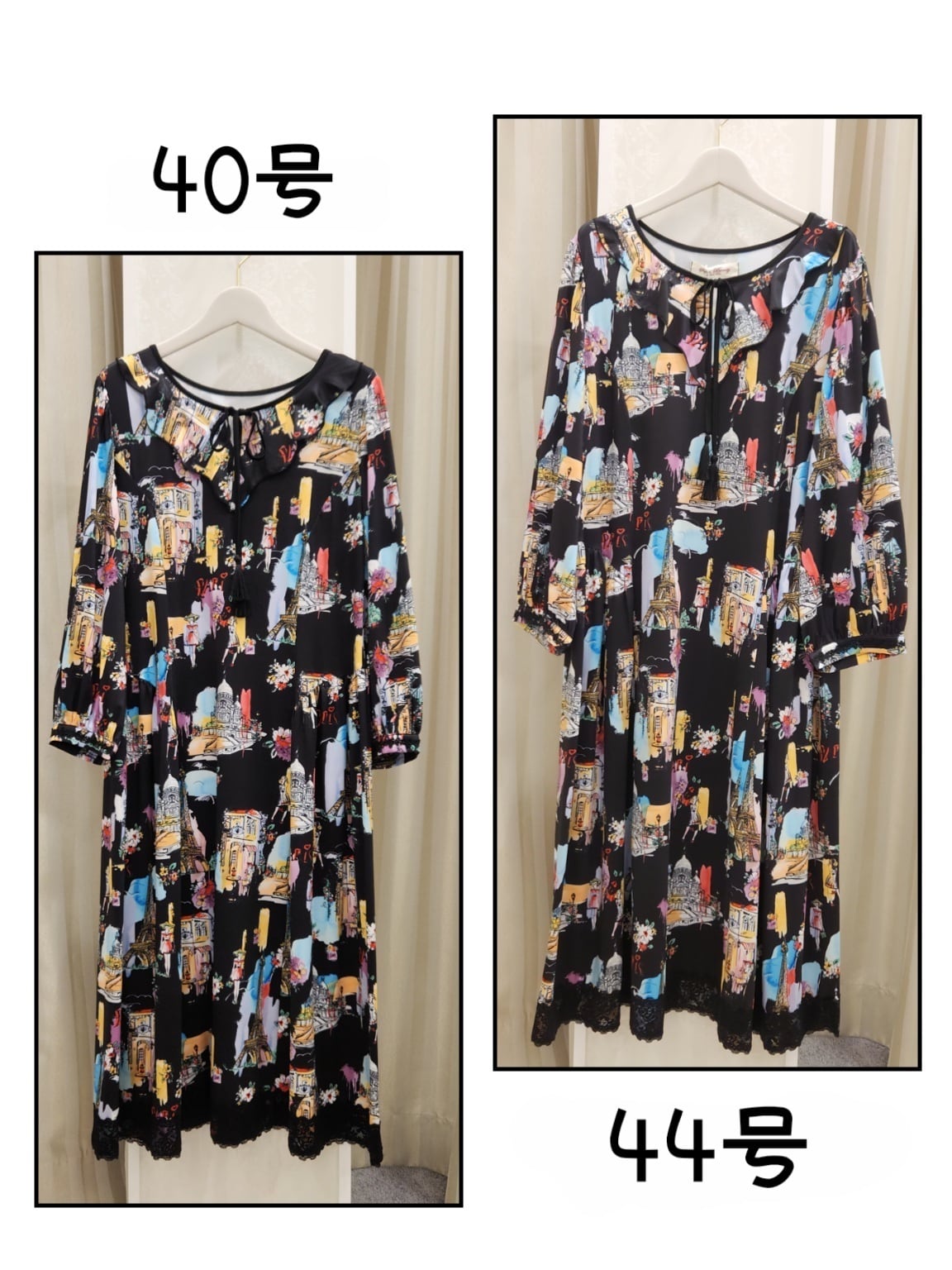 【Super Beauty ★新作】お洒落な心弾むPariの風景と人々が描かれた夢の世界が広がるワンピース(黒/40・44号)