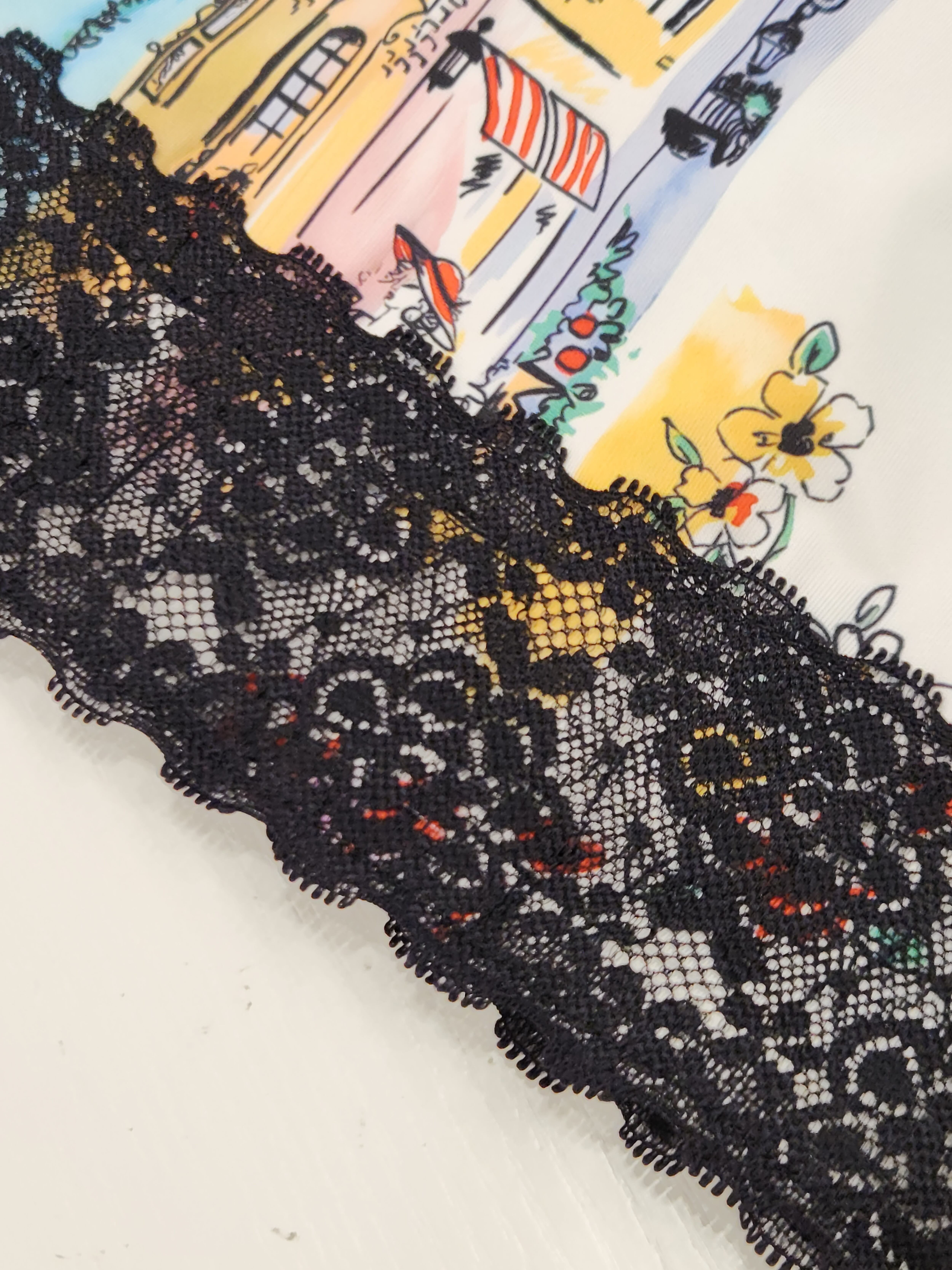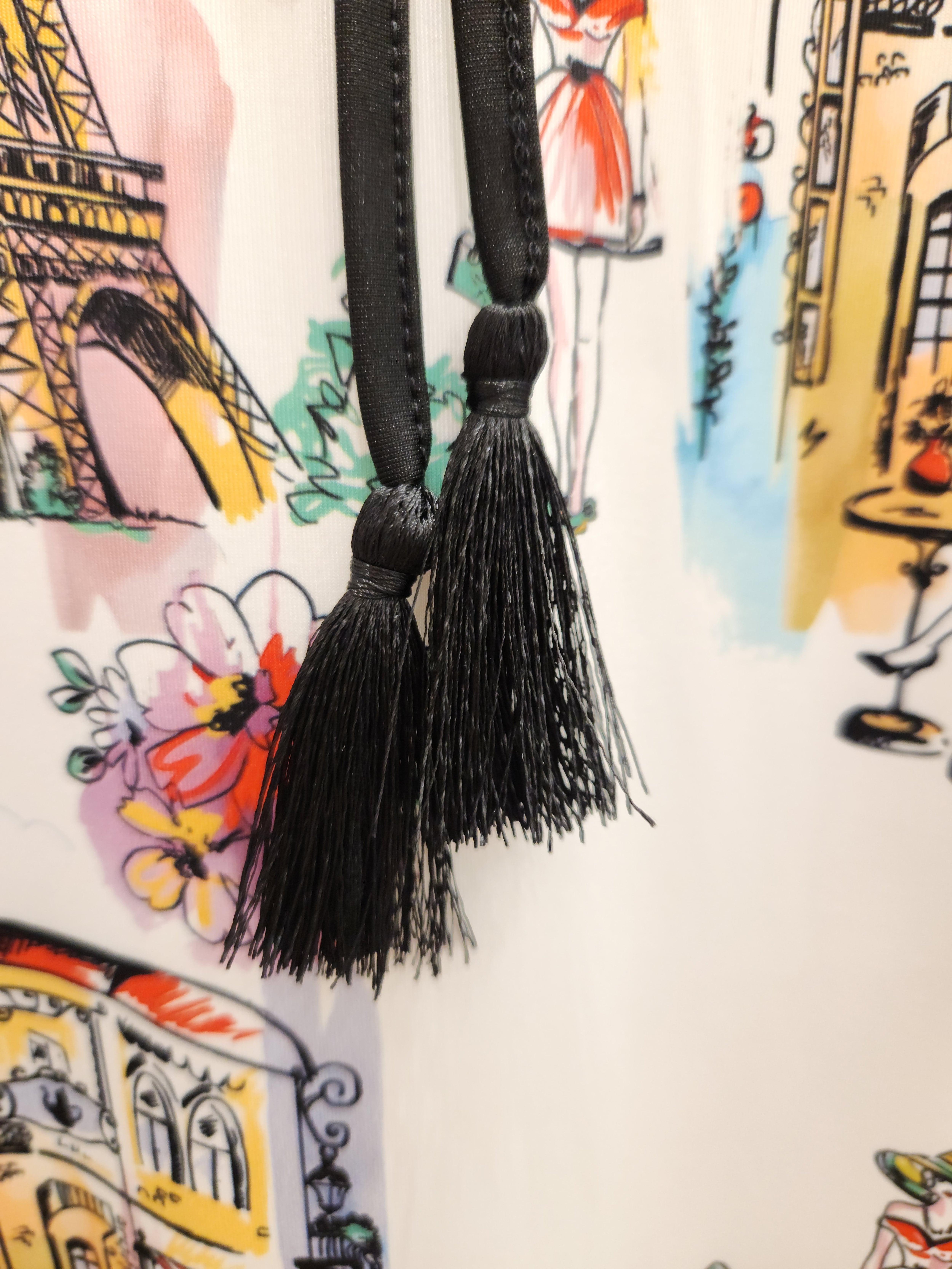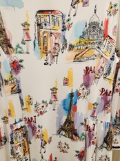 【Super Beauty / スーパービューティー★新作】お洒落な心弾むPariの風景が描かれた夢の世界が広がるワンピース(ホワイト/40)