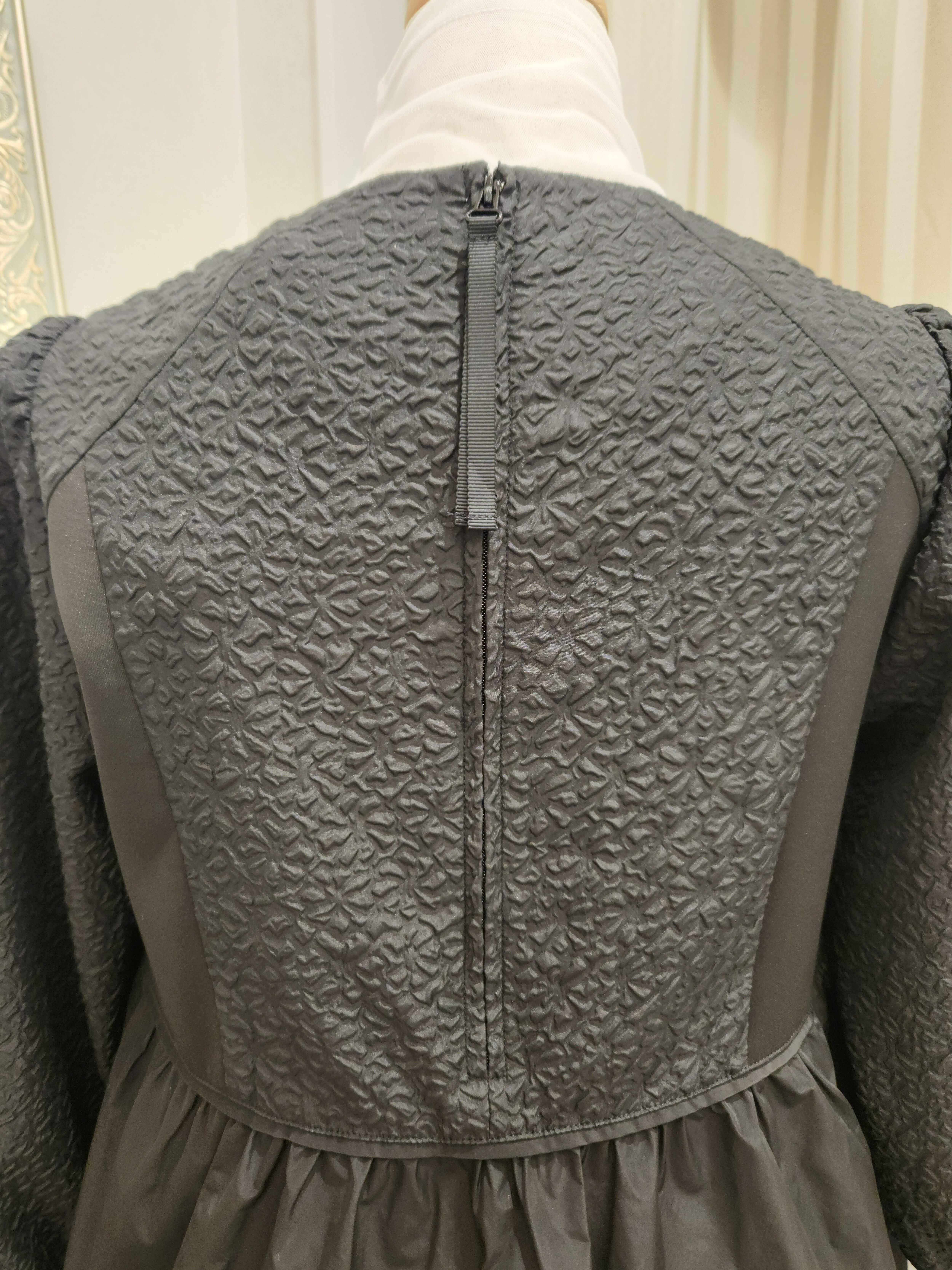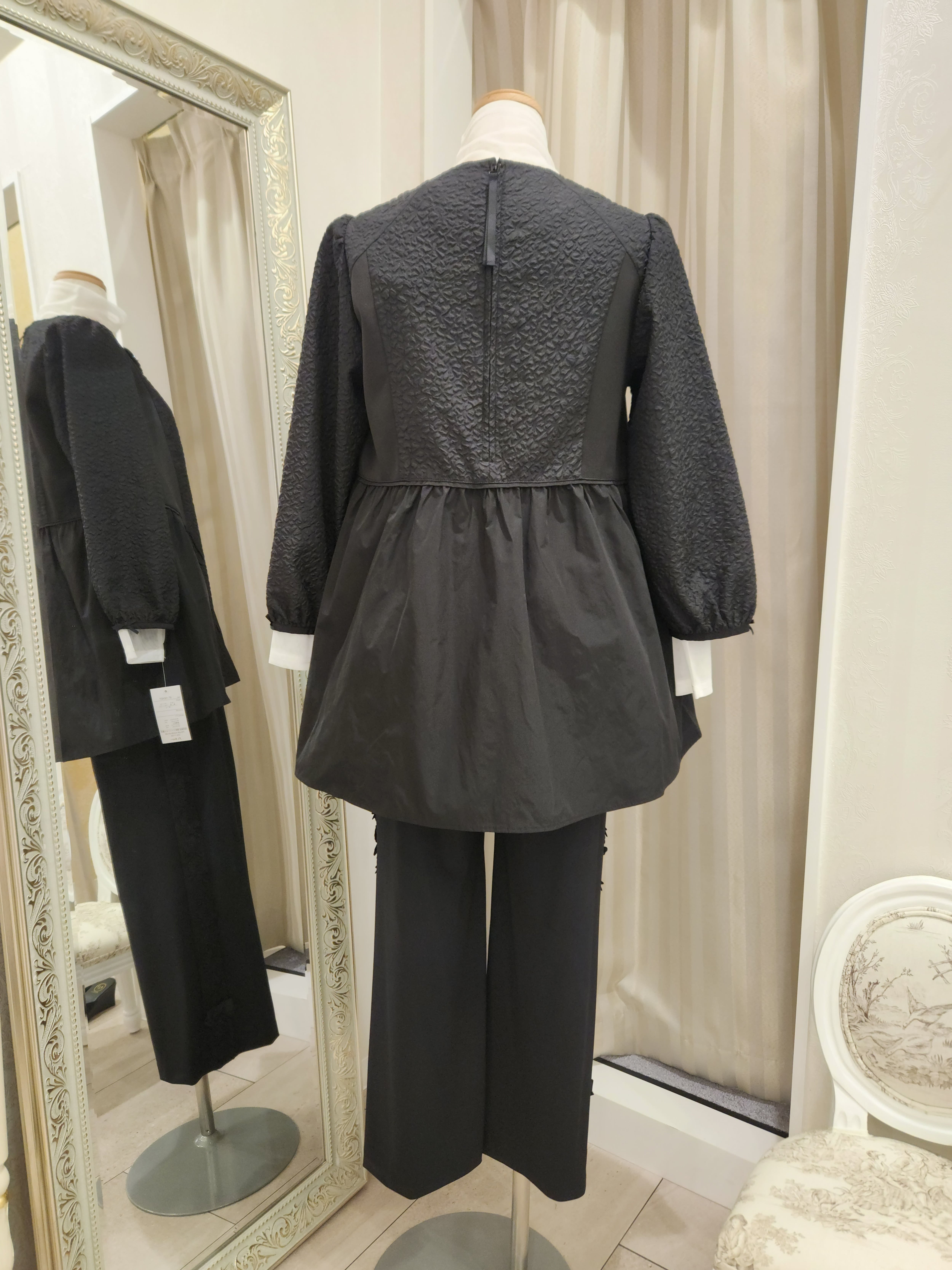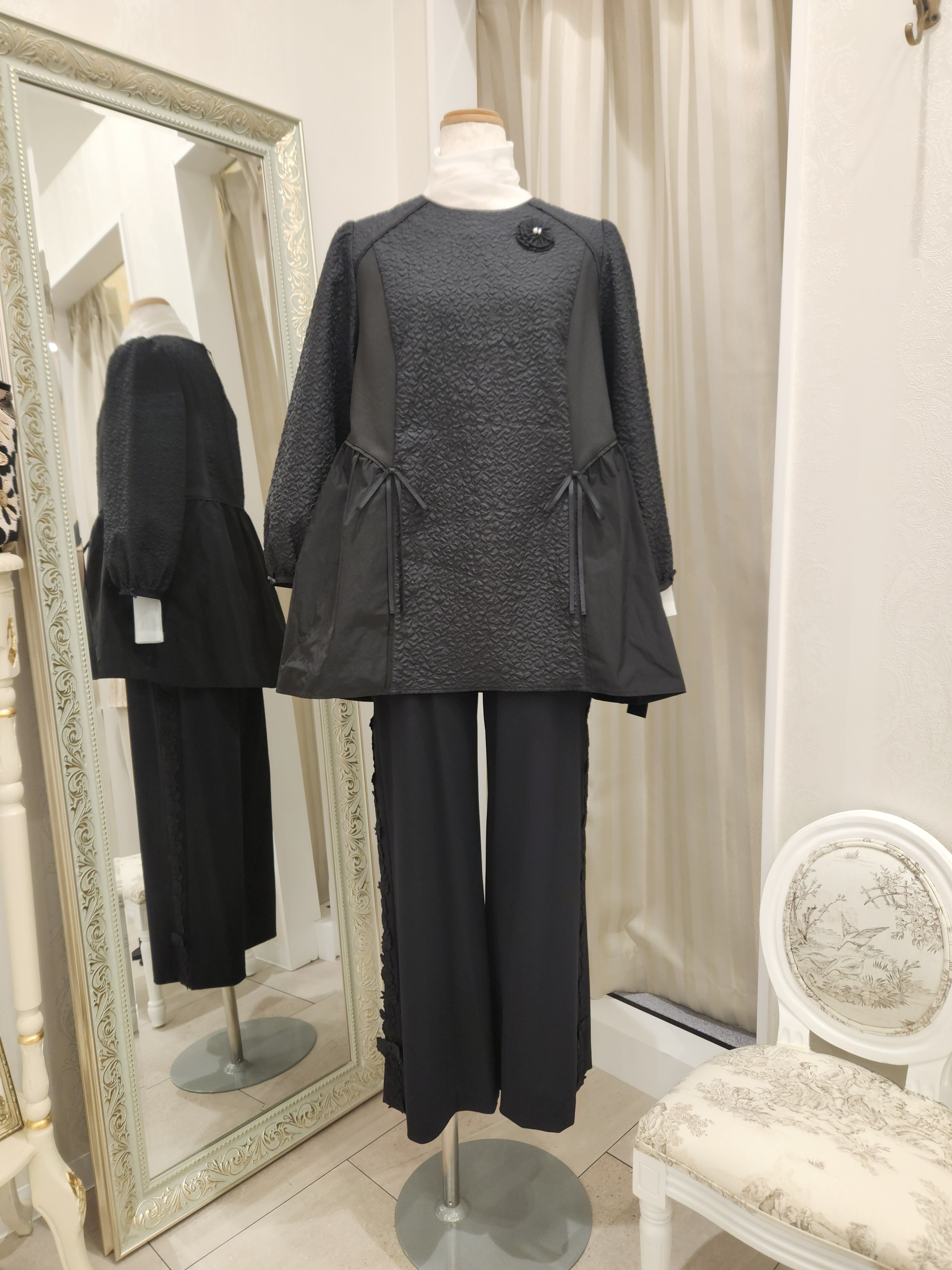 また、こちらのお色は、同色のブラックのパンツを合わせてお式等でも活用できそうな嬉しい一着です。