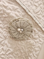 ウエストには上品なリボンが取り付けられ、胸元のコサージュは取り外し可能です。