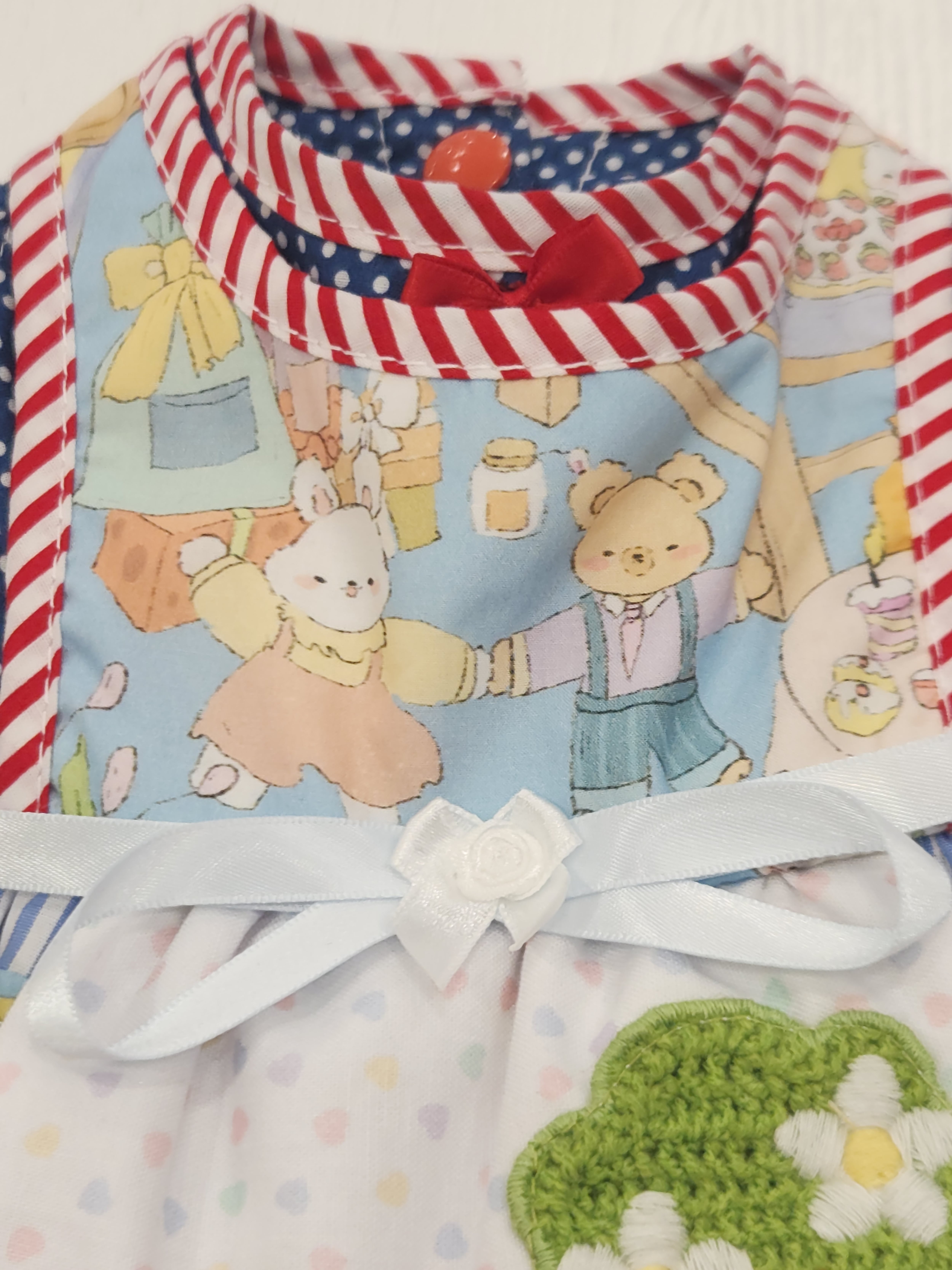 とにかく手が込んでいて、どの部分をとっても「可愛い!!」と思わず声が出てしまうワンちゃん用のワンピース。