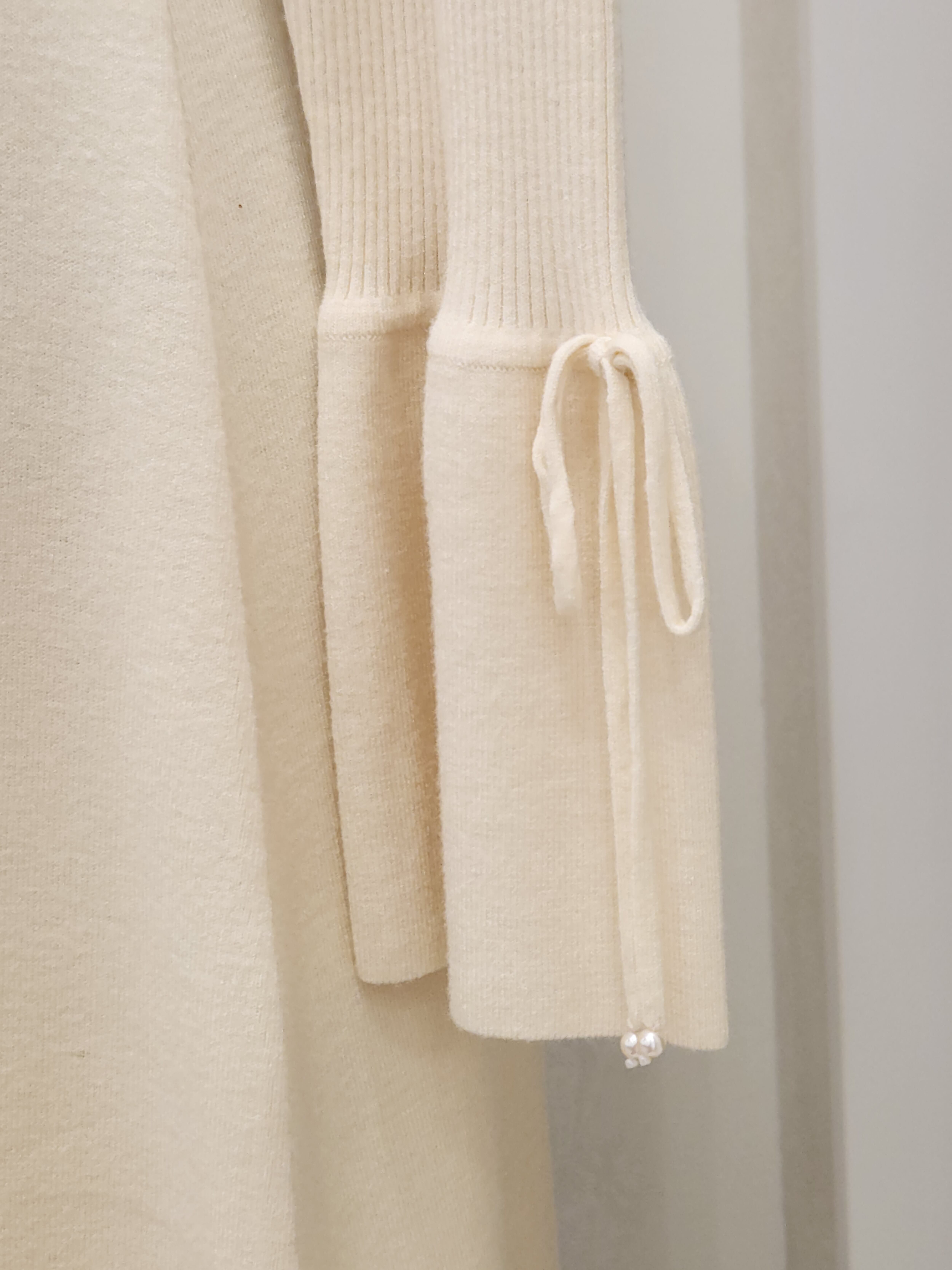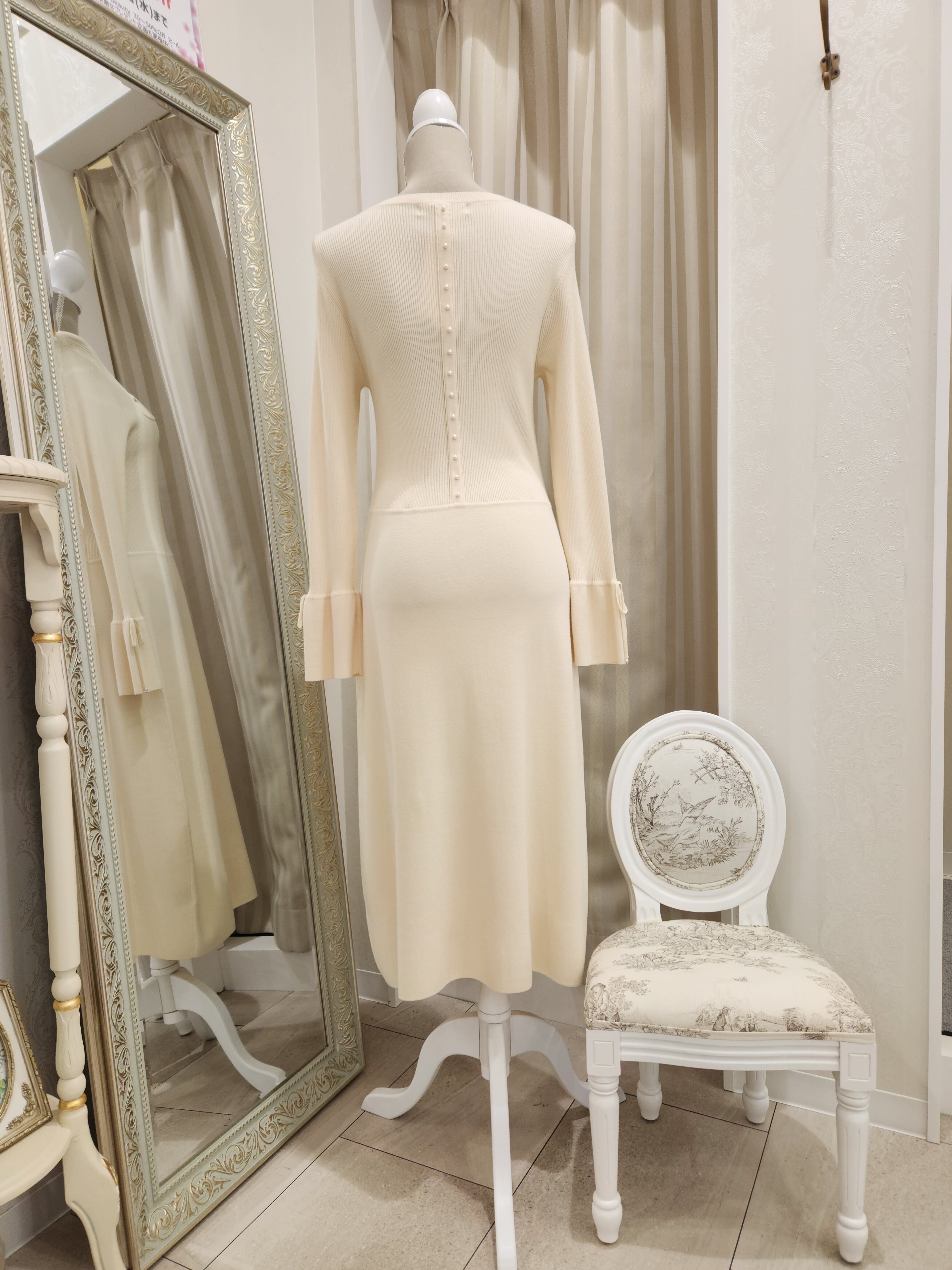 姫袖が優雅!背中のパール装飾やお袖の細いリボンが上品で大人可愛いニットワンピース