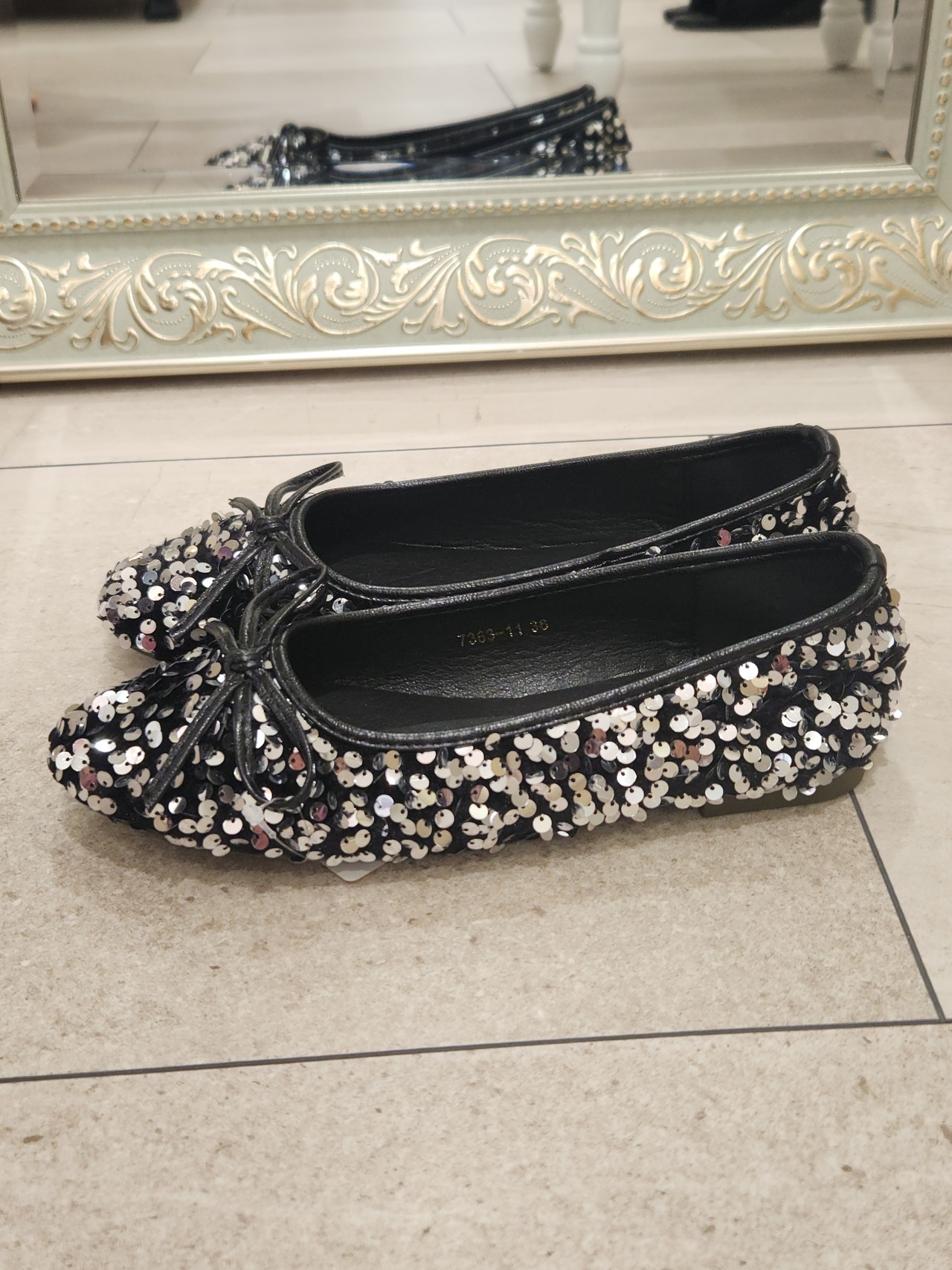 【煌めくスパンコールで埋め尽くされた大人可愛いバレエシューズ】