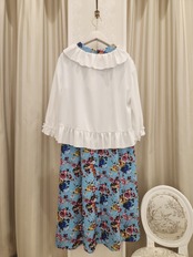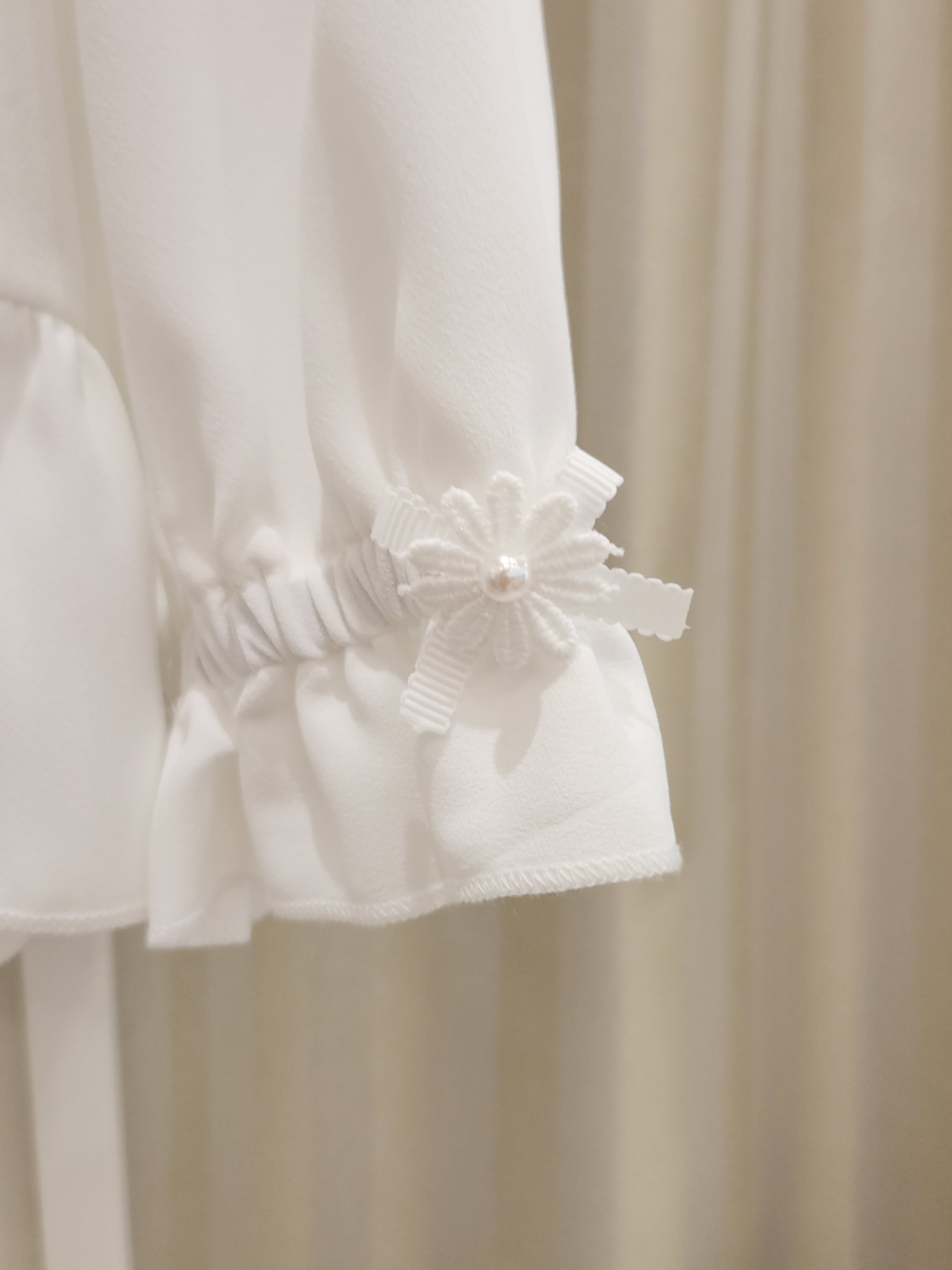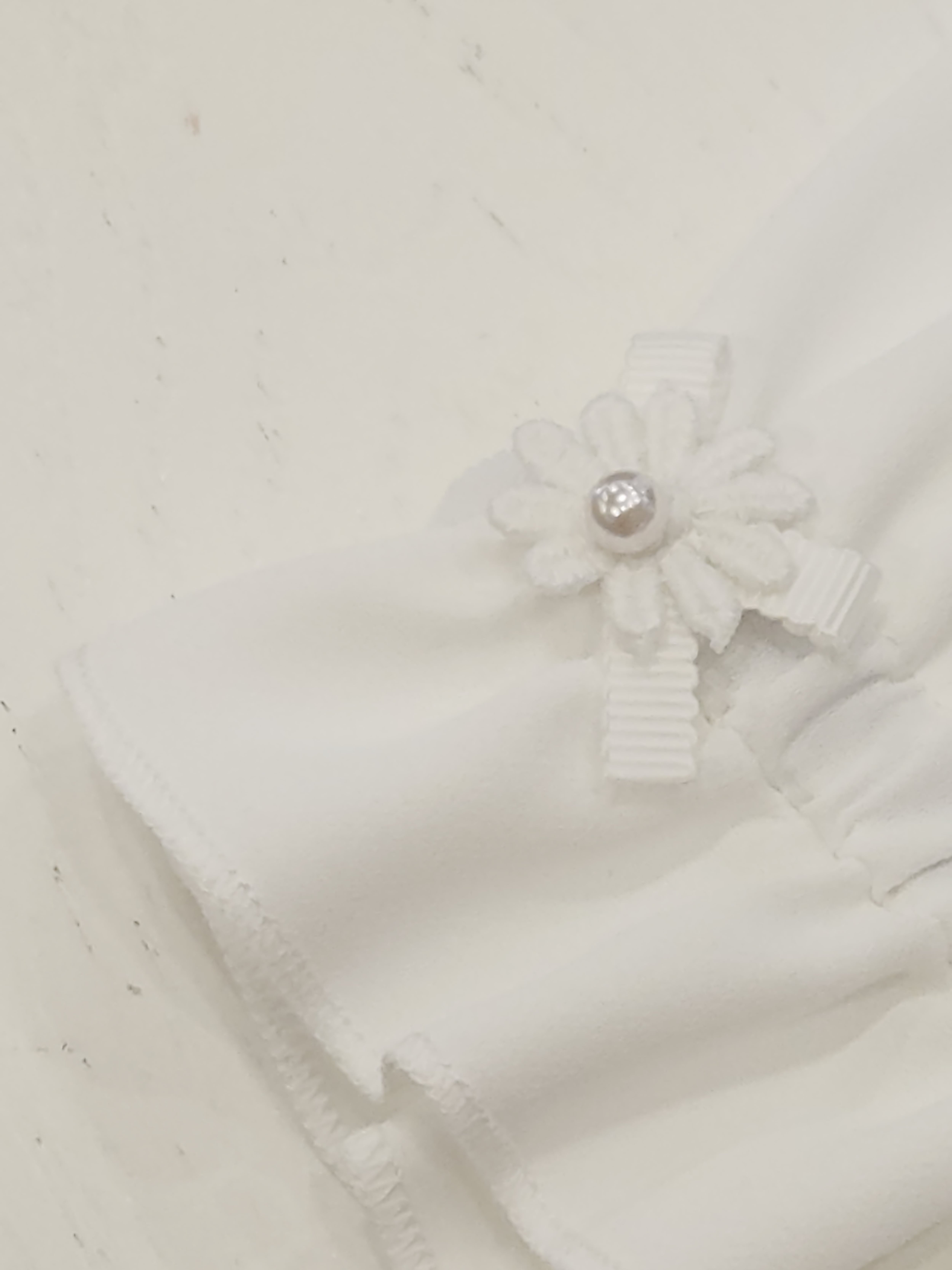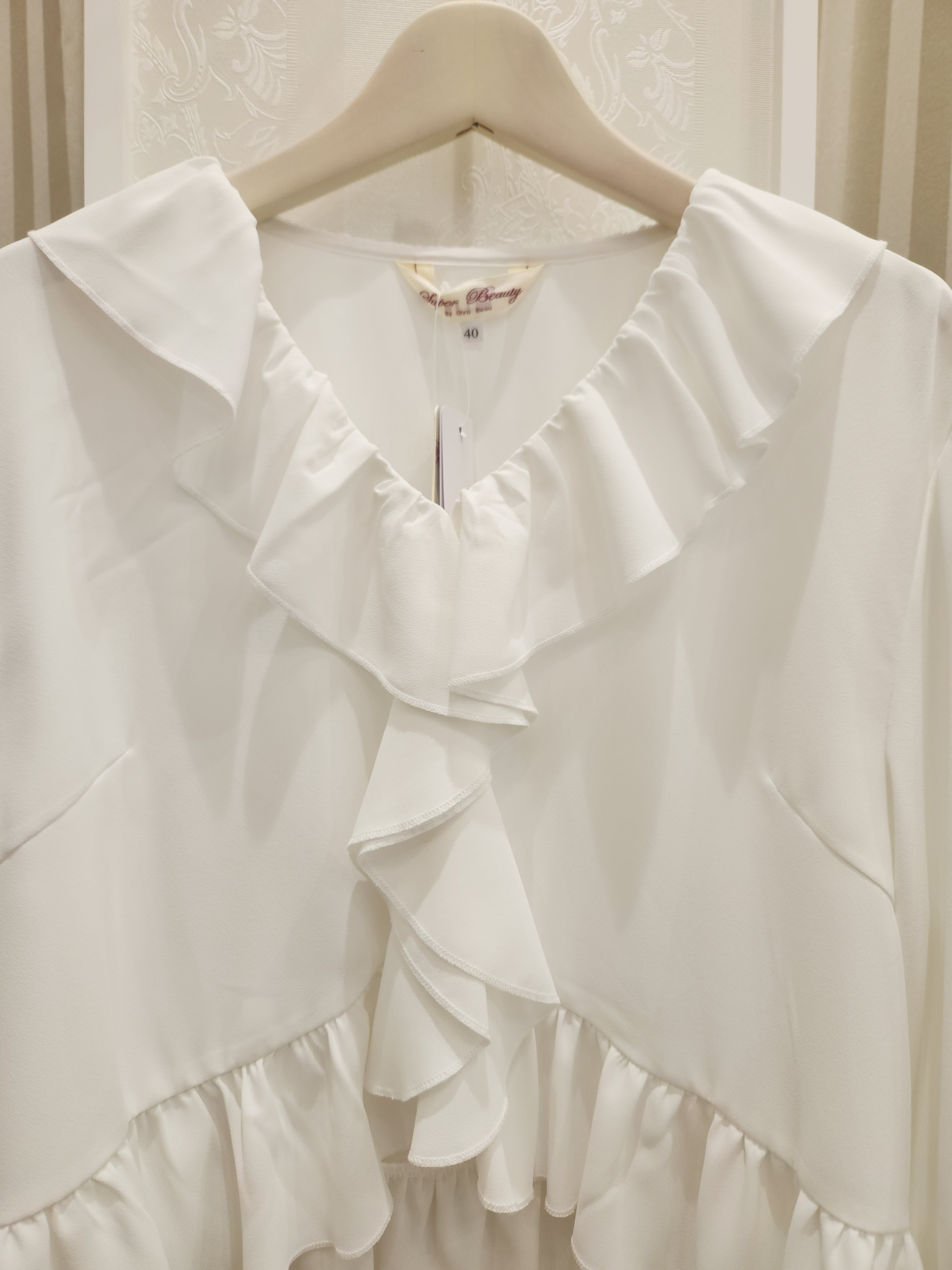 お花モチーフが可愛い柔らかで滑らかな素材のホワイトフリルボレロ