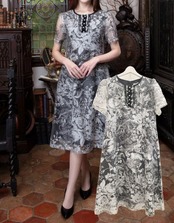 お花等、素敵な植物柄のオーガンジーのワンピース。