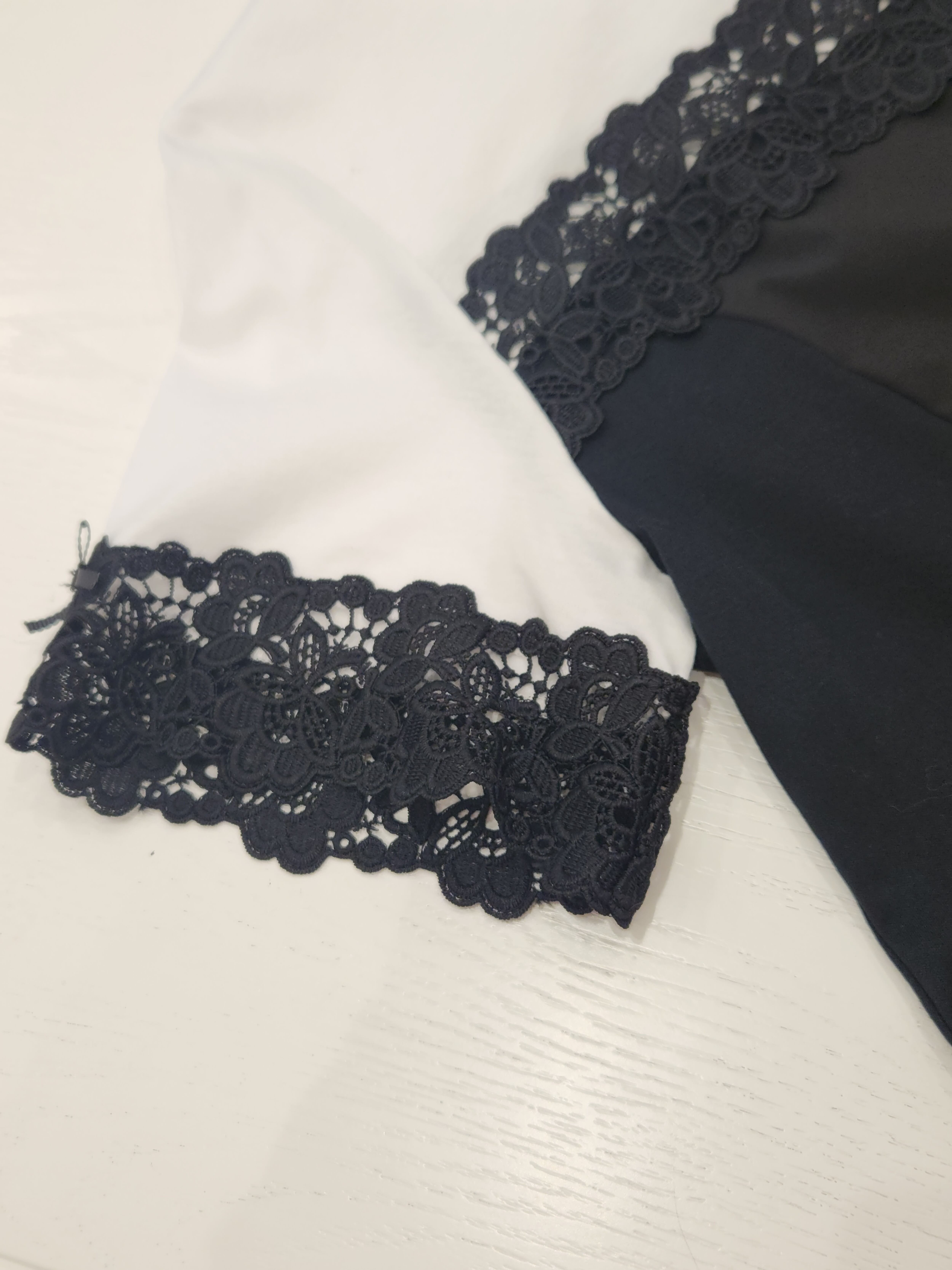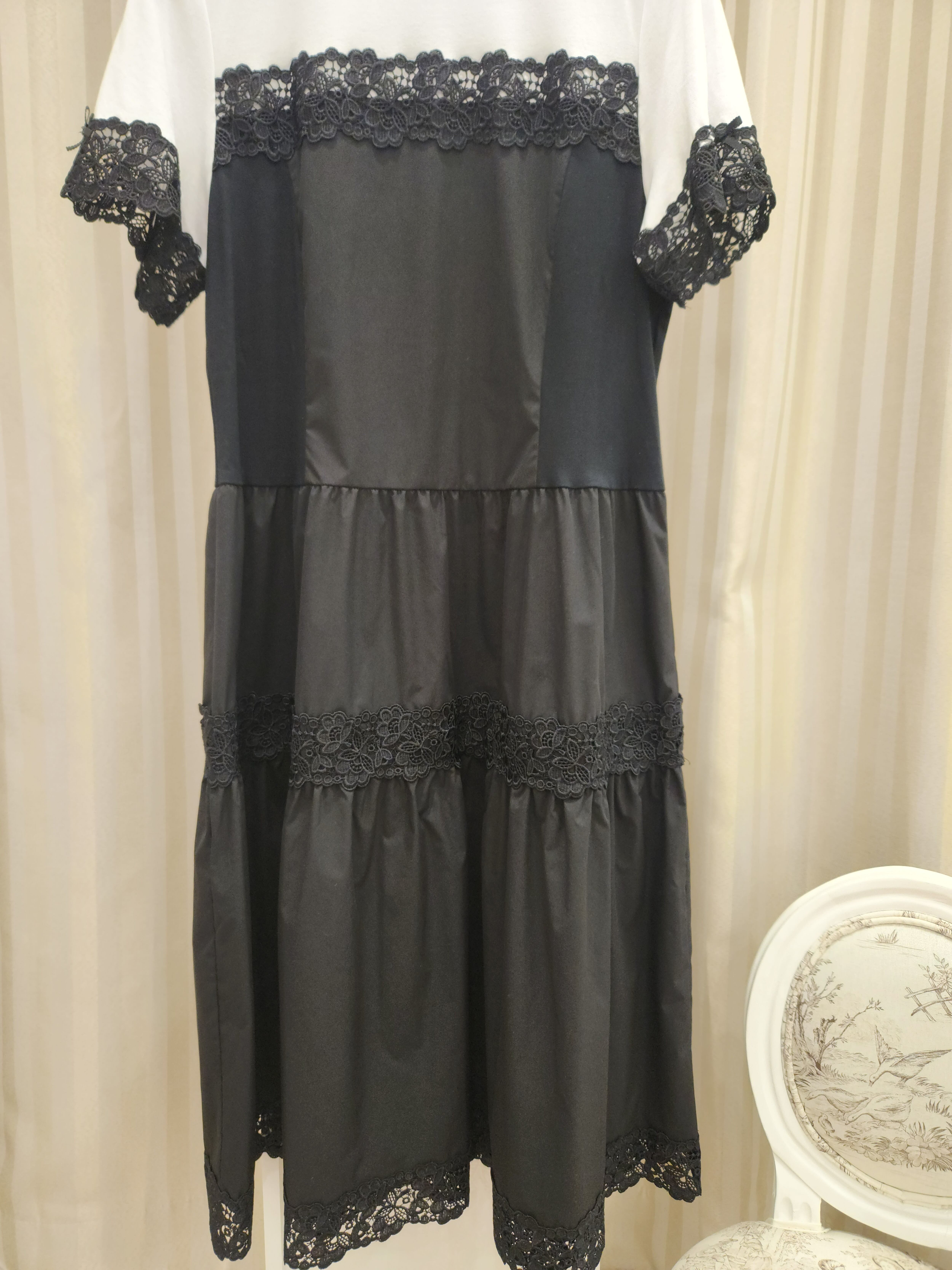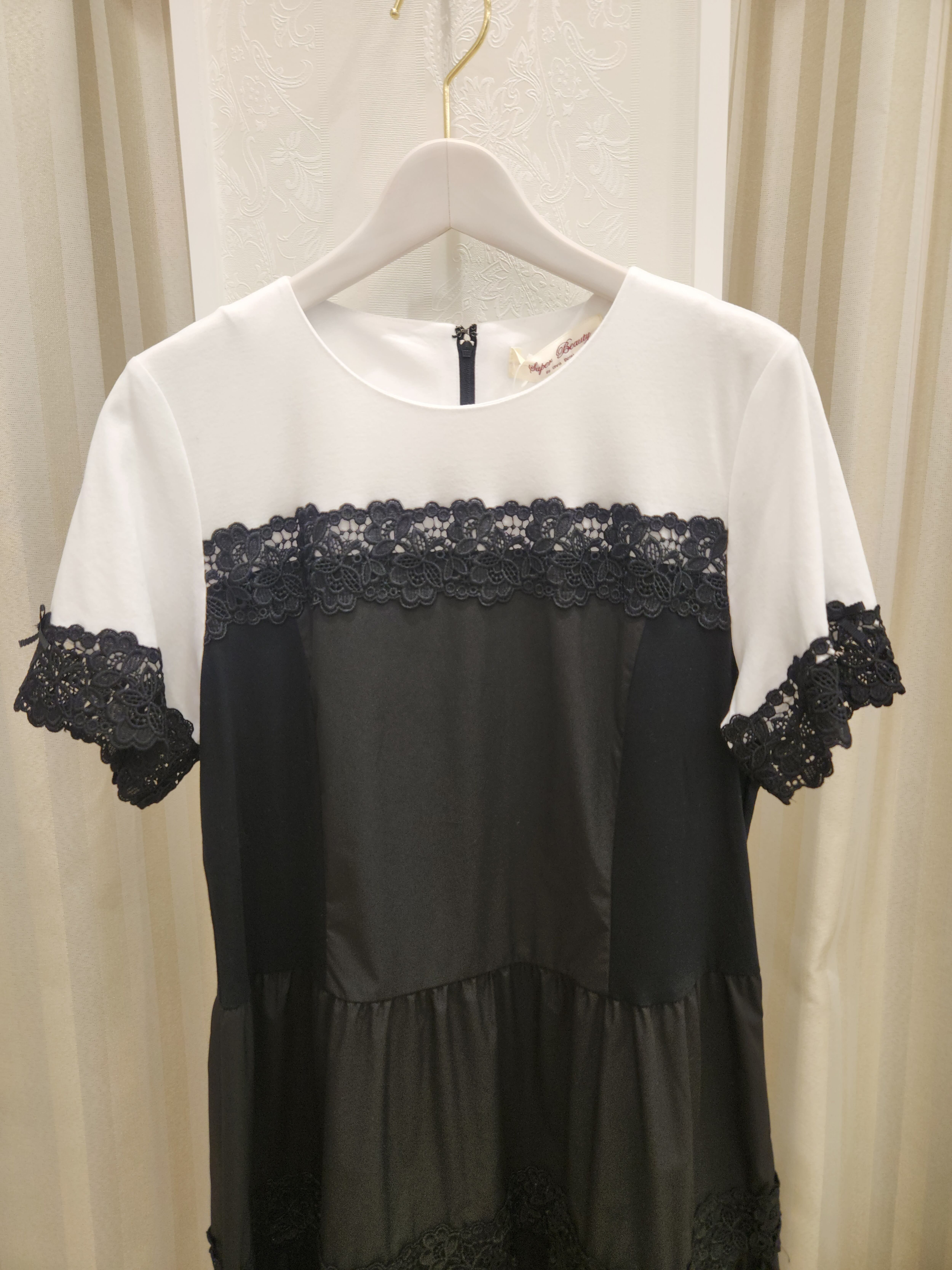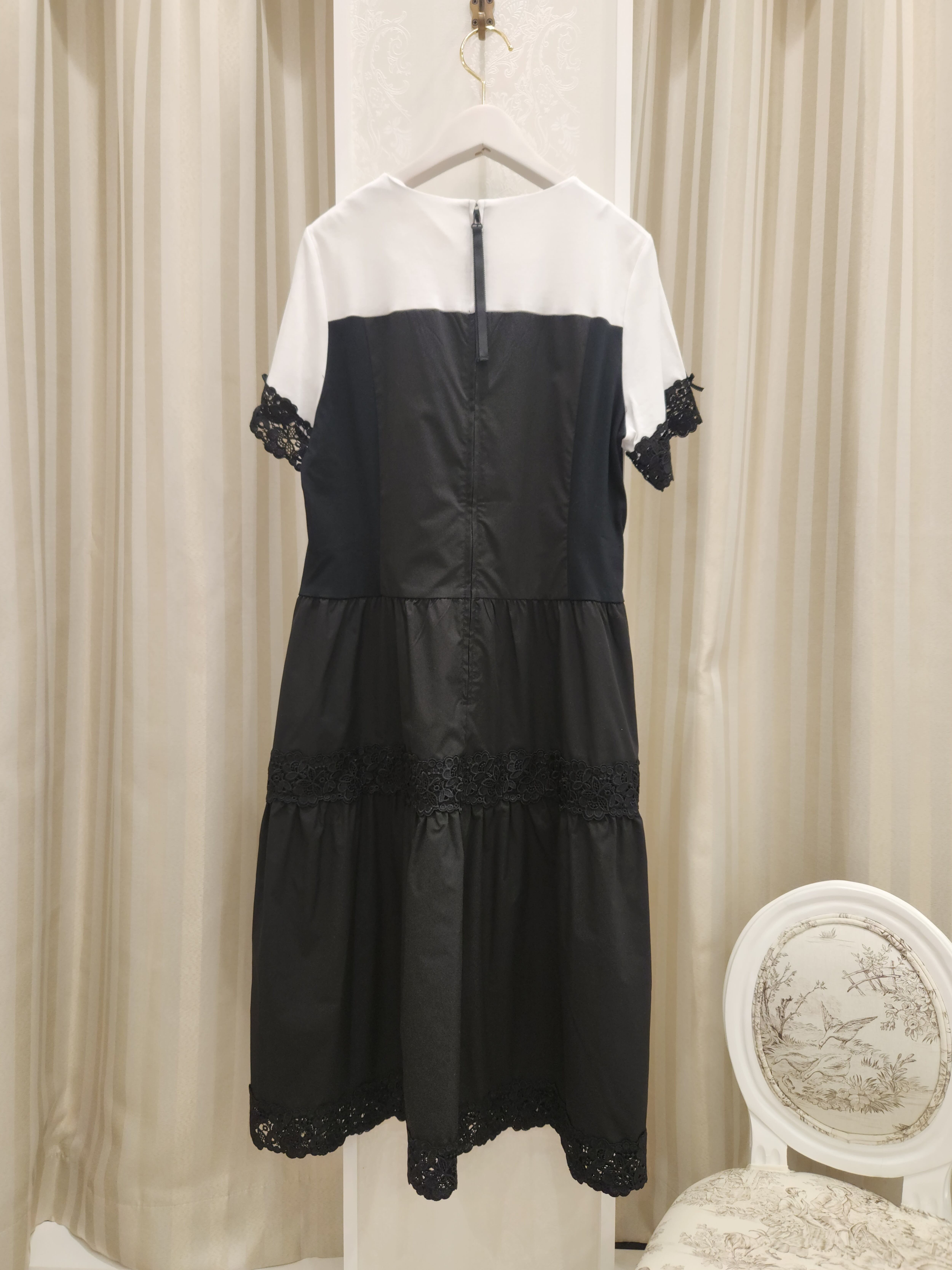 【Super Beauty / スーパービューティー★新作】ホワイト×ブラック胸元切替レース使い半袖ワンピース