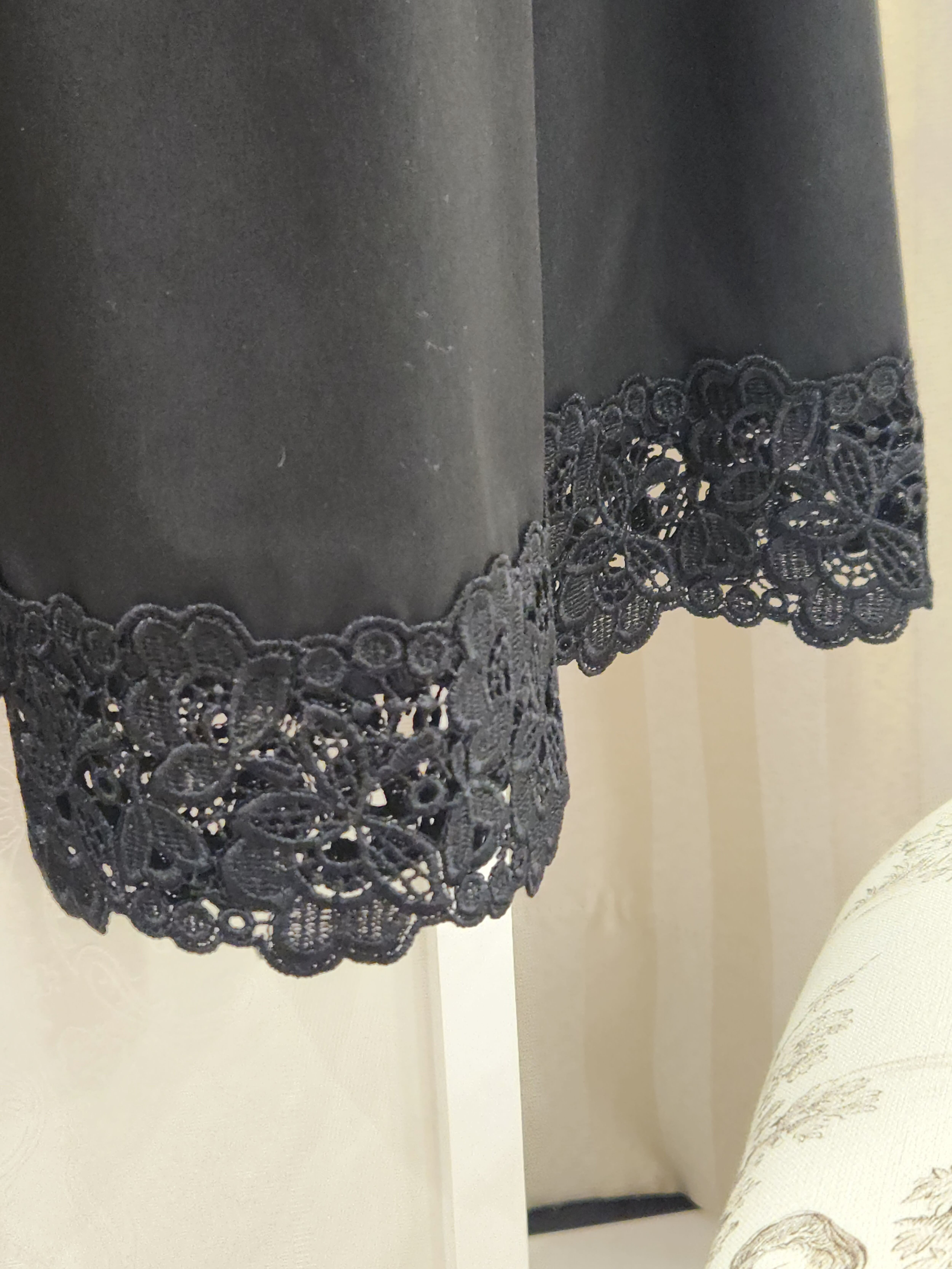 袖口、胸元の切り替え、スカートの切り替えと裾に使用されたレースが豪華で、高級感に溢れています。