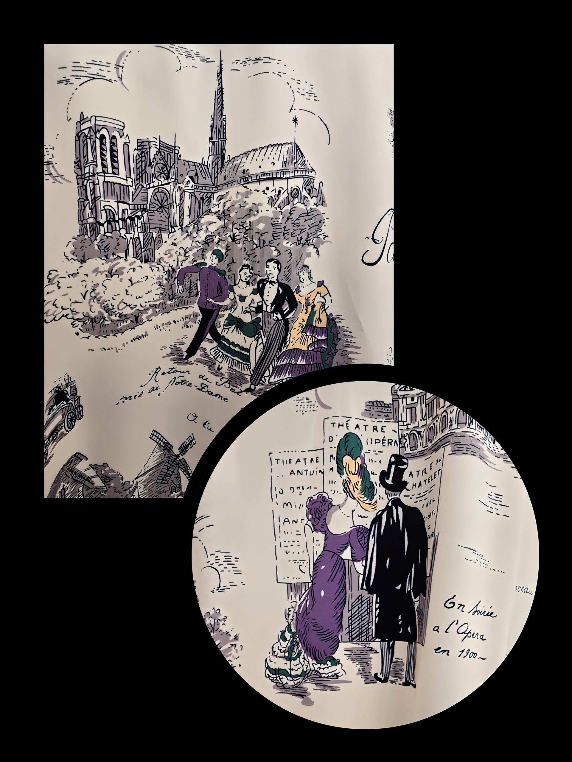パリ柄生地が華やかで、どんなシーンでも自信を持って着こなしていただけるでしょう。