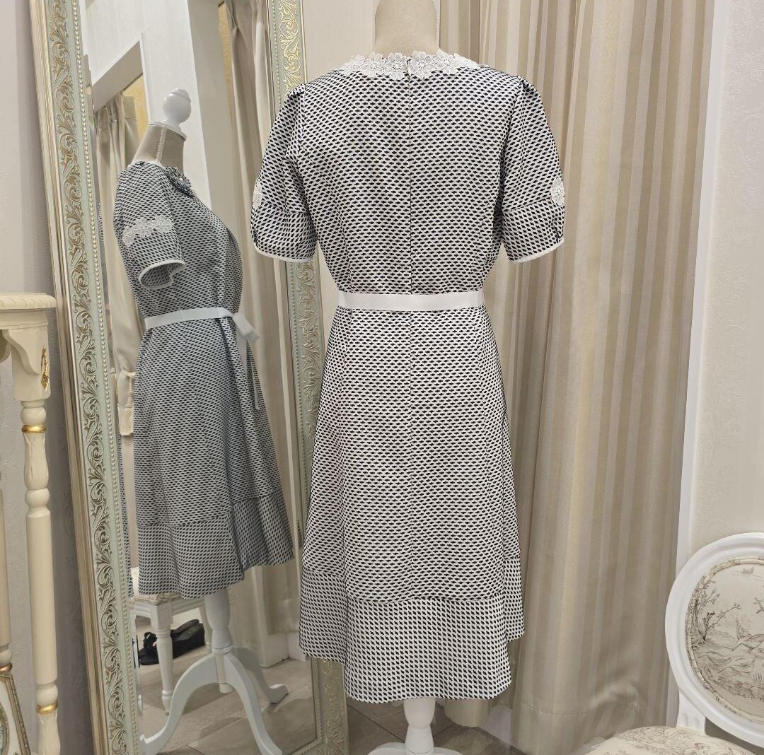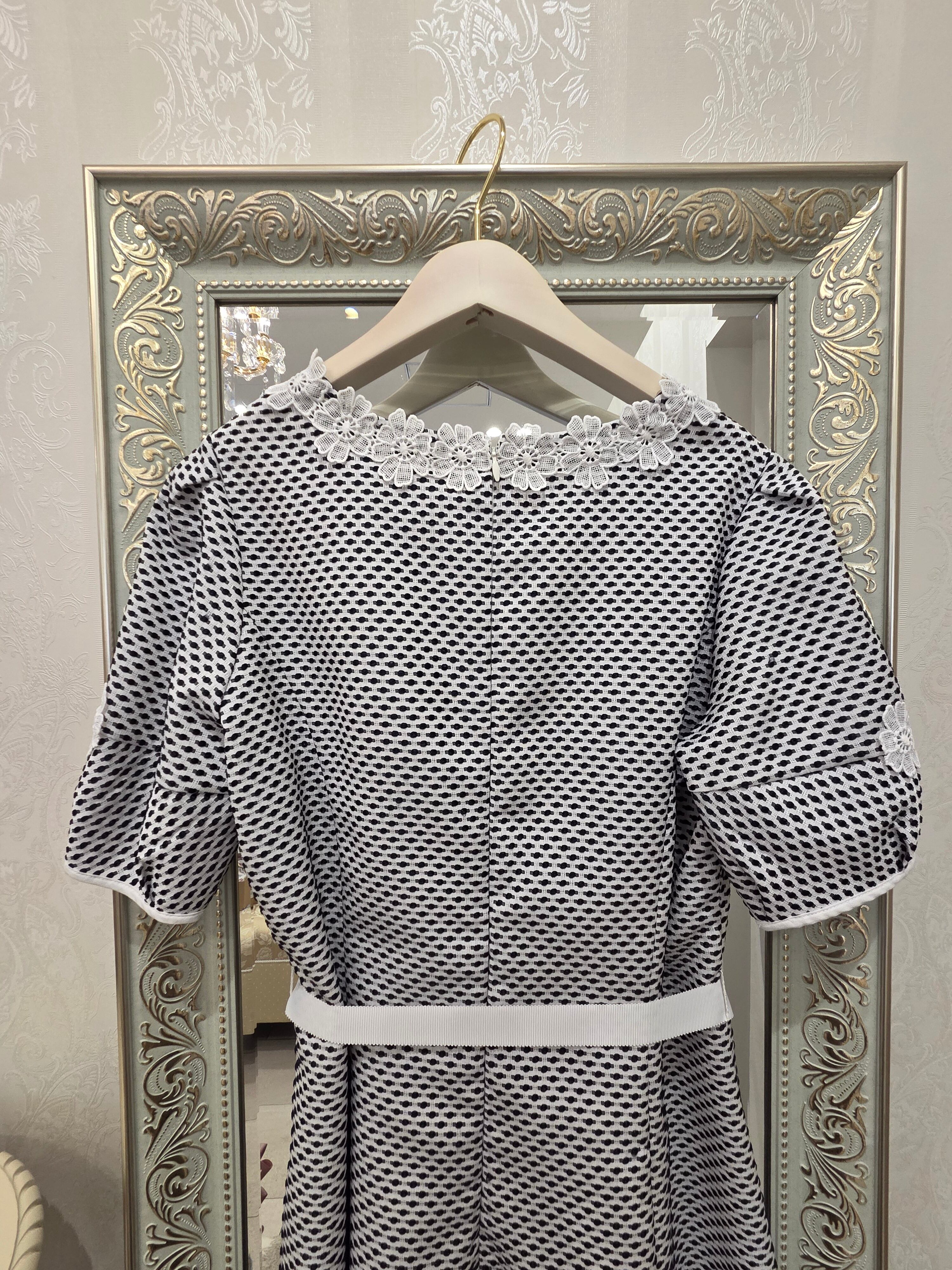 【Super Beauty / スーパービューティー★】半額❗フレアワンピース 白/黒系 コサージュ付き サイズ40