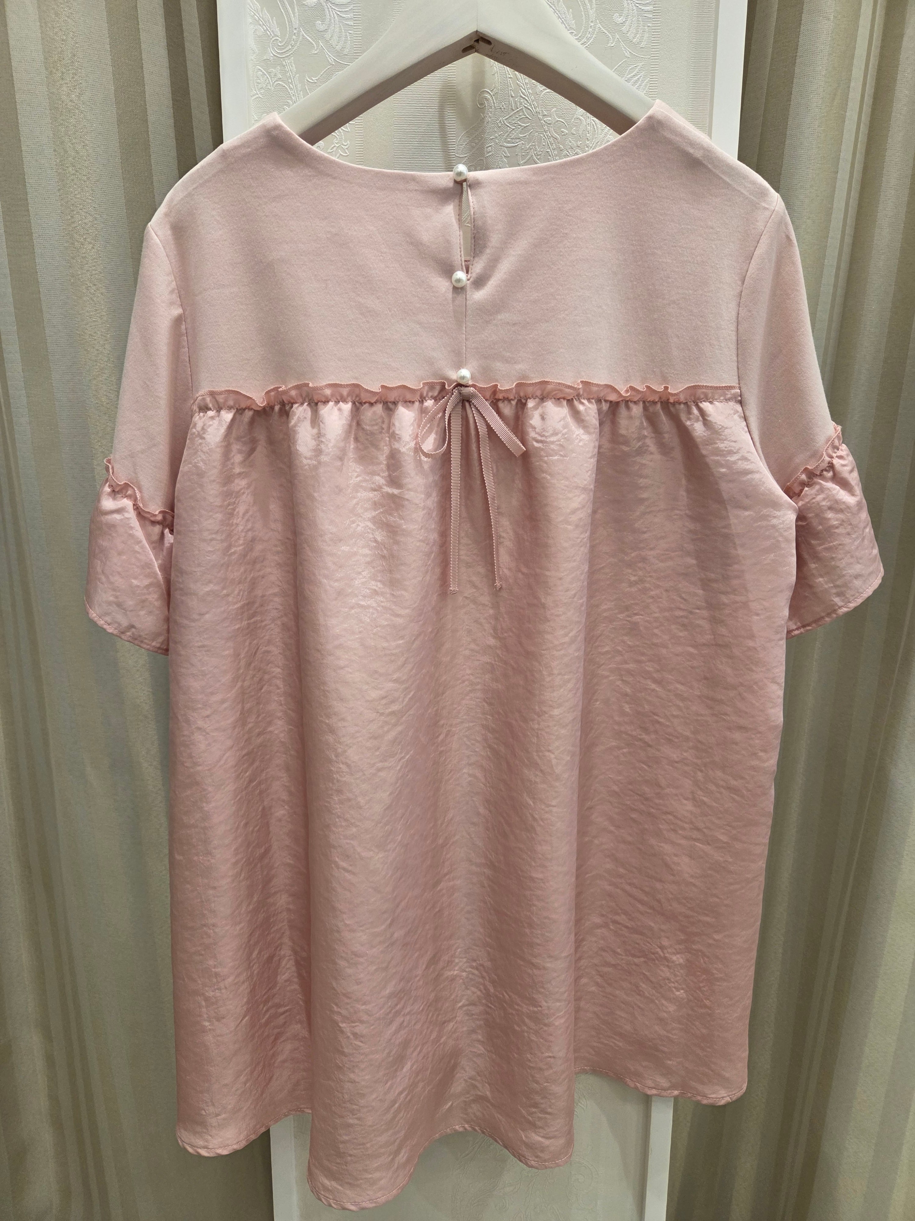 Tシャツ生地とサラッとした生地がドッキングされ、着やすさと女性らしいシルエットが完成された、大人可愛いチュニックです。