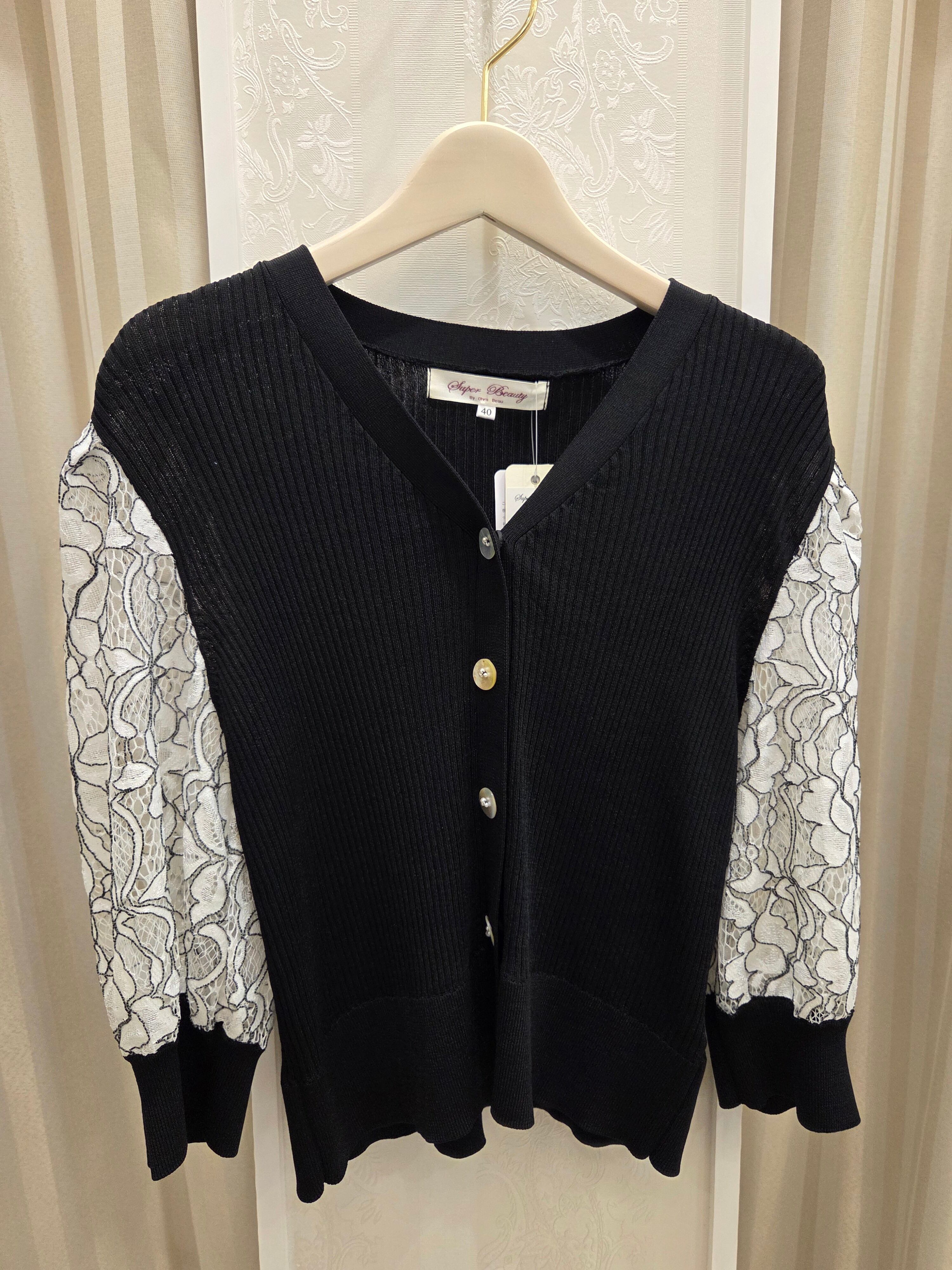 【Super Beauty / スーパービューティー★】半額!七分袖レースカーディガン ブラック サイズ40