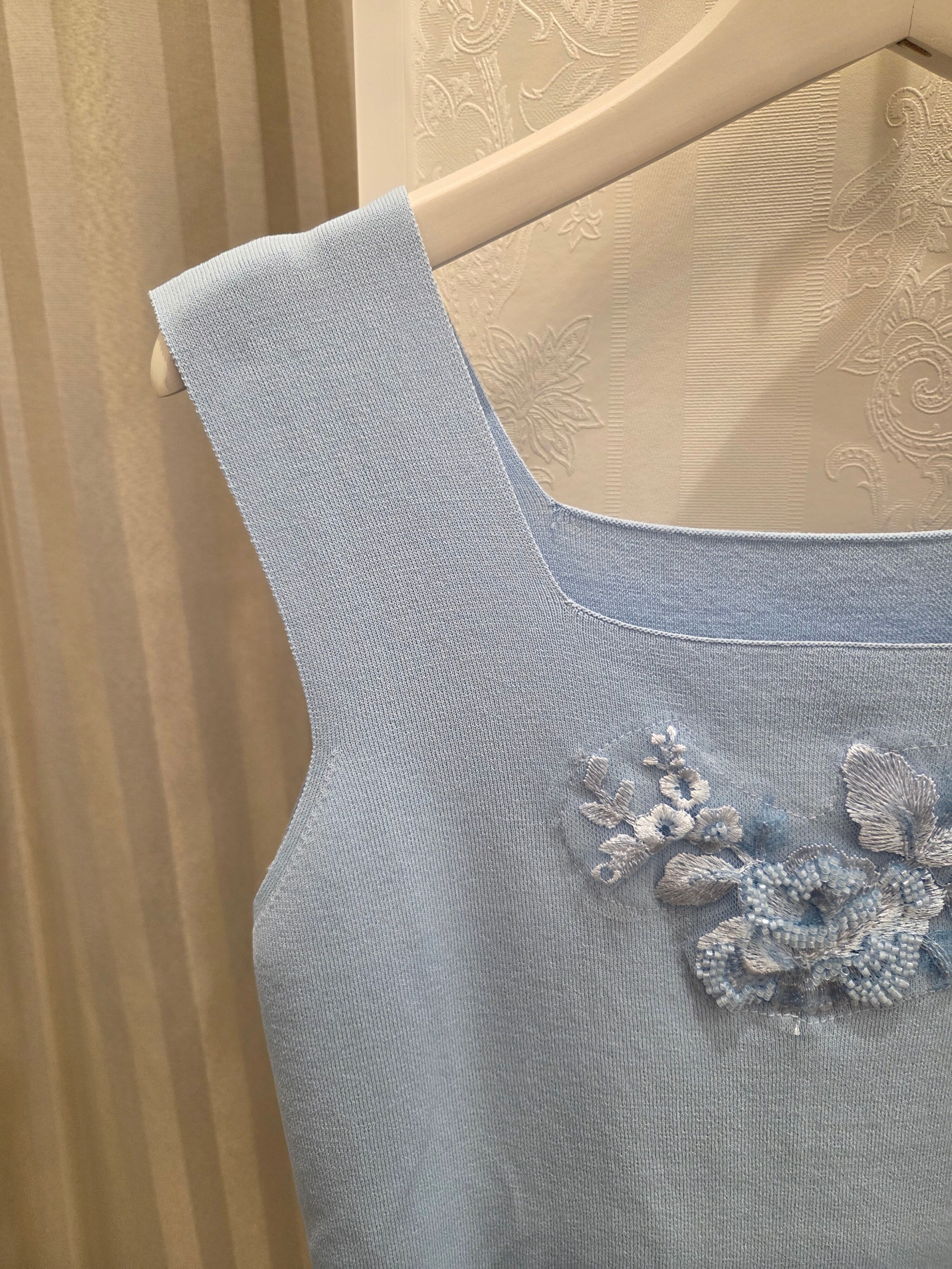 【Super Beauty / スーパービューティー★】半額!ニットタンクトップ インナー 水色 サイズ40