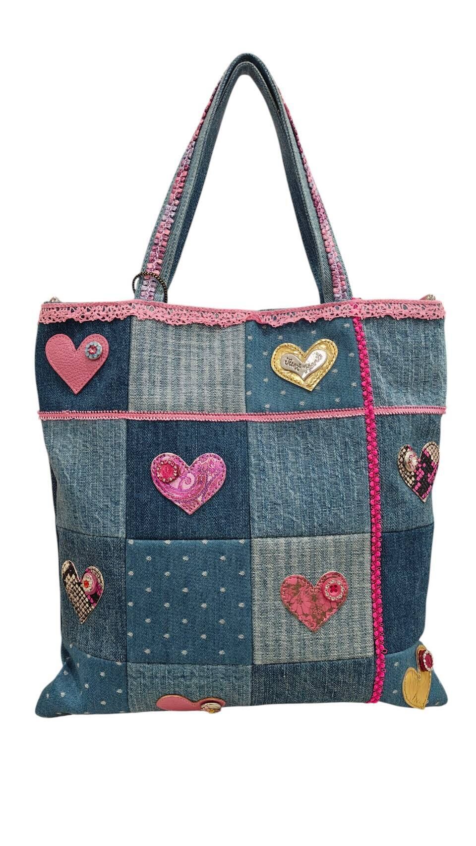【Think Bee!⭐トートバッグ&ショルダー付き】デニム素材 ハート ビジュー レディースバッグ