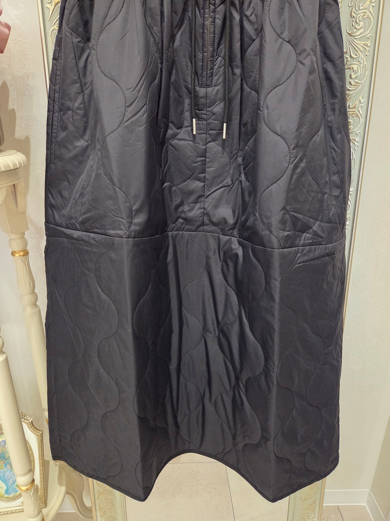 裏地はついてないタイプで、薄手のキルティングキャミソールワンピースになります。