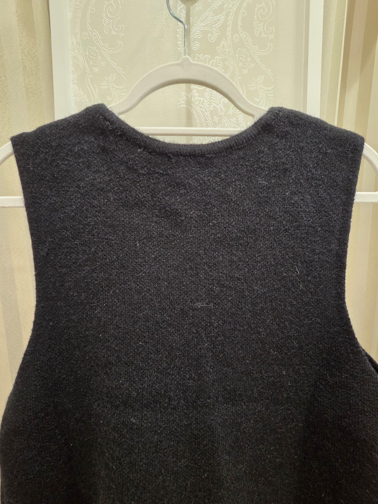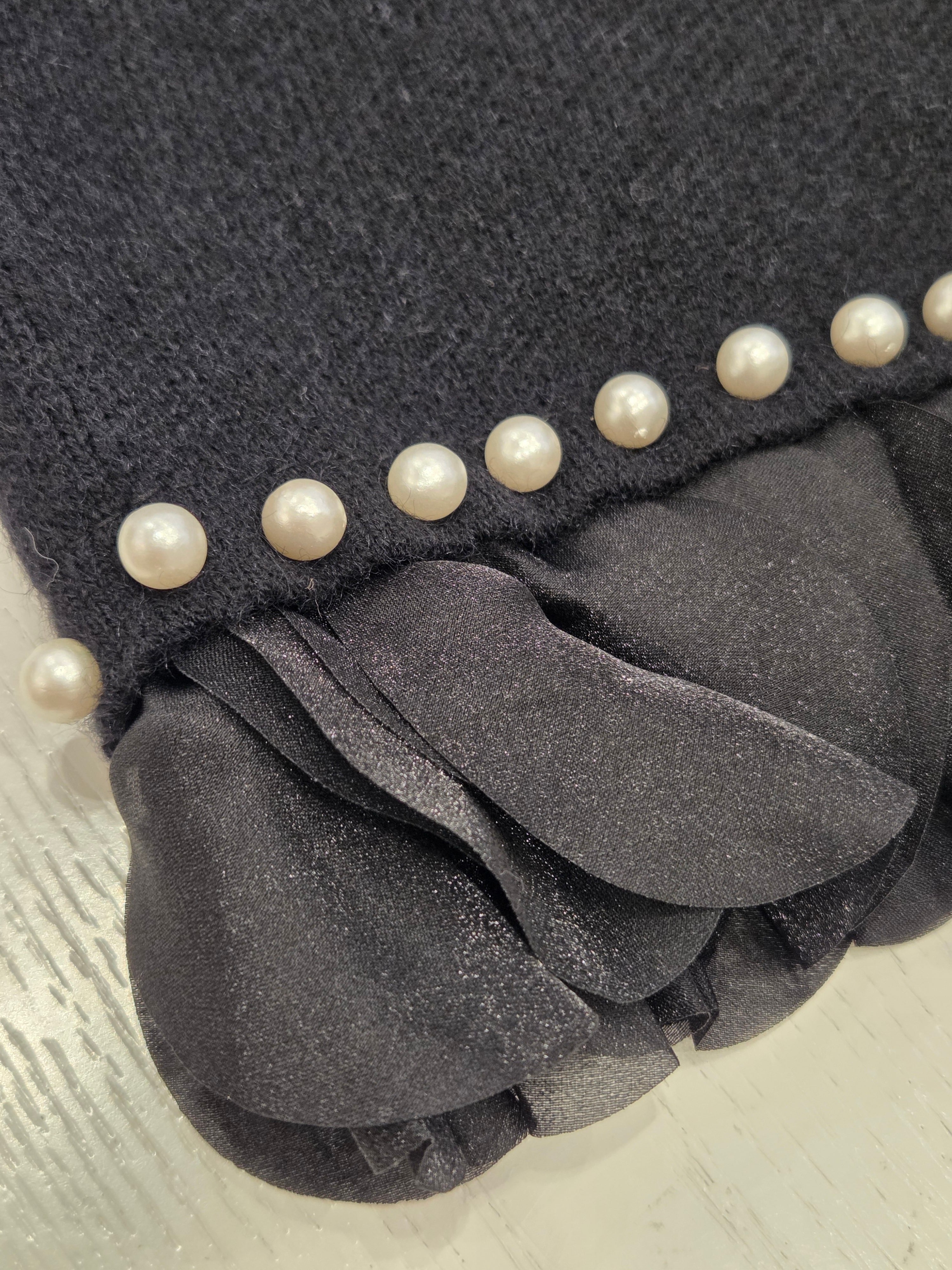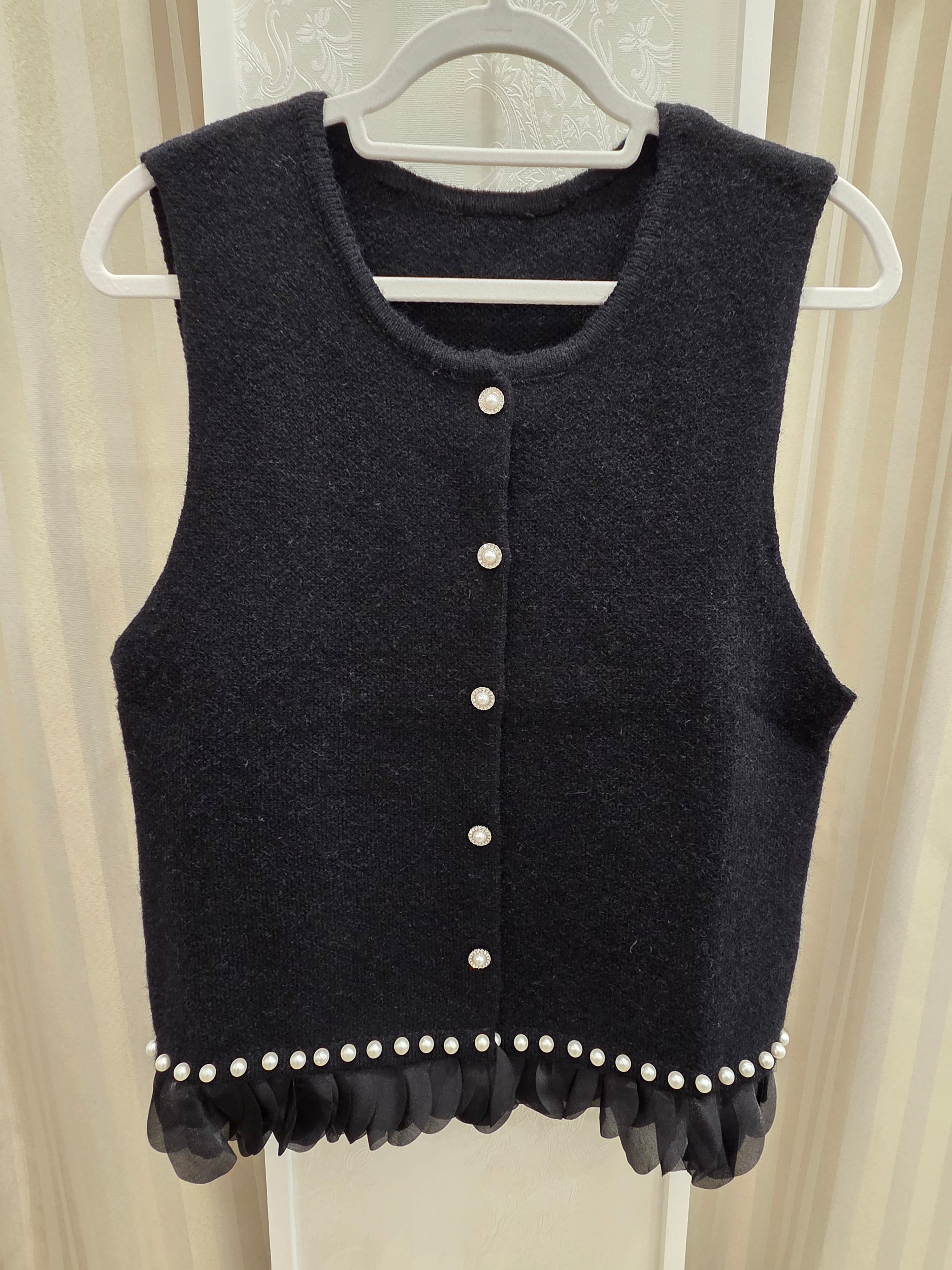 裾フリル パール キラキラボタン ニットベスト ブラック