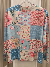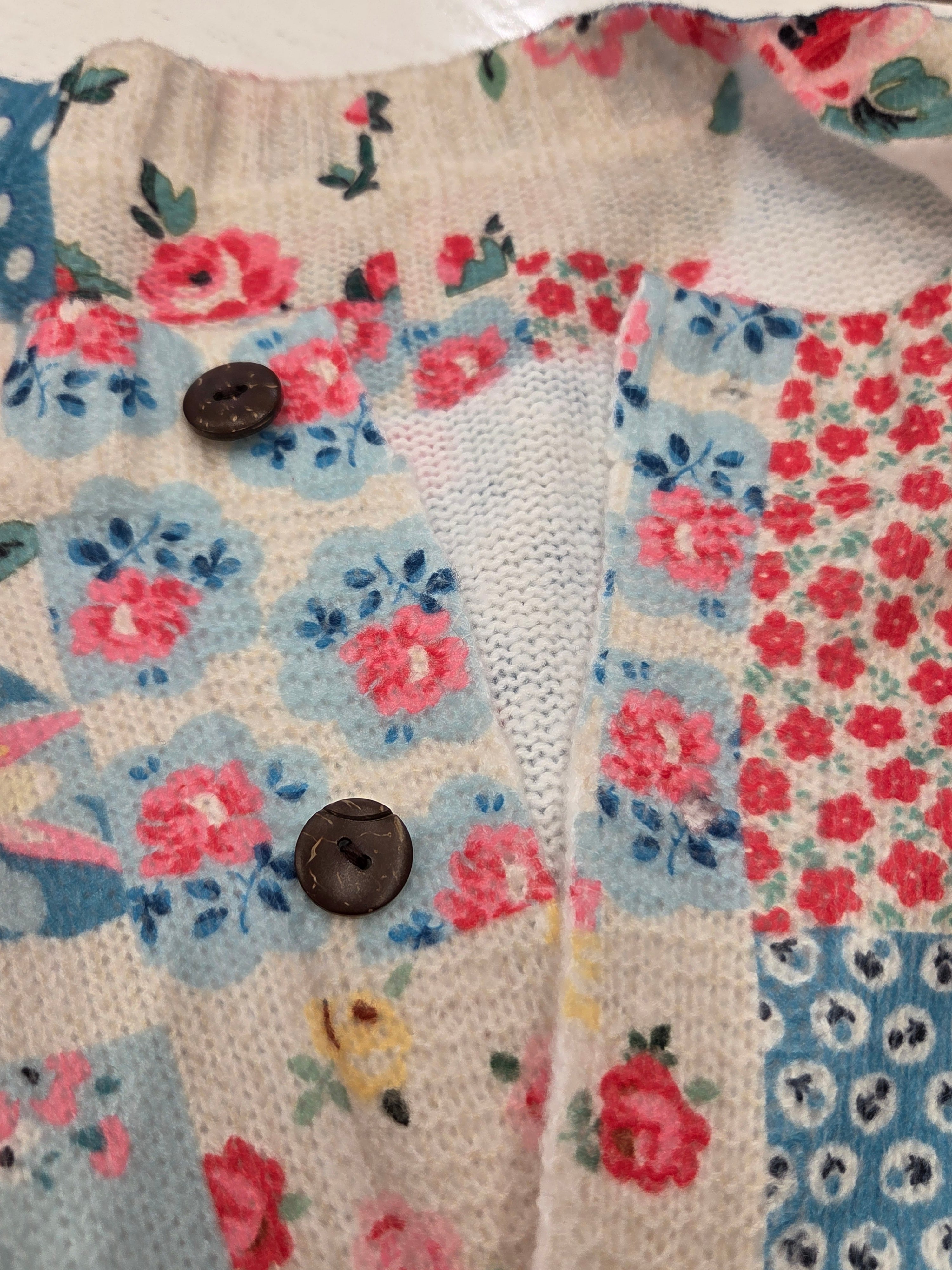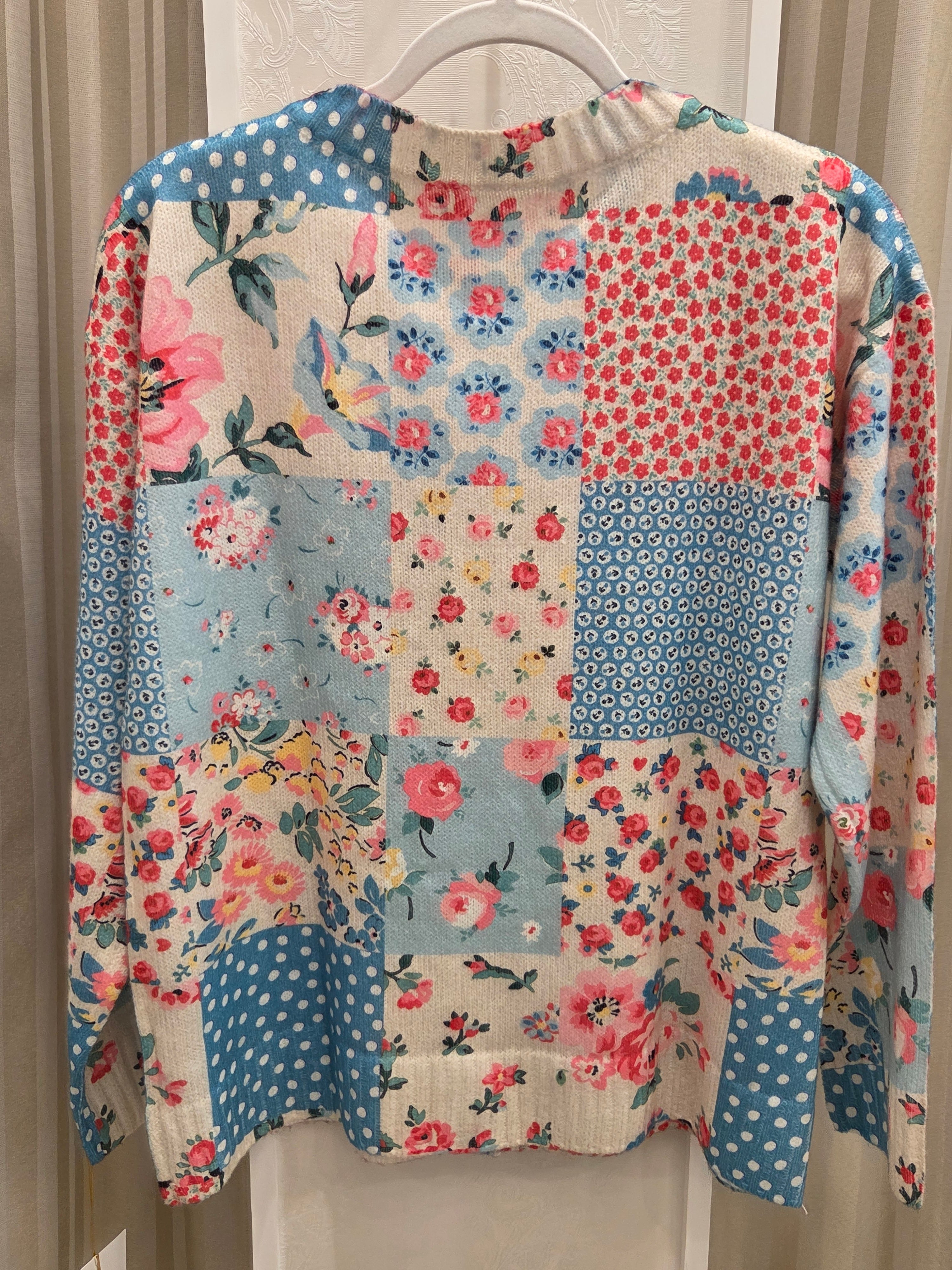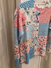 小花・水玉柄の薄手のニットカーディガンになります。