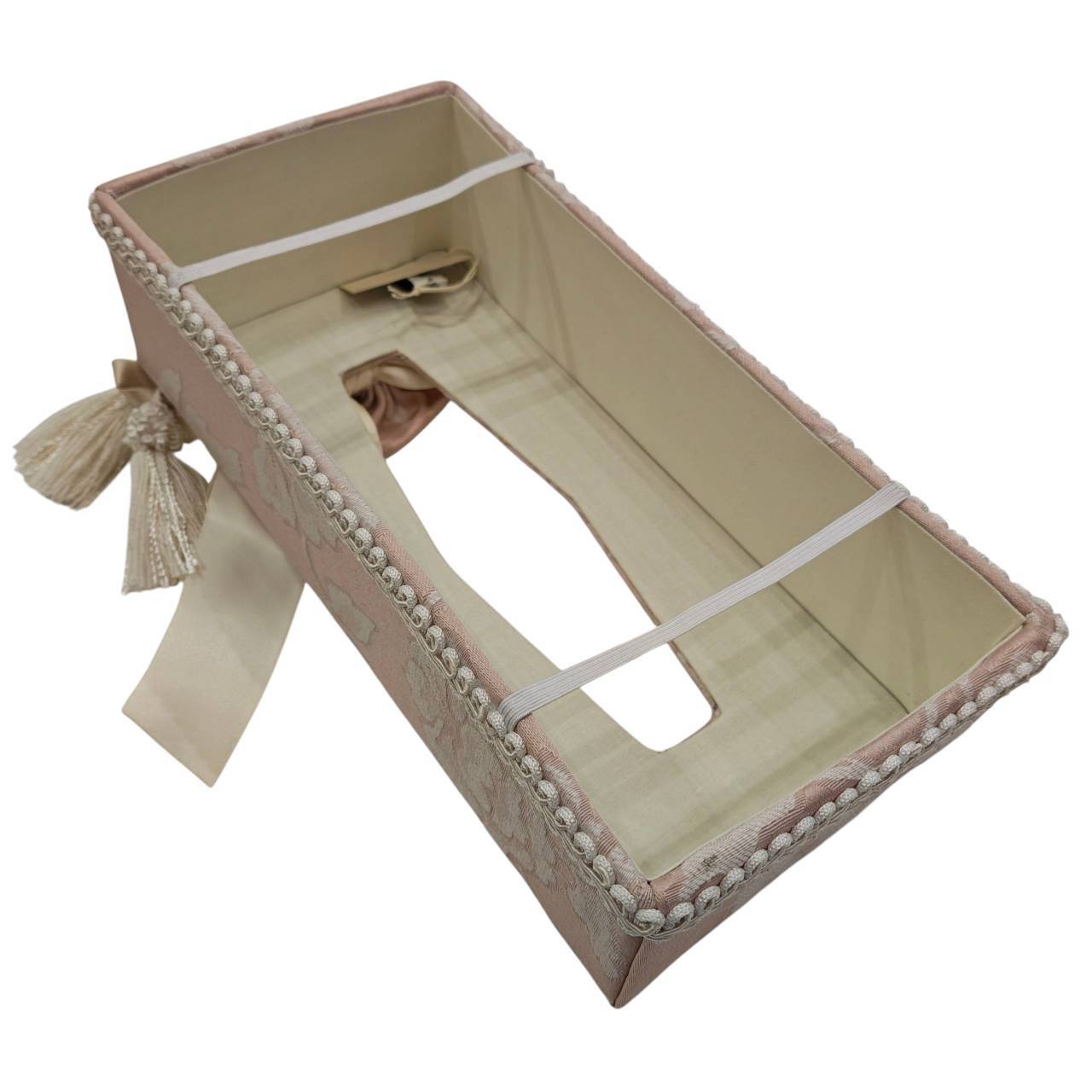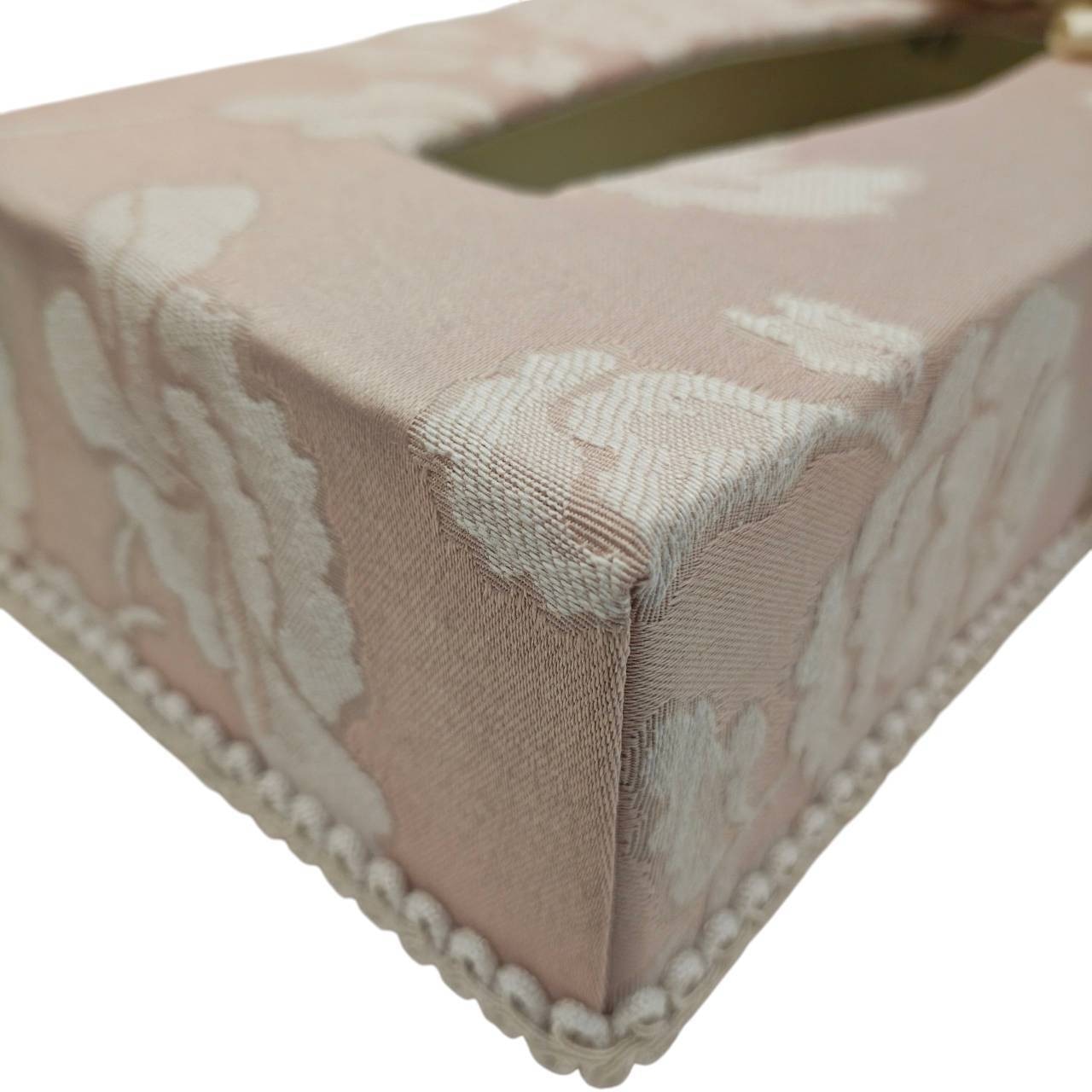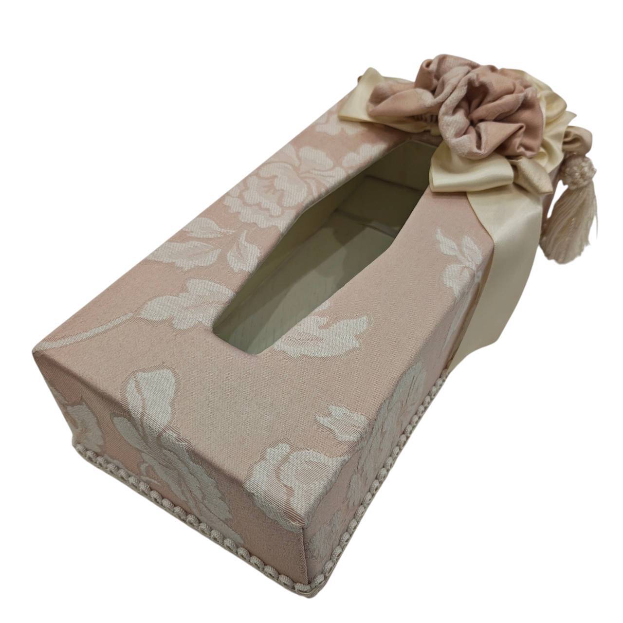 【Jennifer Taylor】リボン付きティッシュケース⭐リボン フリンジ 花 くすみピンク