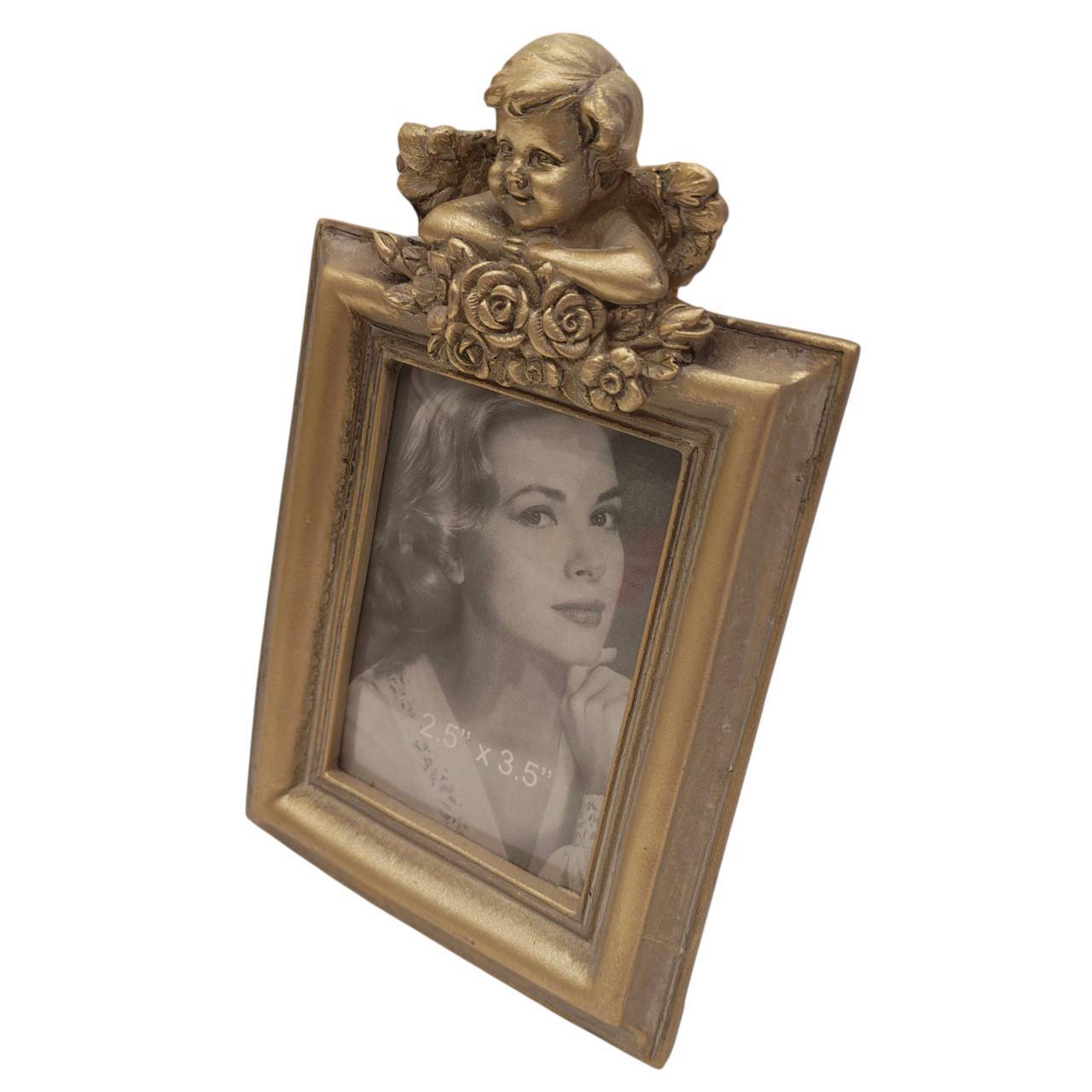 ゴールド系の輝きを放つこの写真立ては、アンティーク調のエンジェルデザインが施されており、どんなインテリアにも優雅にフィットします。リビングや寝室に飾るだけでなく、特別な瞬間を映し出す場所としても最適です。
