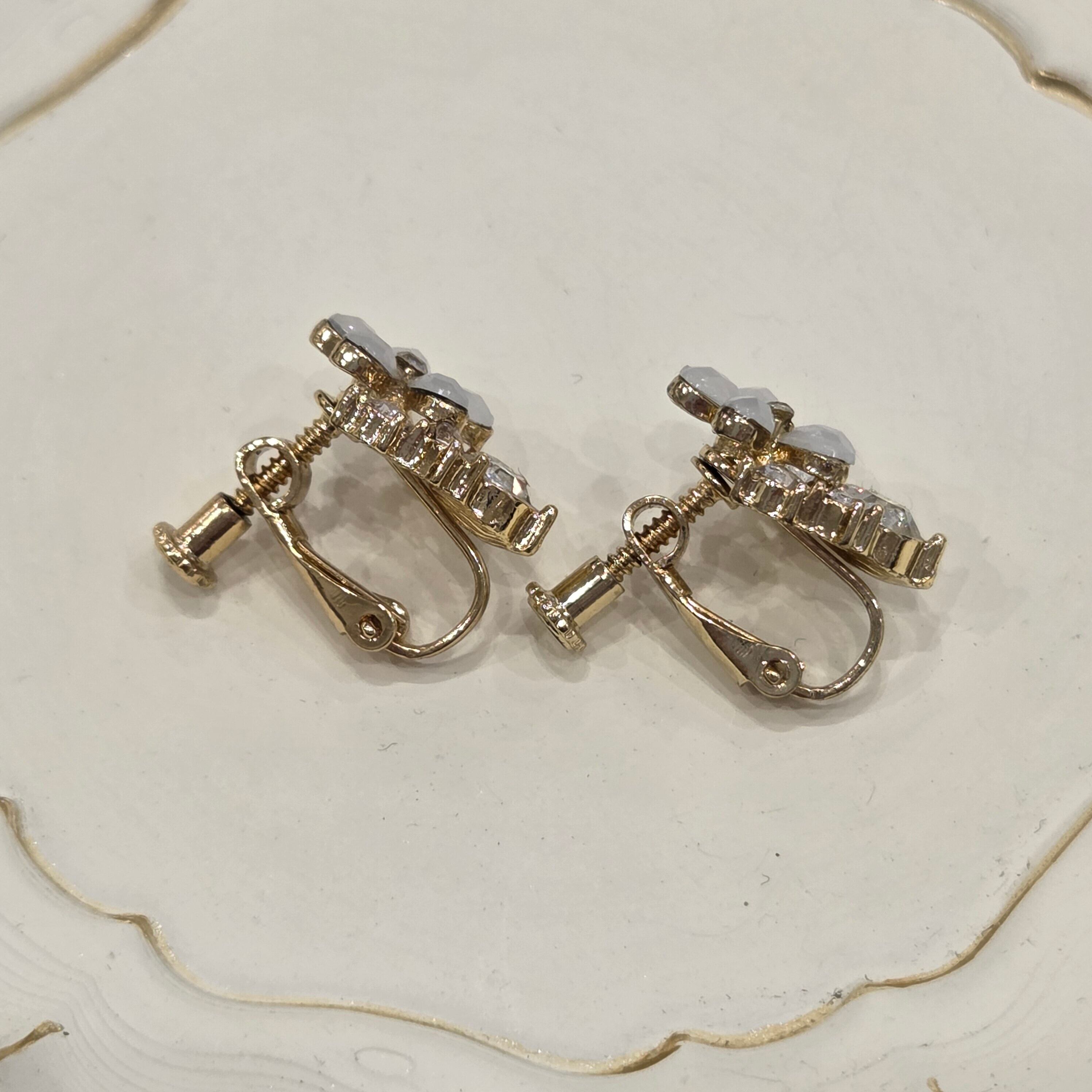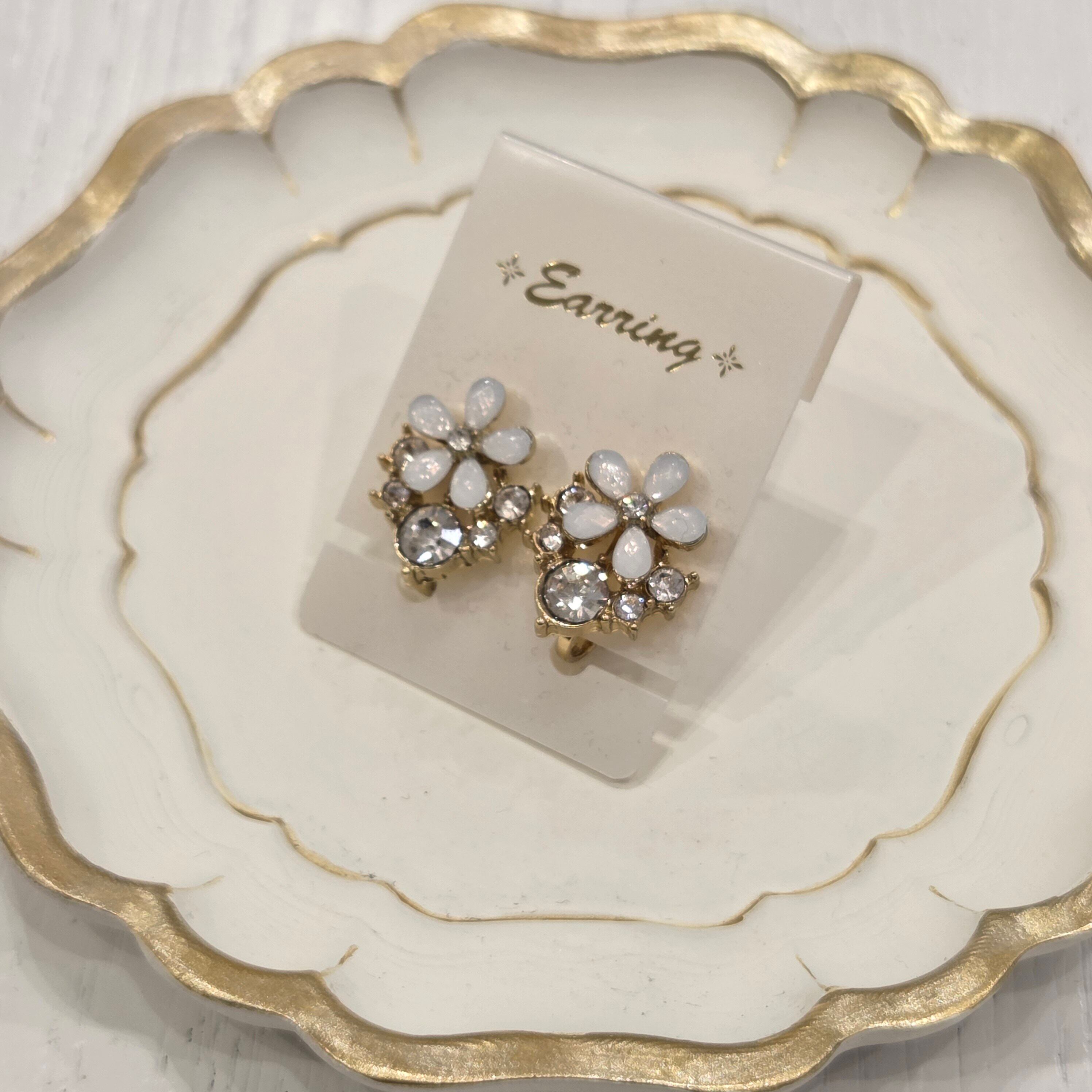 【キラキラビジュー フラワー イヤリング】☆花 ホワイト 大人可愛い