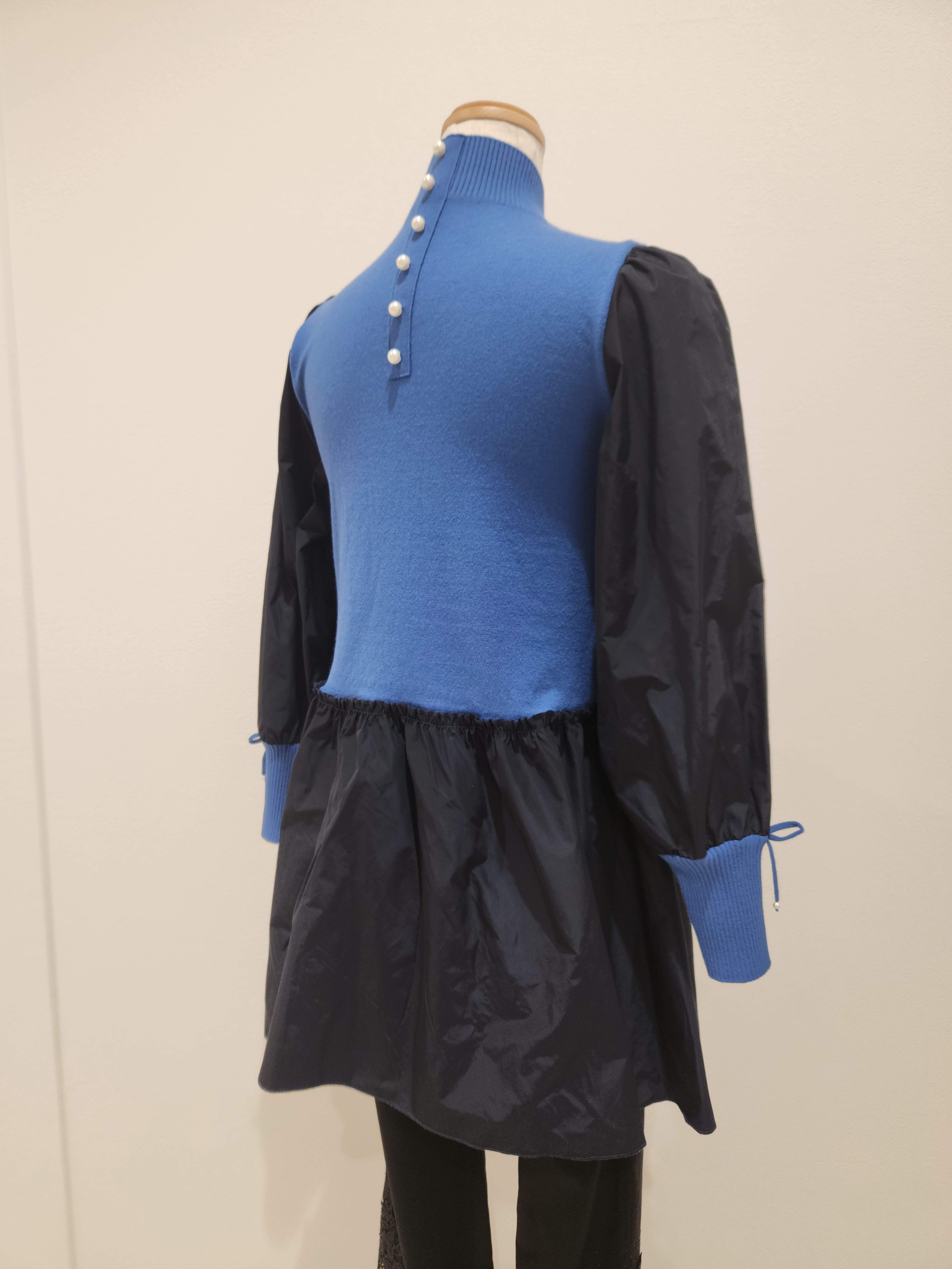 袖の肩口は少しギャザーを取り、袖口にかけふっくらさせ優雅さを演出