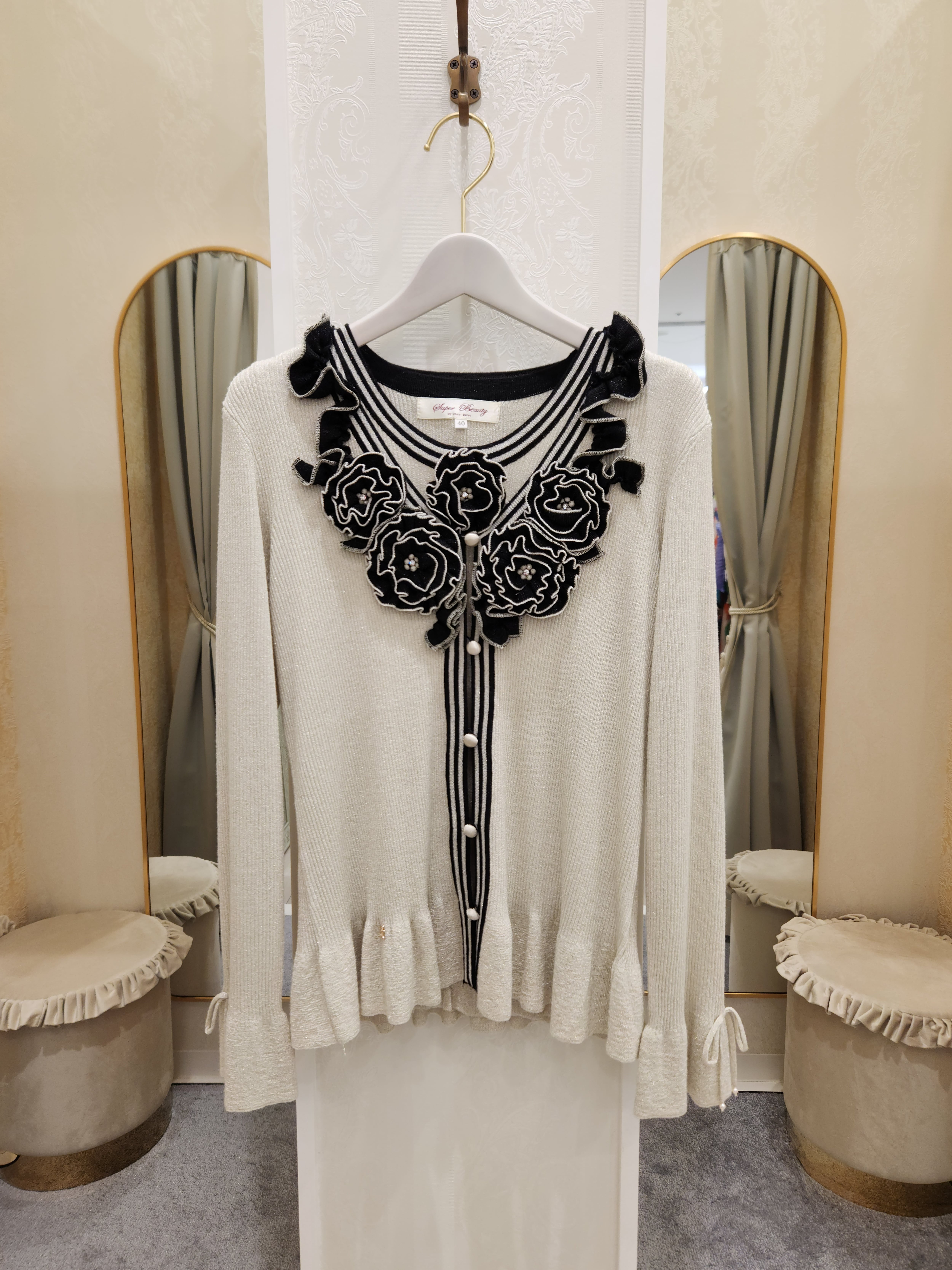 【Super Beauty★30%off】ビジュー使いのコサージュが華やかなラメ入りニットアンサンブル