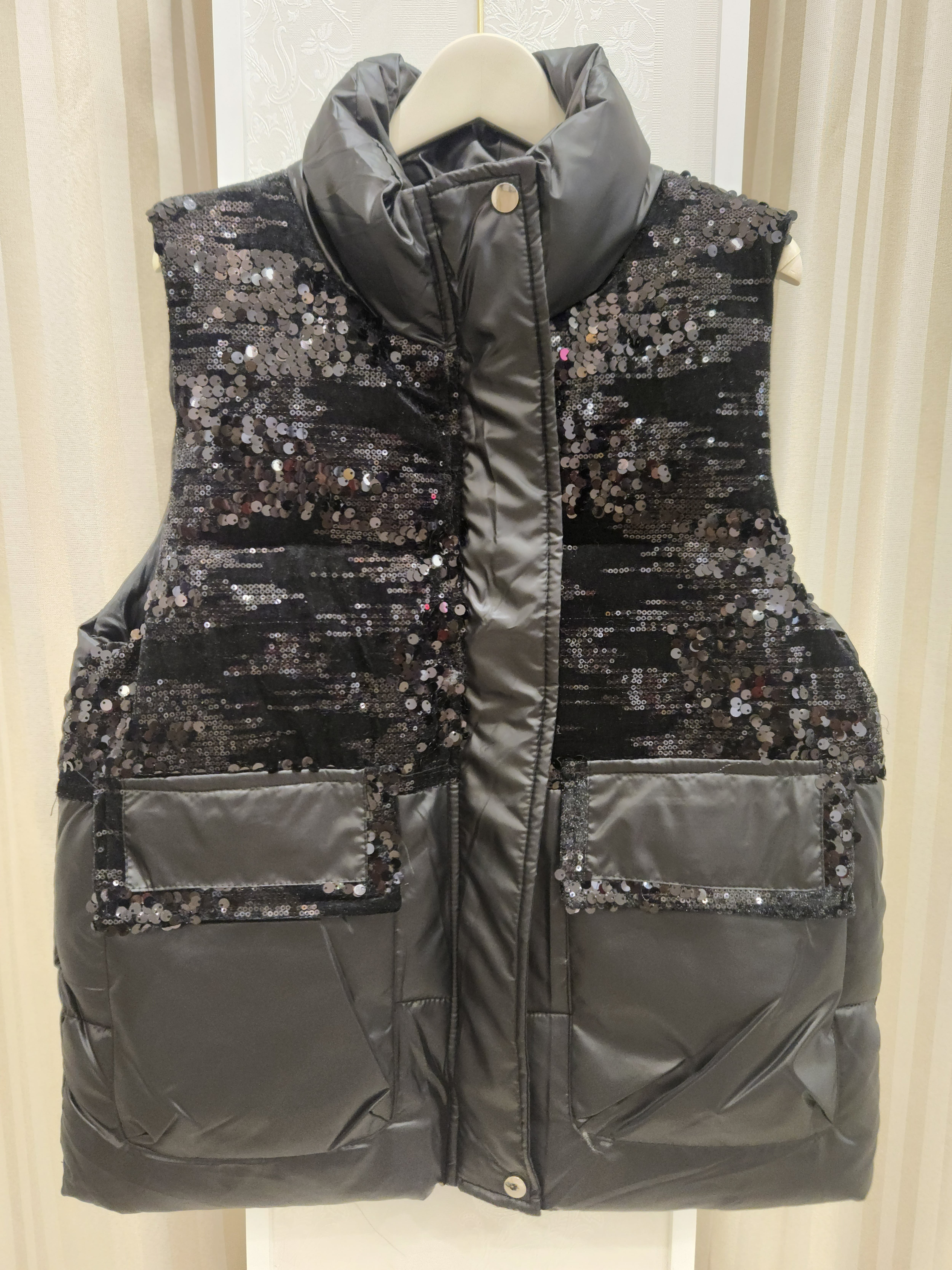 〈半額★SALE〉スパンコールの輝きがゴージャスな中綿ベスト