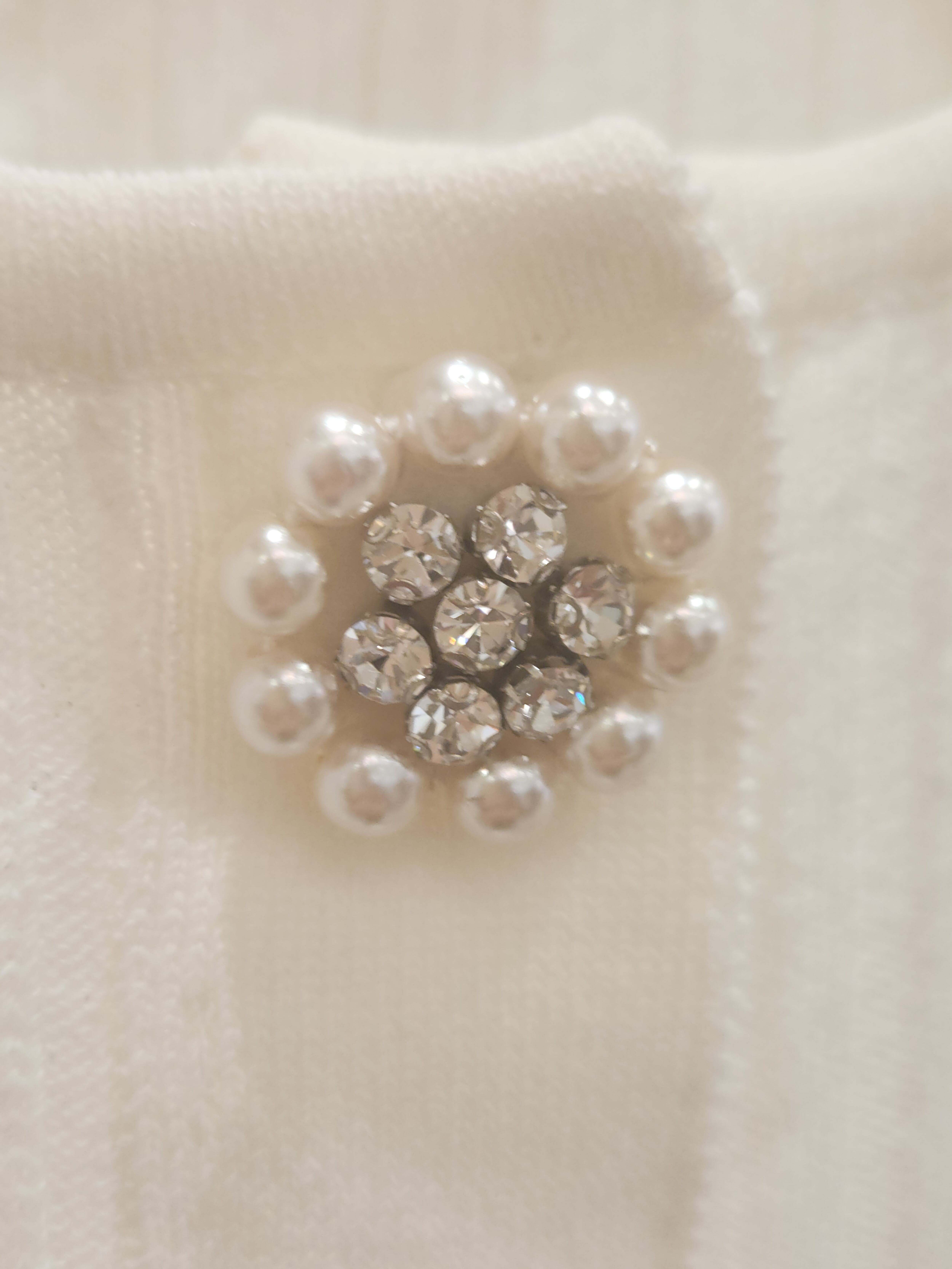 一番上のボタンは贅沢にパールとビジューで装飾されています。