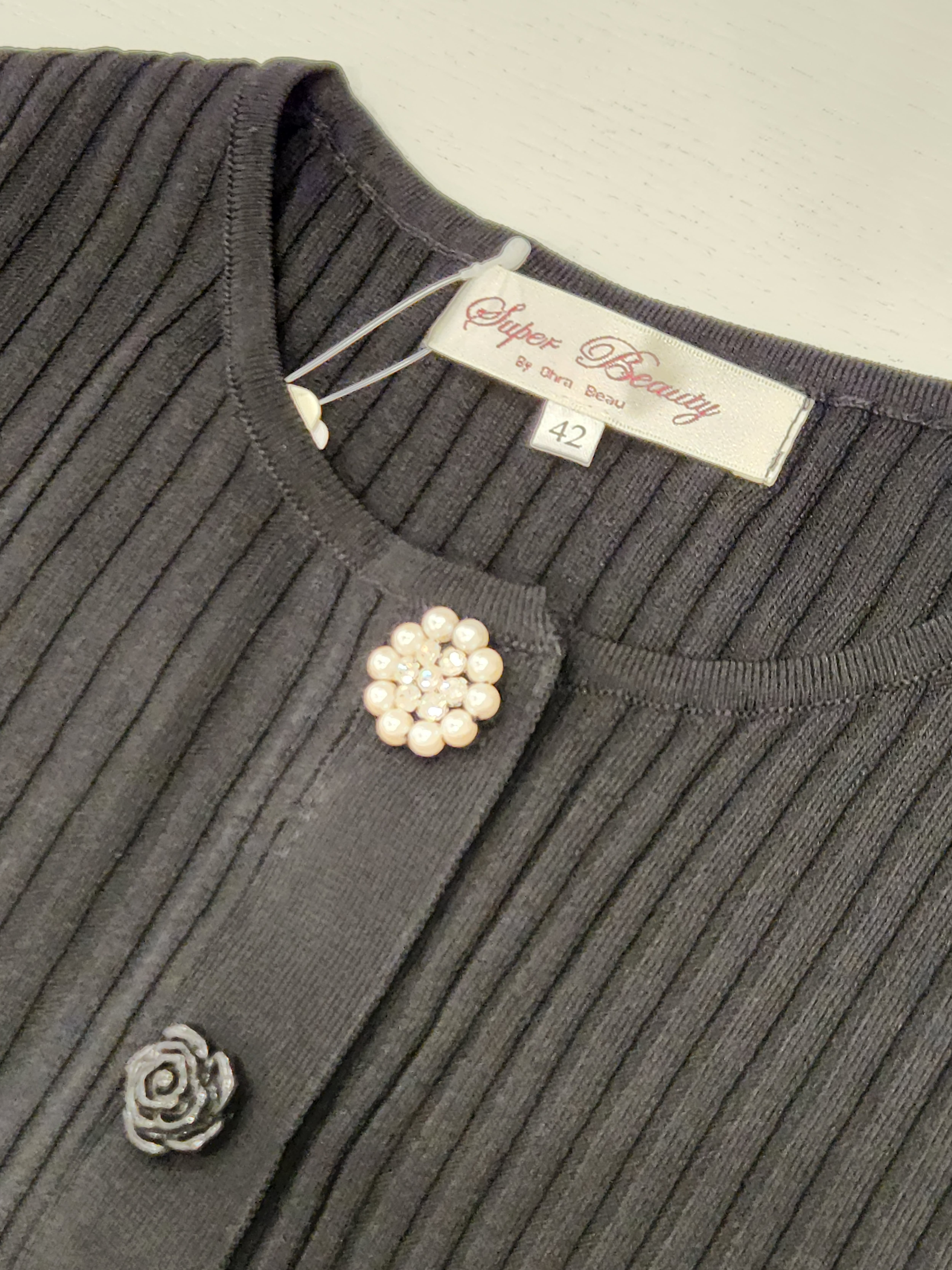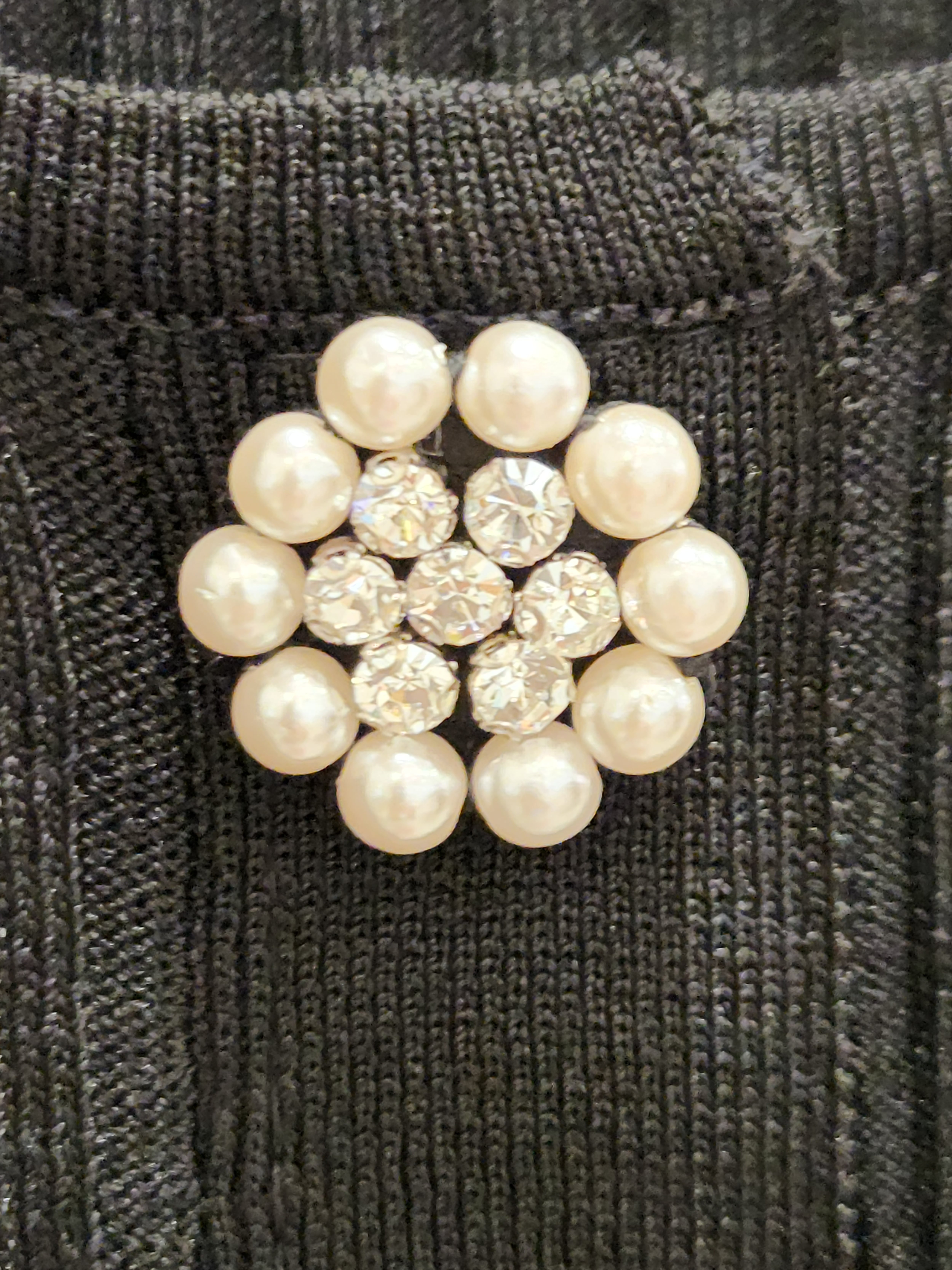 一番上のボタンは贅沢にパールとビジューで装飾されています。