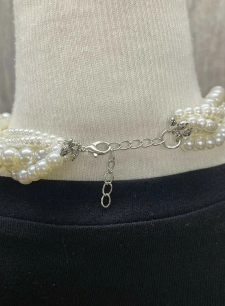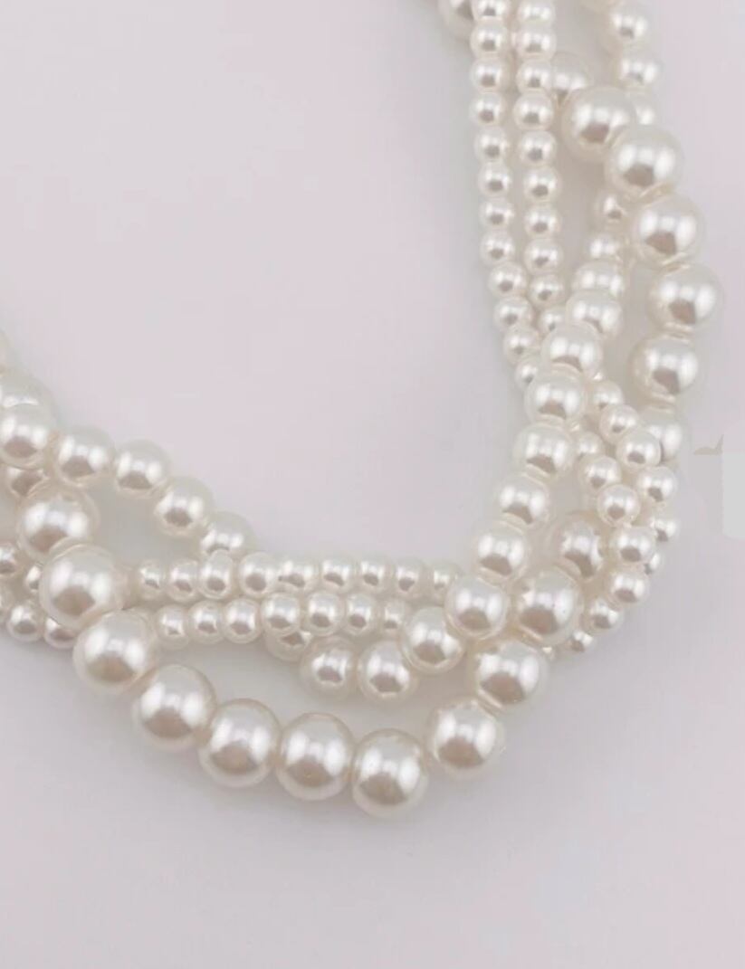 お顔映りを明るく華やかにしてくれる4連パールネックレス