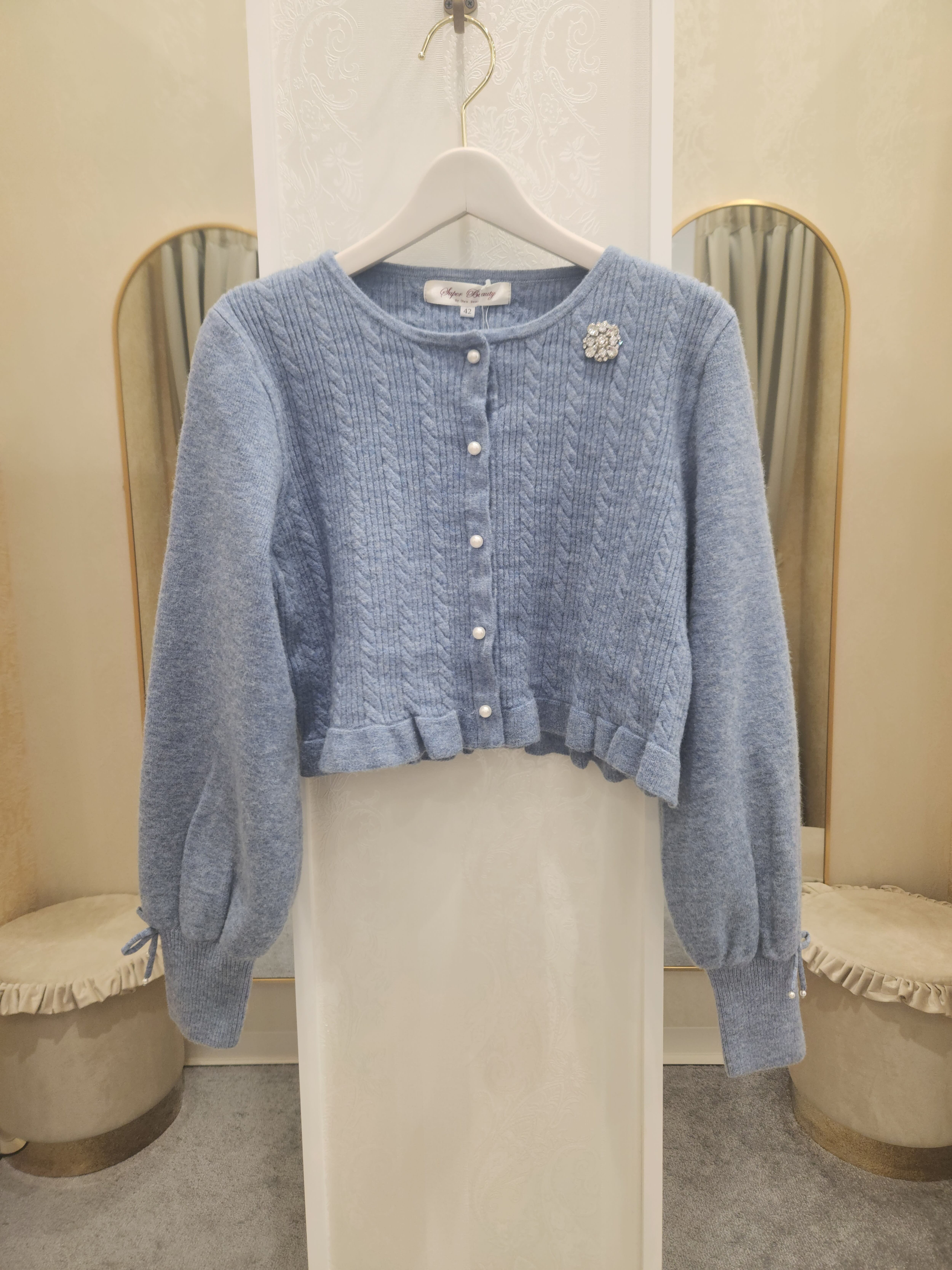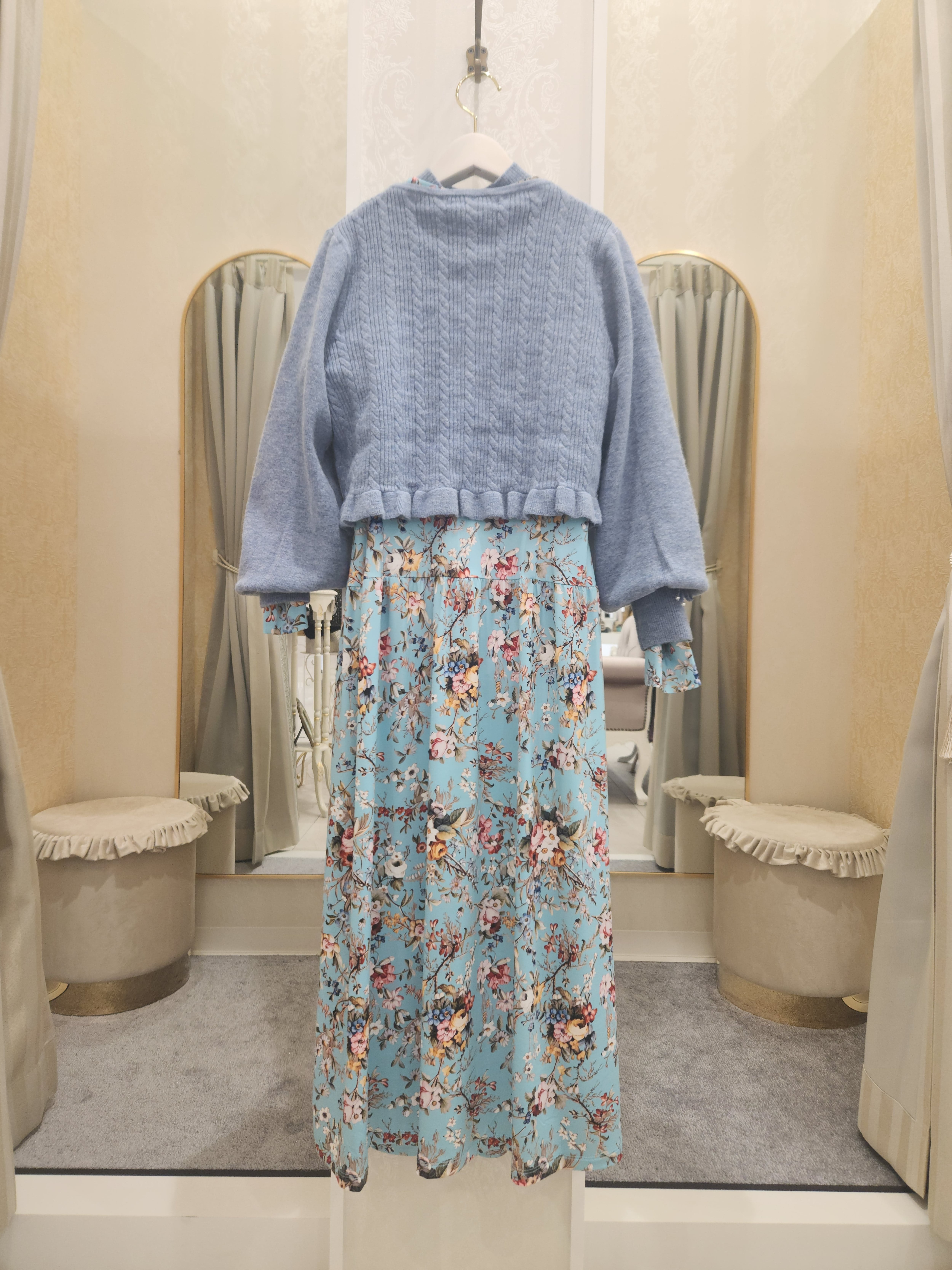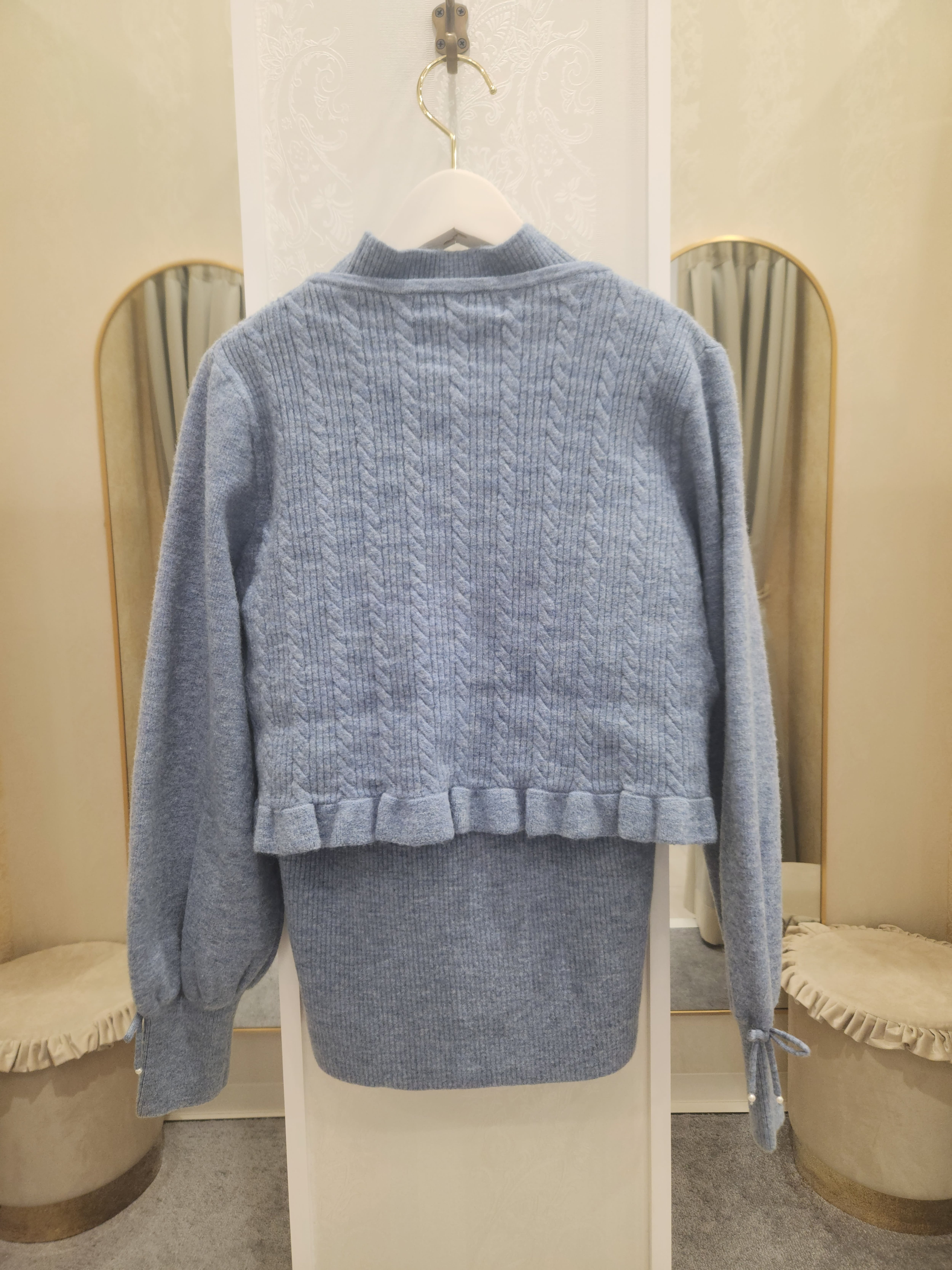 【Super Beauty★半額セール】落ち着いたブルーのボレロとノースリーブのタートルネックのニットアンサンブル