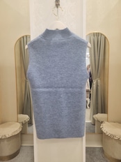 落ち着いたブルーのボレロとノースリーブのタートルネックのニットアンサンブル