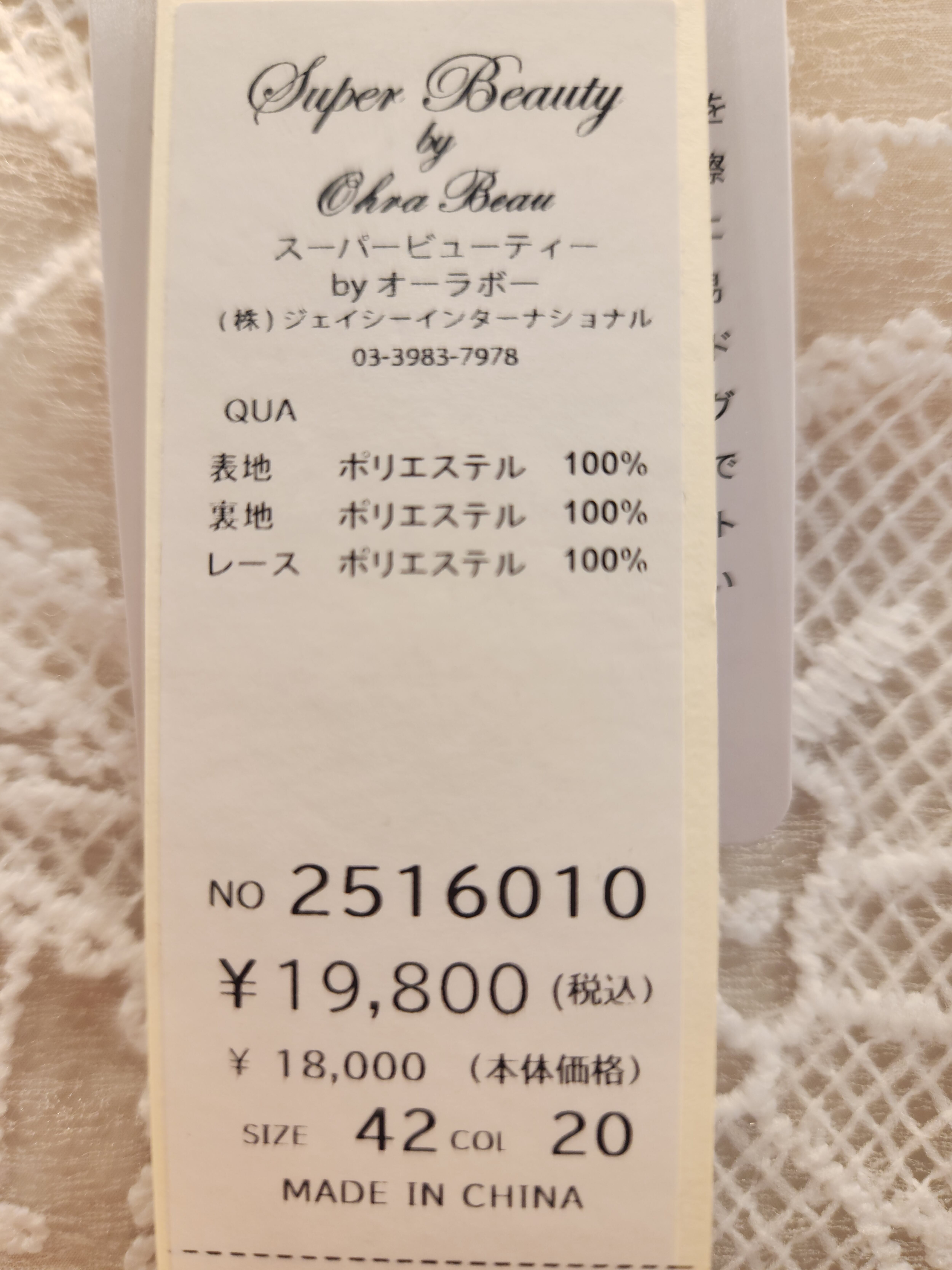 【Super Beauty / スーパービューティー★新作】胸元のブローチ風ビジュー装飾とウエストリボンが「大人可愛い」を演出する大きなお花模様の豪華レースノースリーブワンピース(42号・ベージュ)